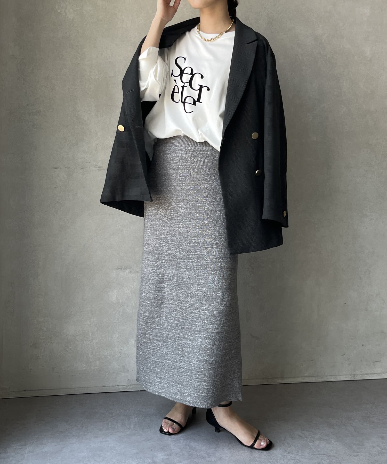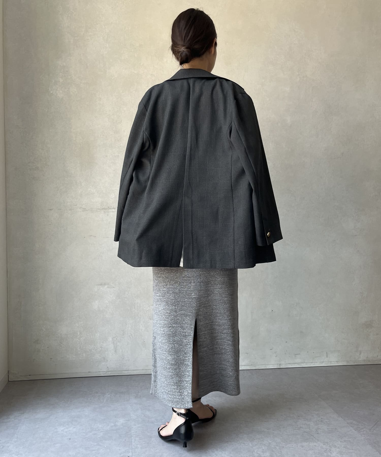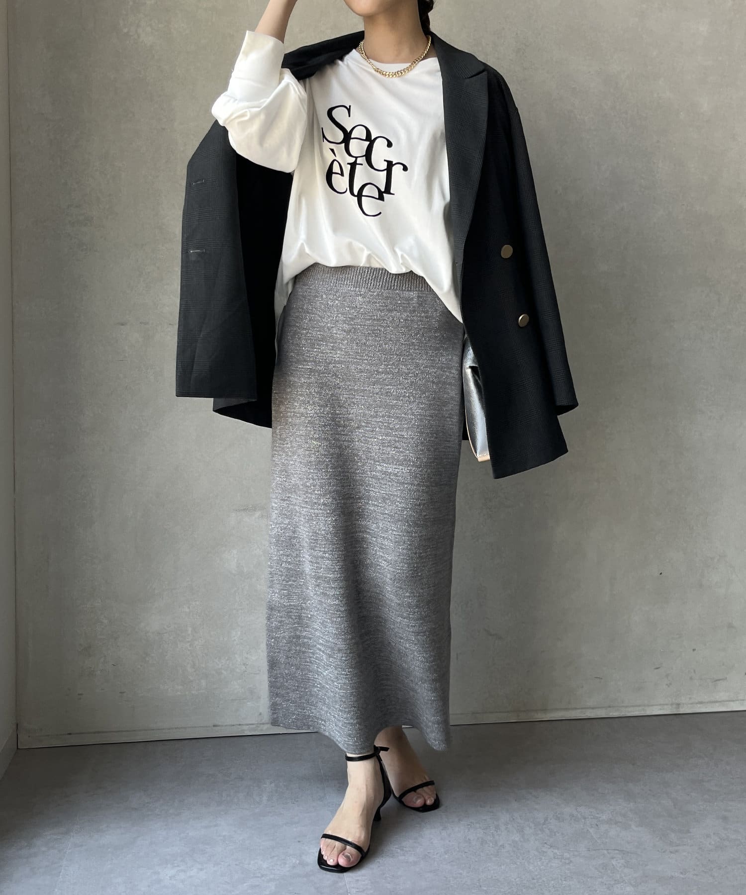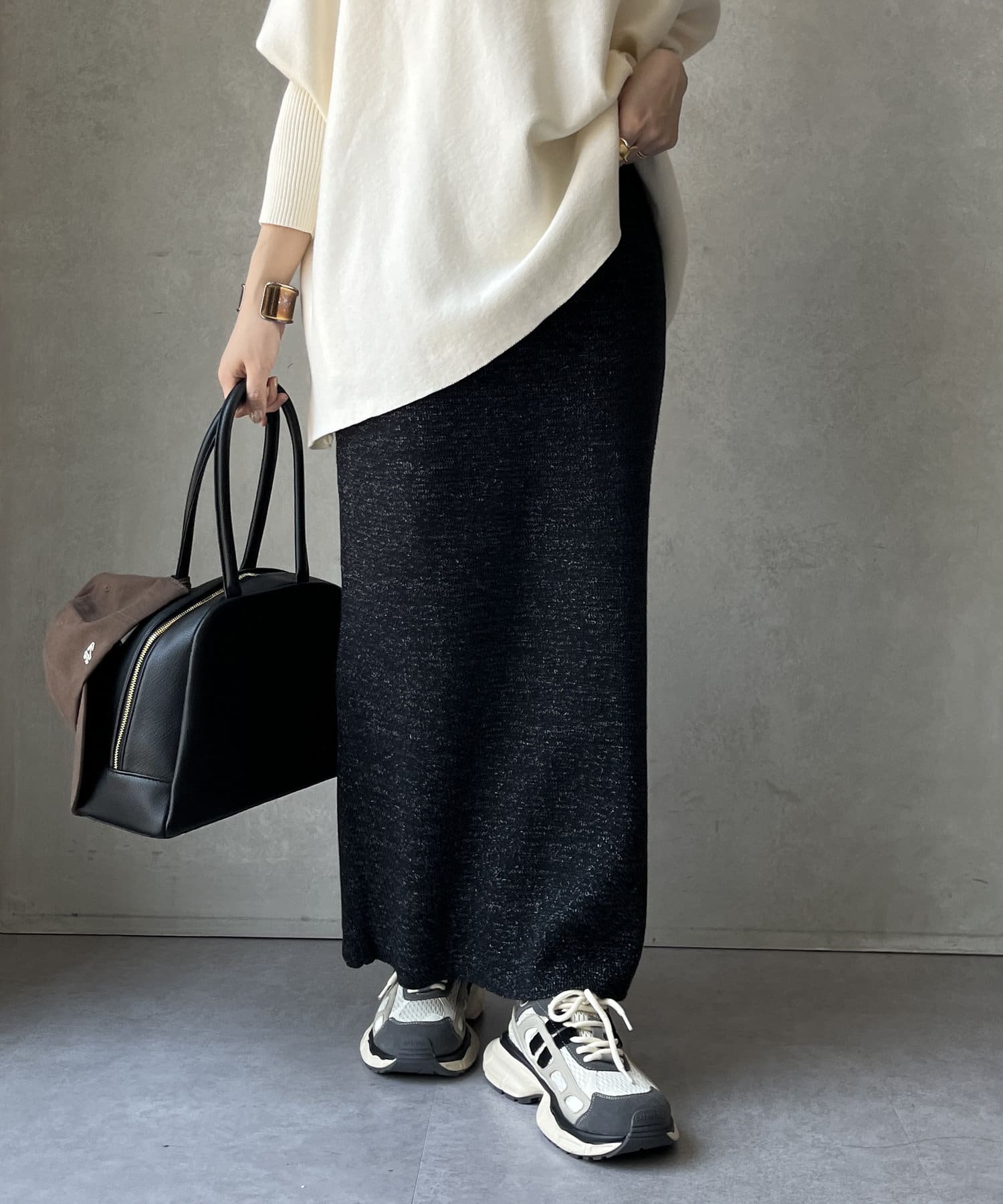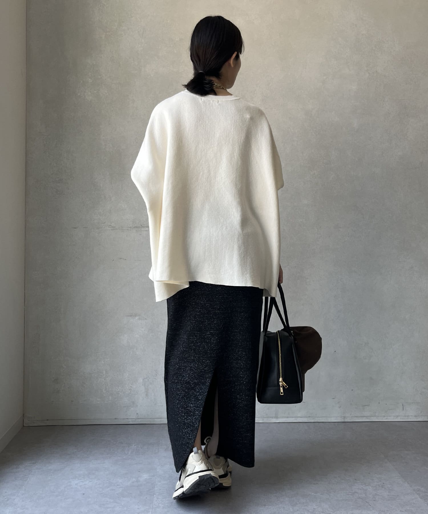 タイトシルエットでありながらもぴたぴたとした窮屈感はなく、リラクシーな着心地。