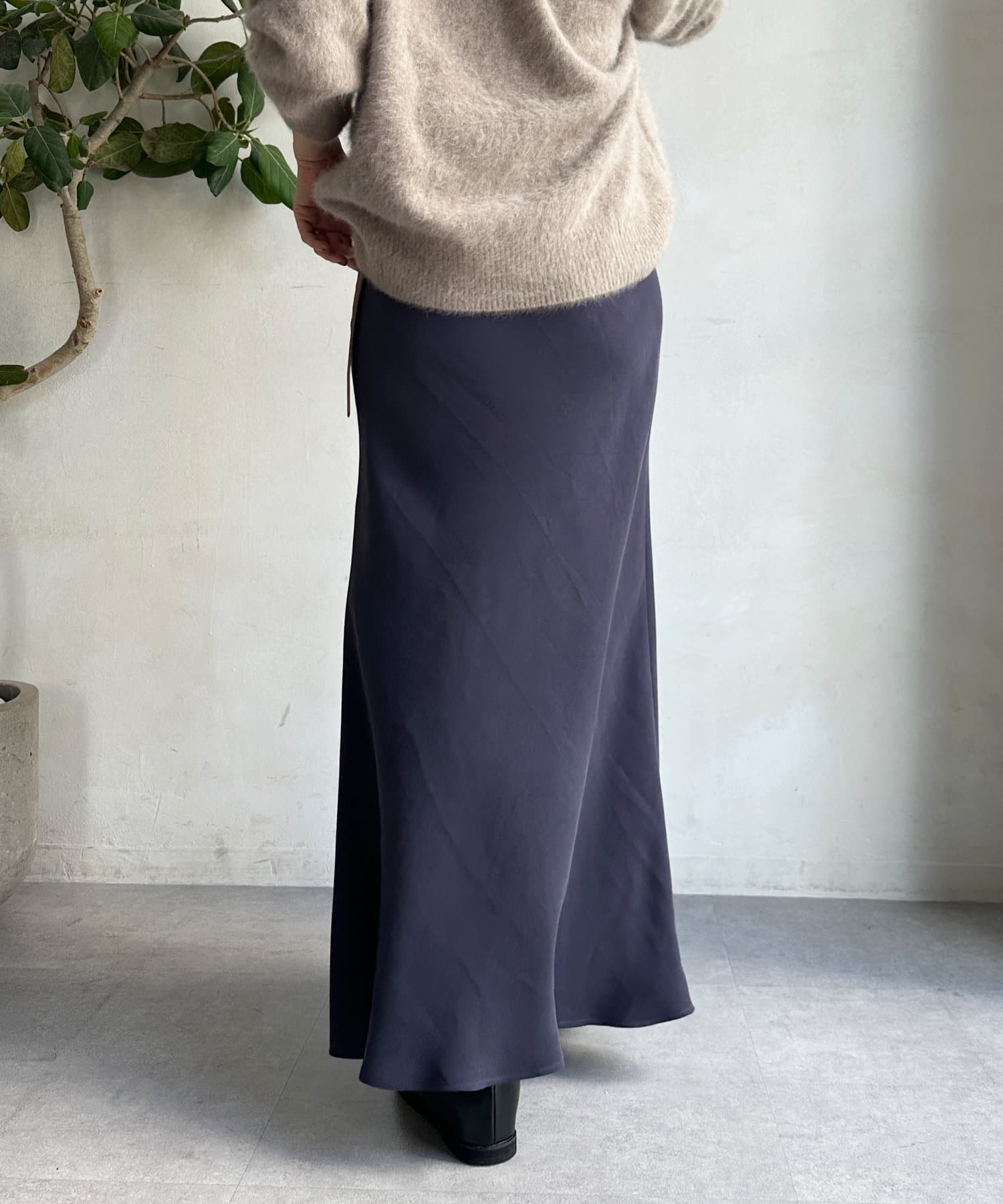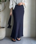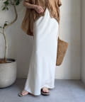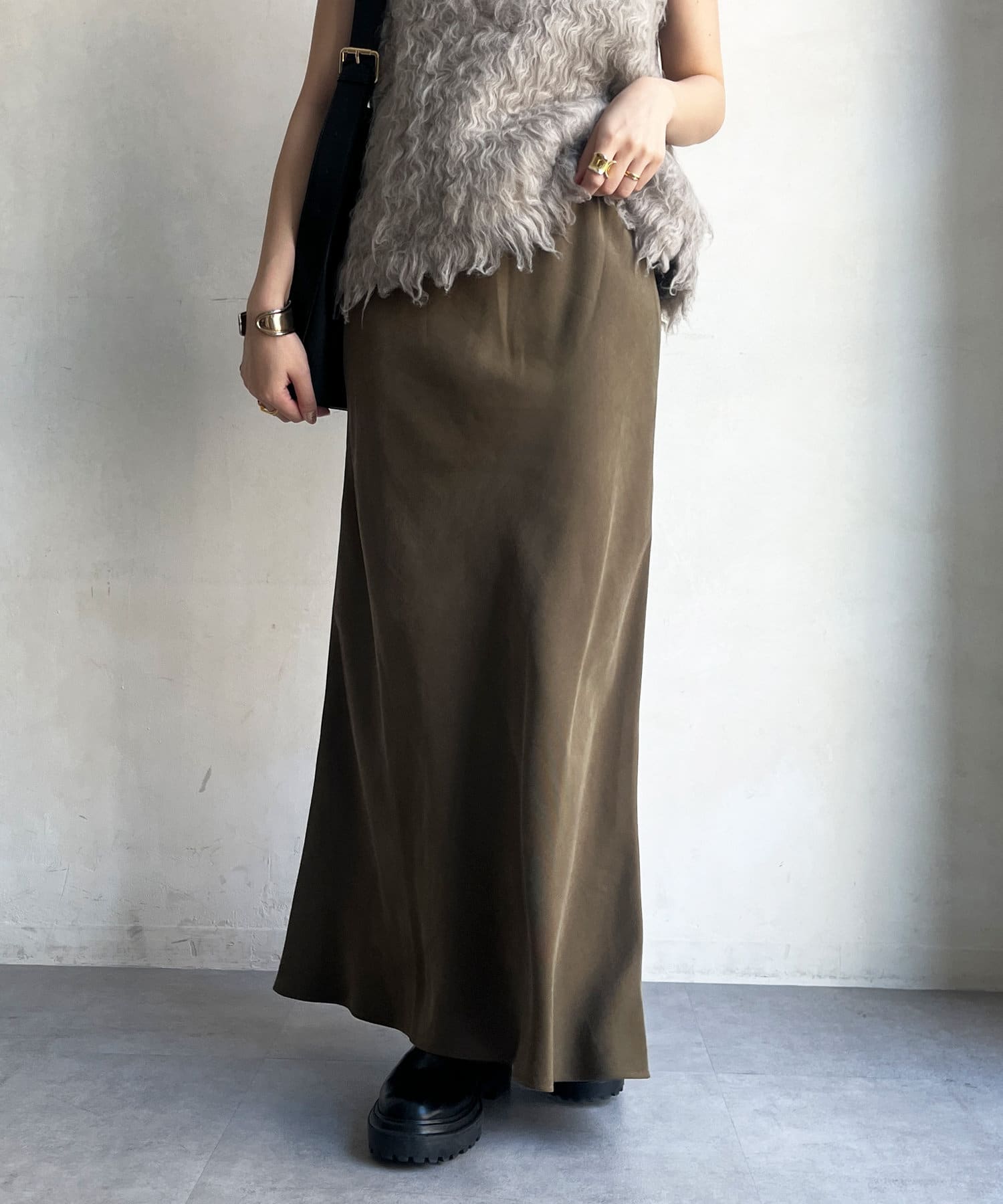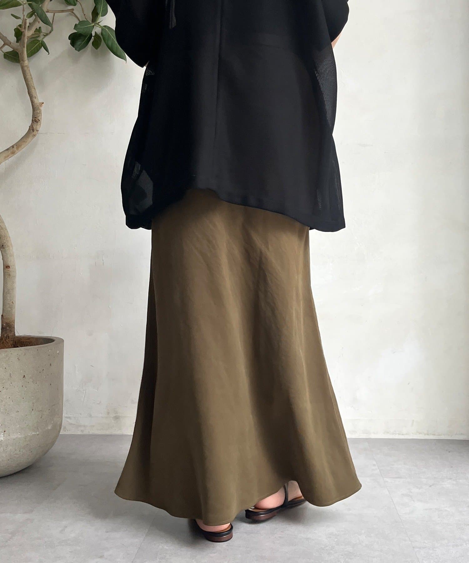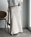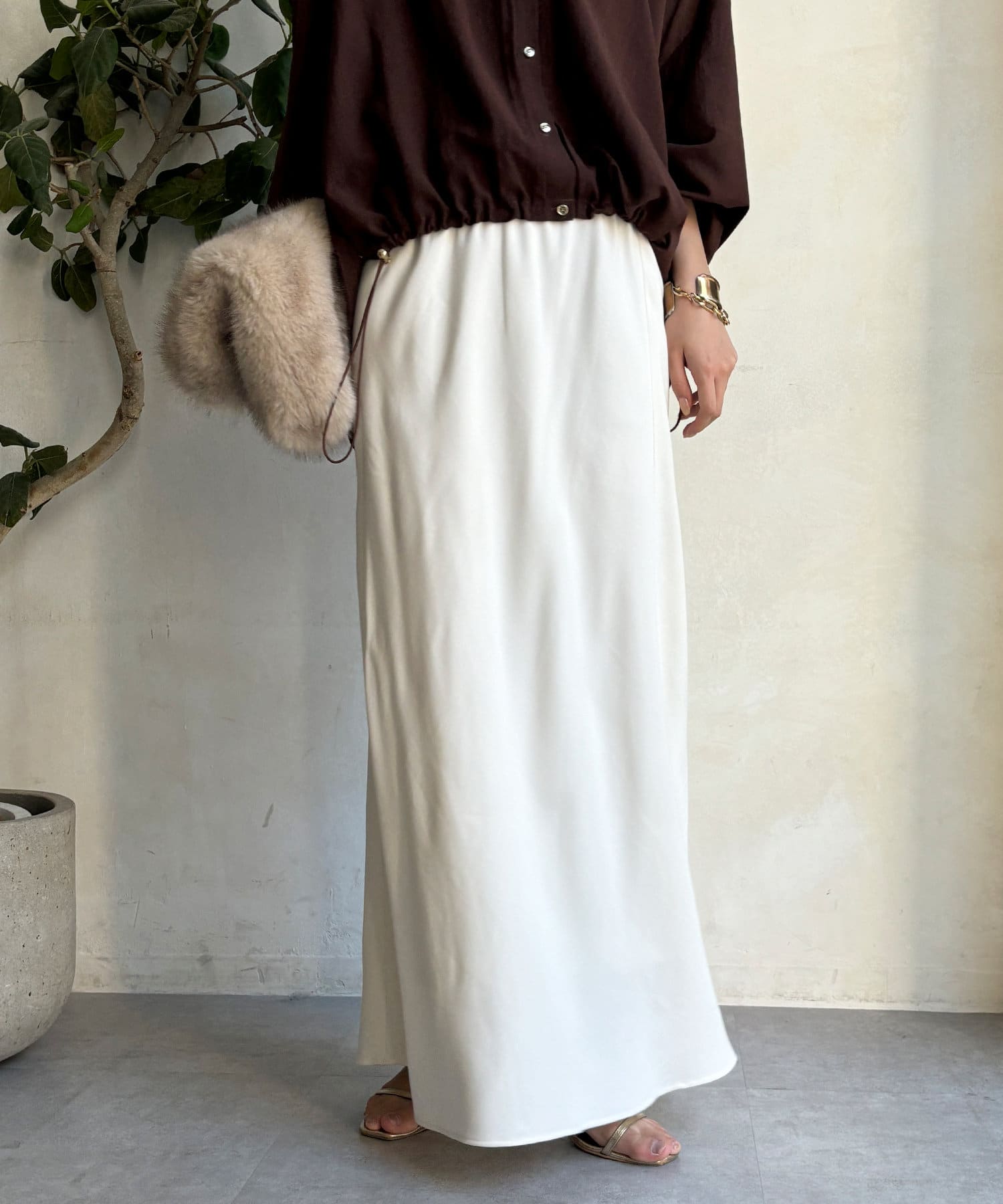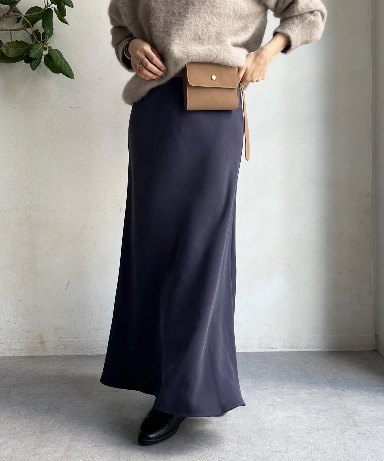 すっきりとしたきれいなシルエットがレディライクな印象を与えてくれるサテンスカート。