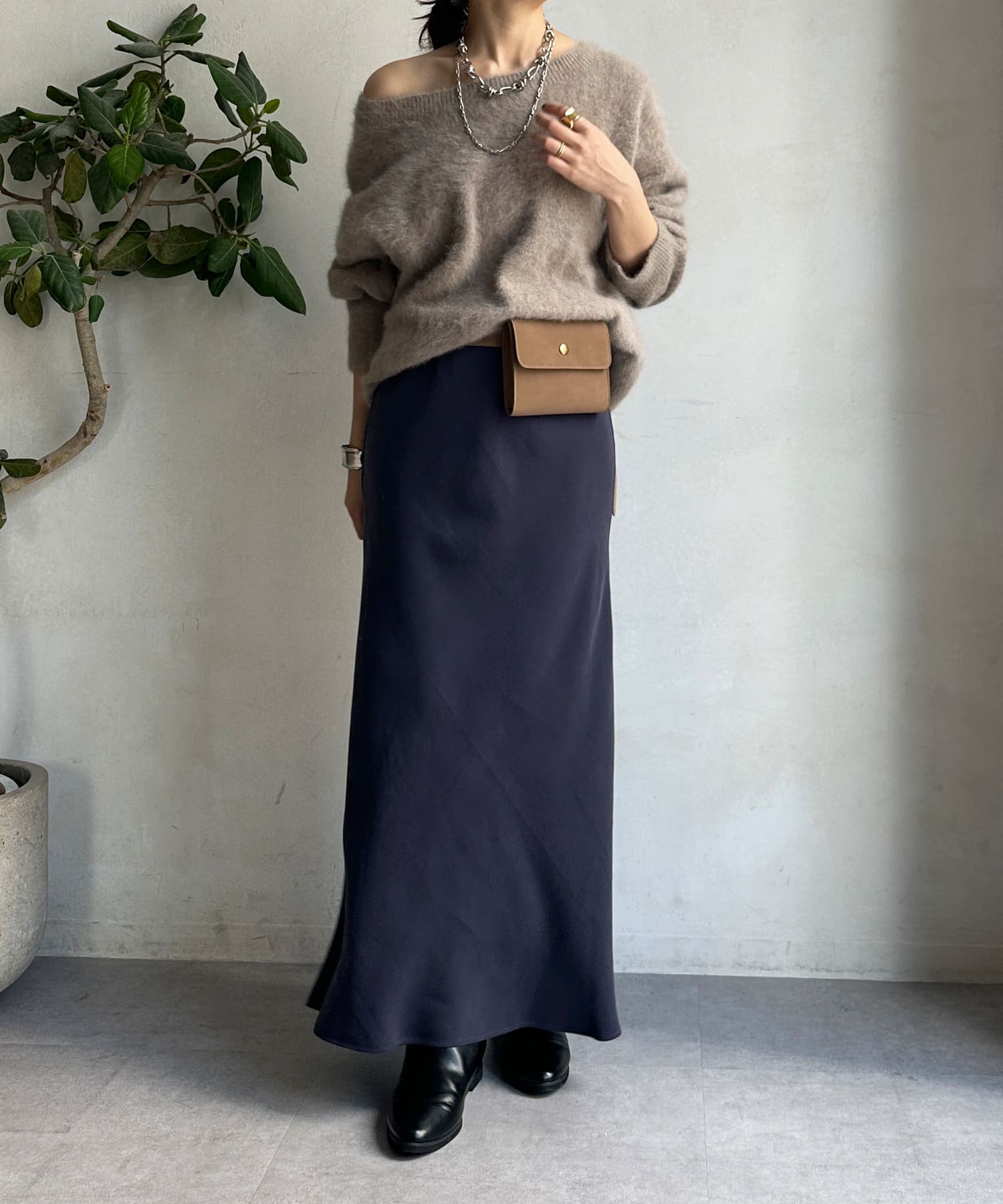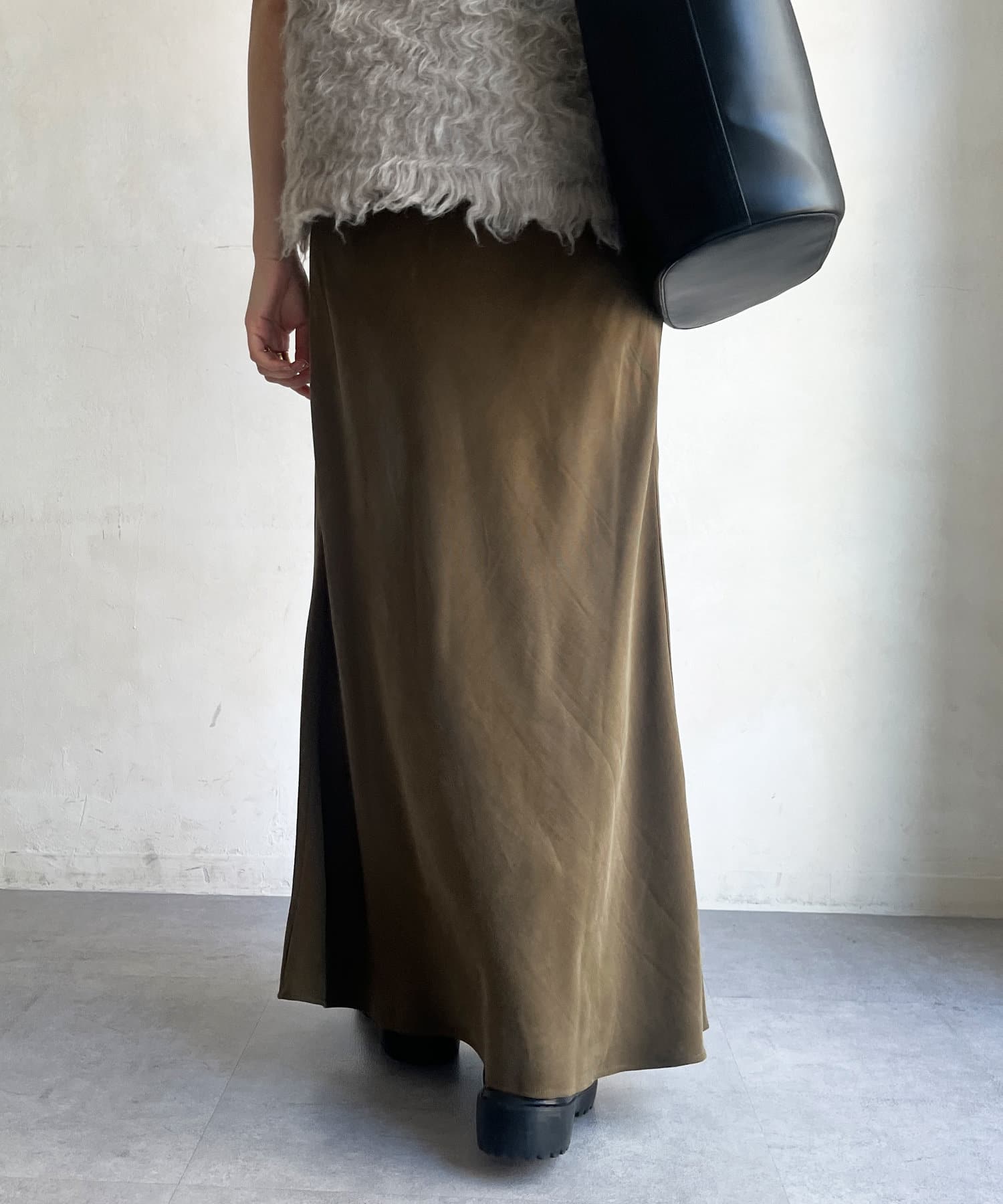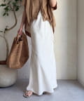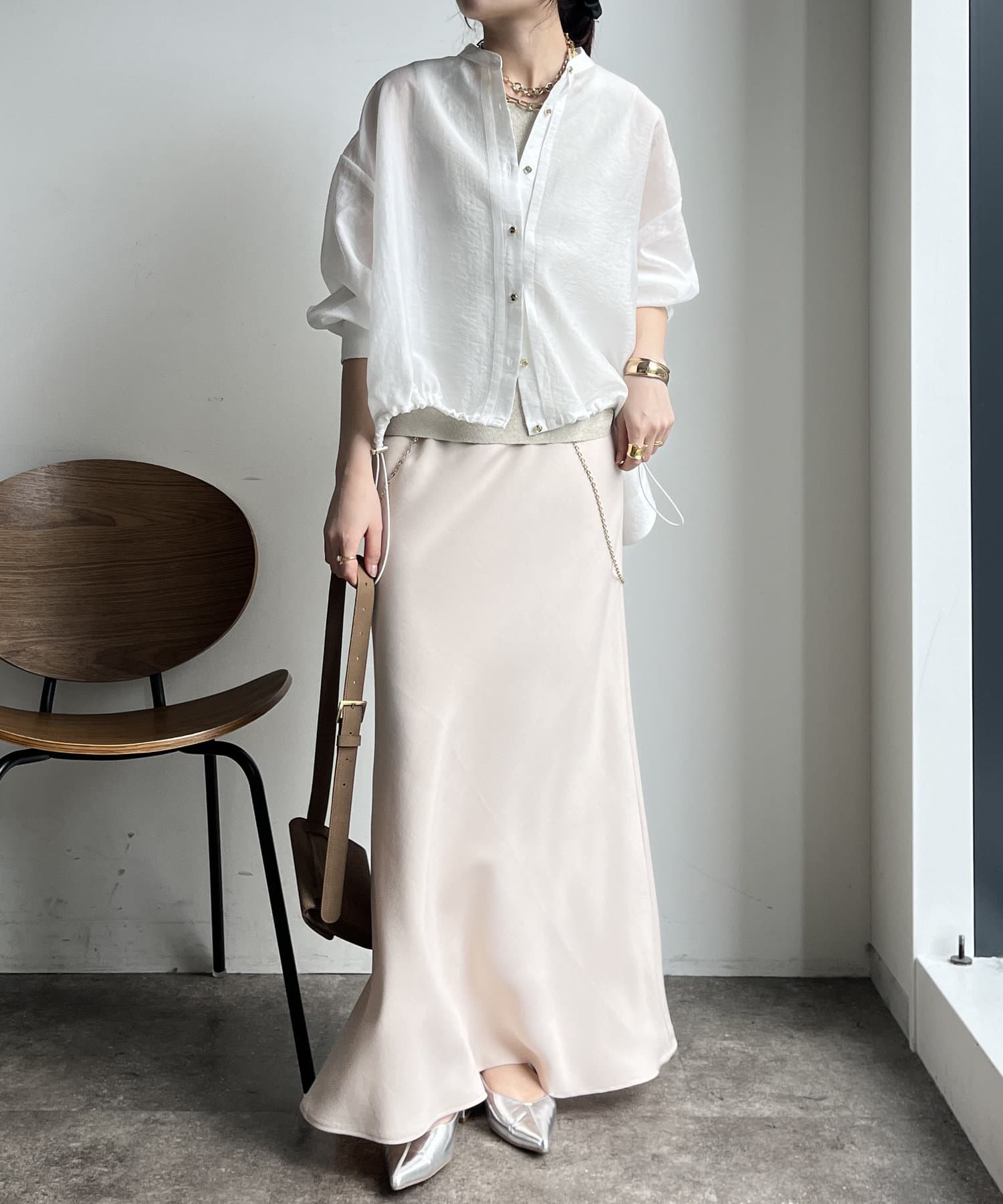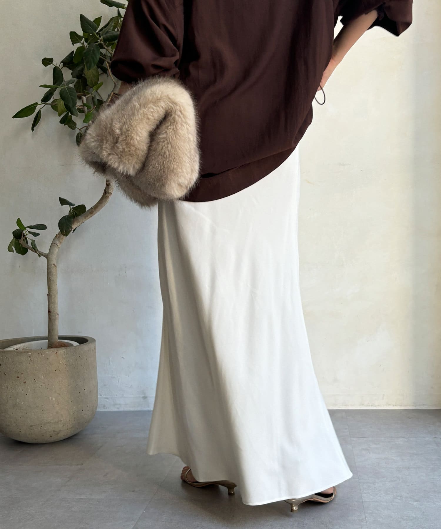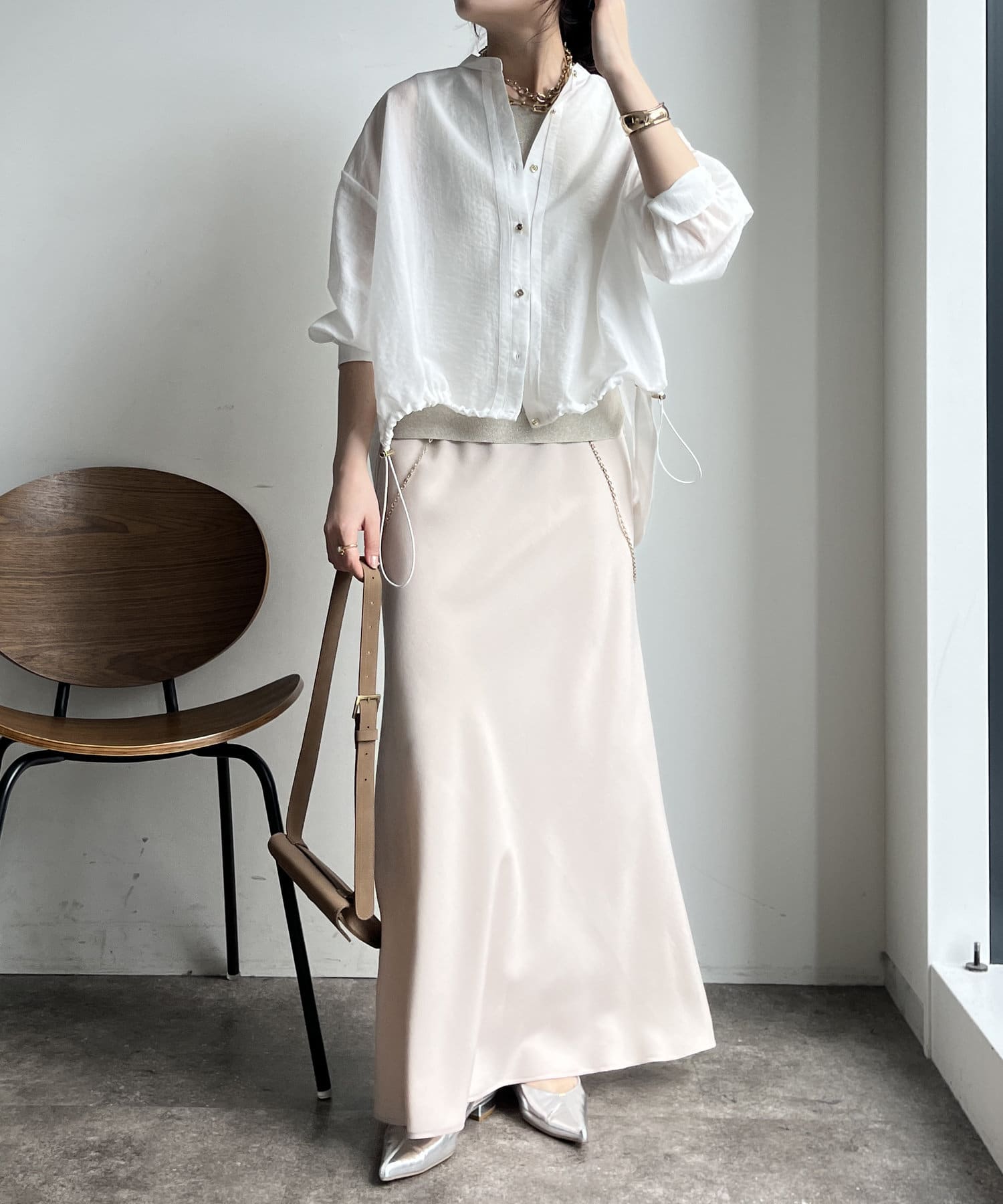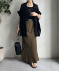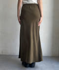 すっきりとしたきれいなシルエットがレディライクな印象を与えてくれるサテンスカート。