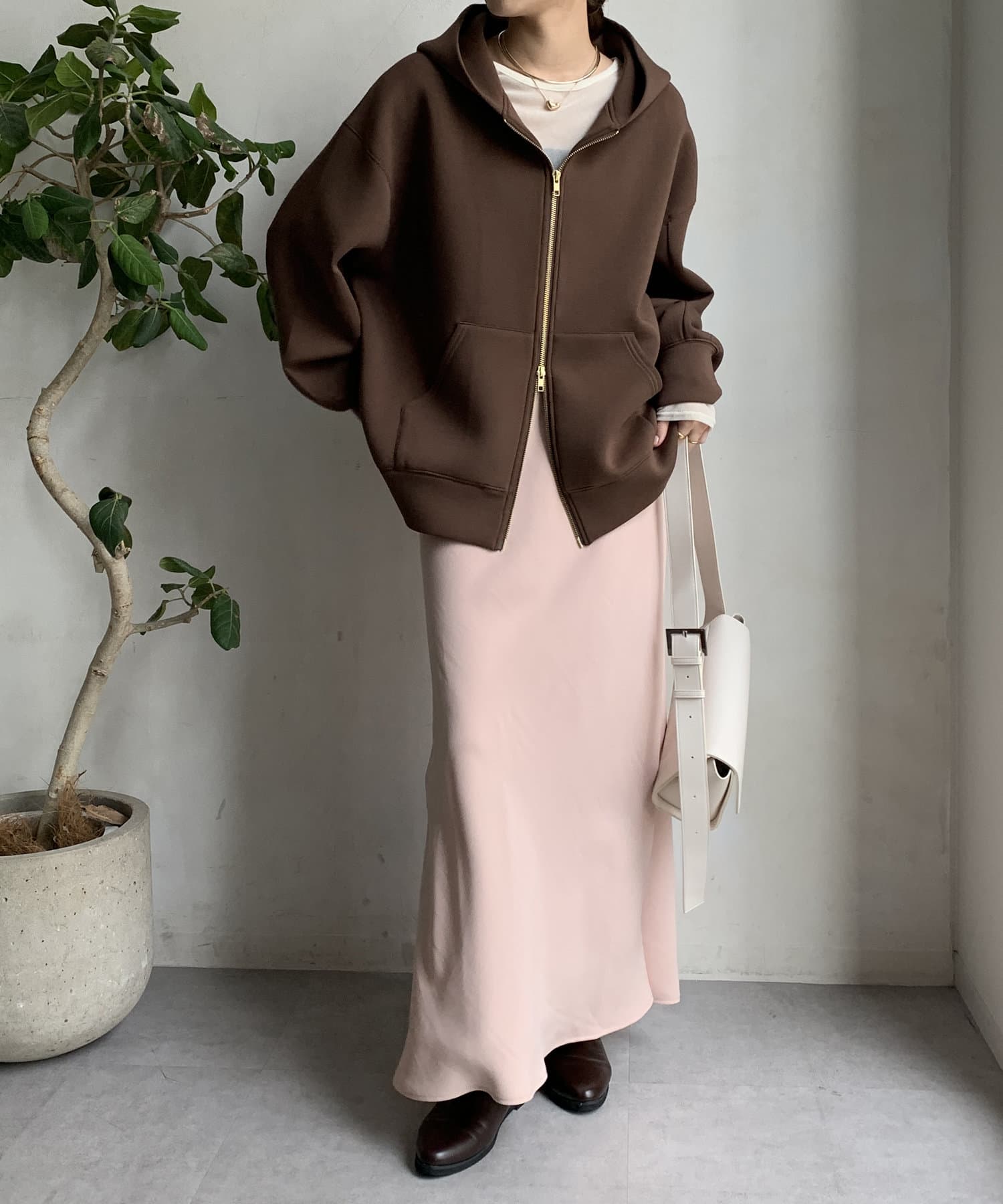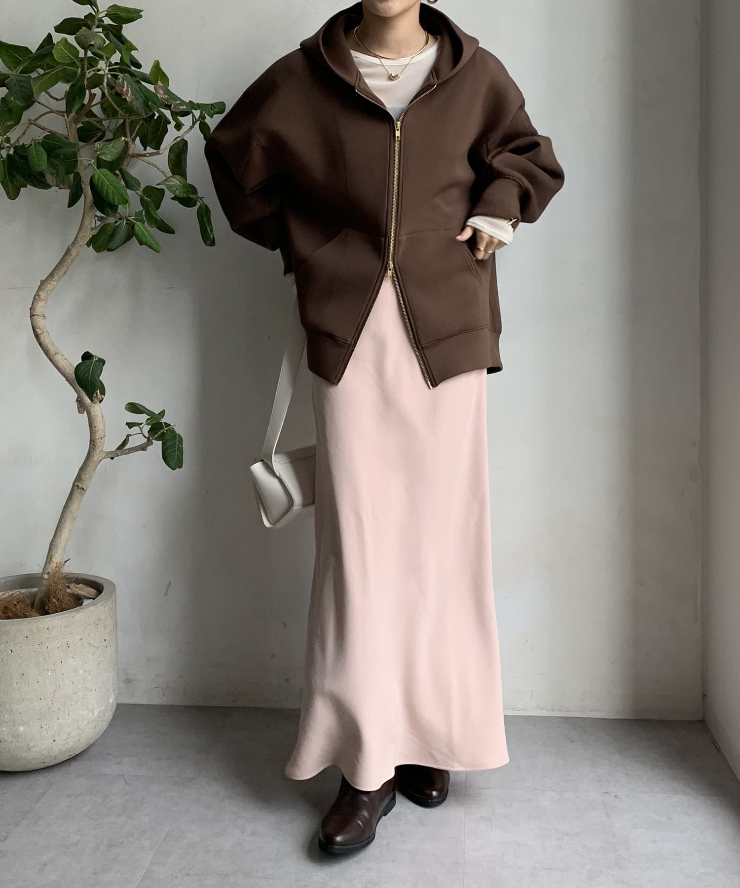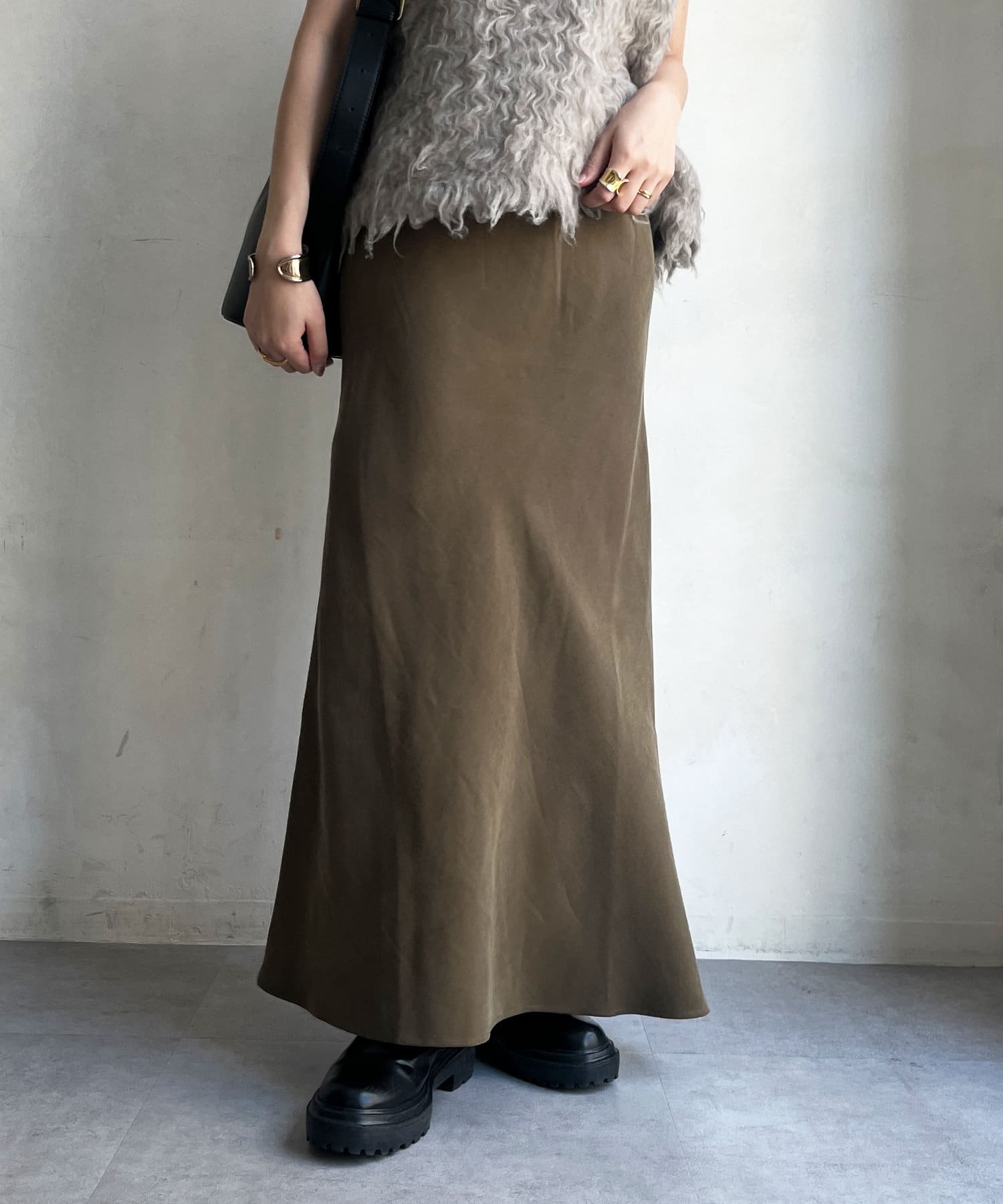 しっかりとした素材感ながらも落ち感のある素材感は、このスカートのシルエットにぴったり。