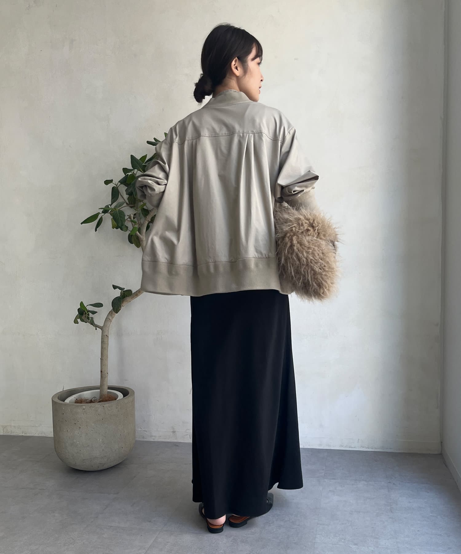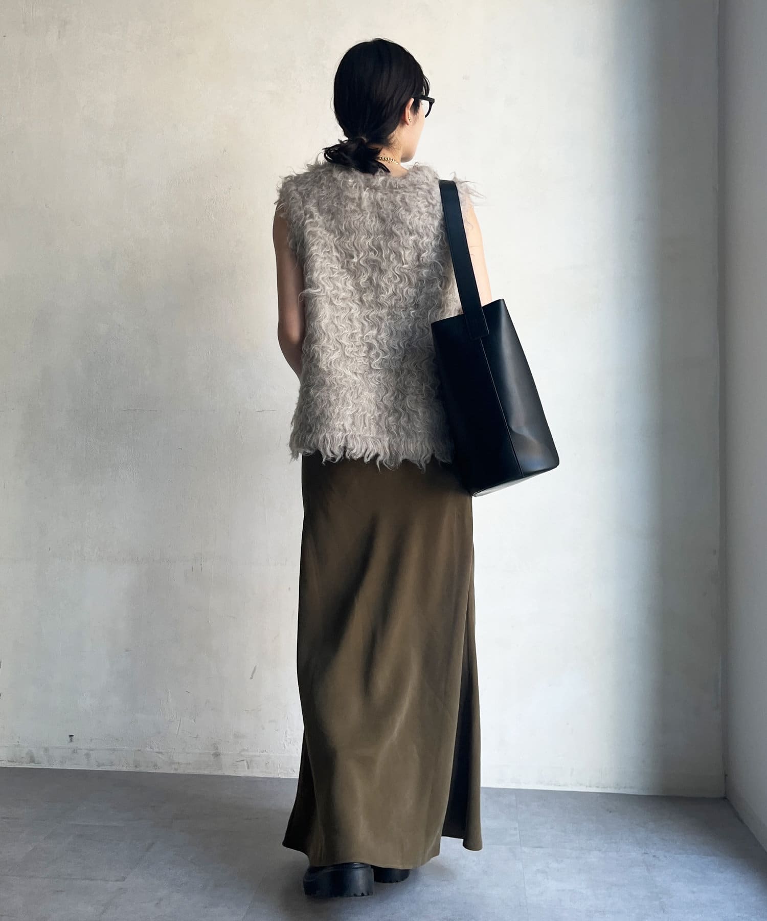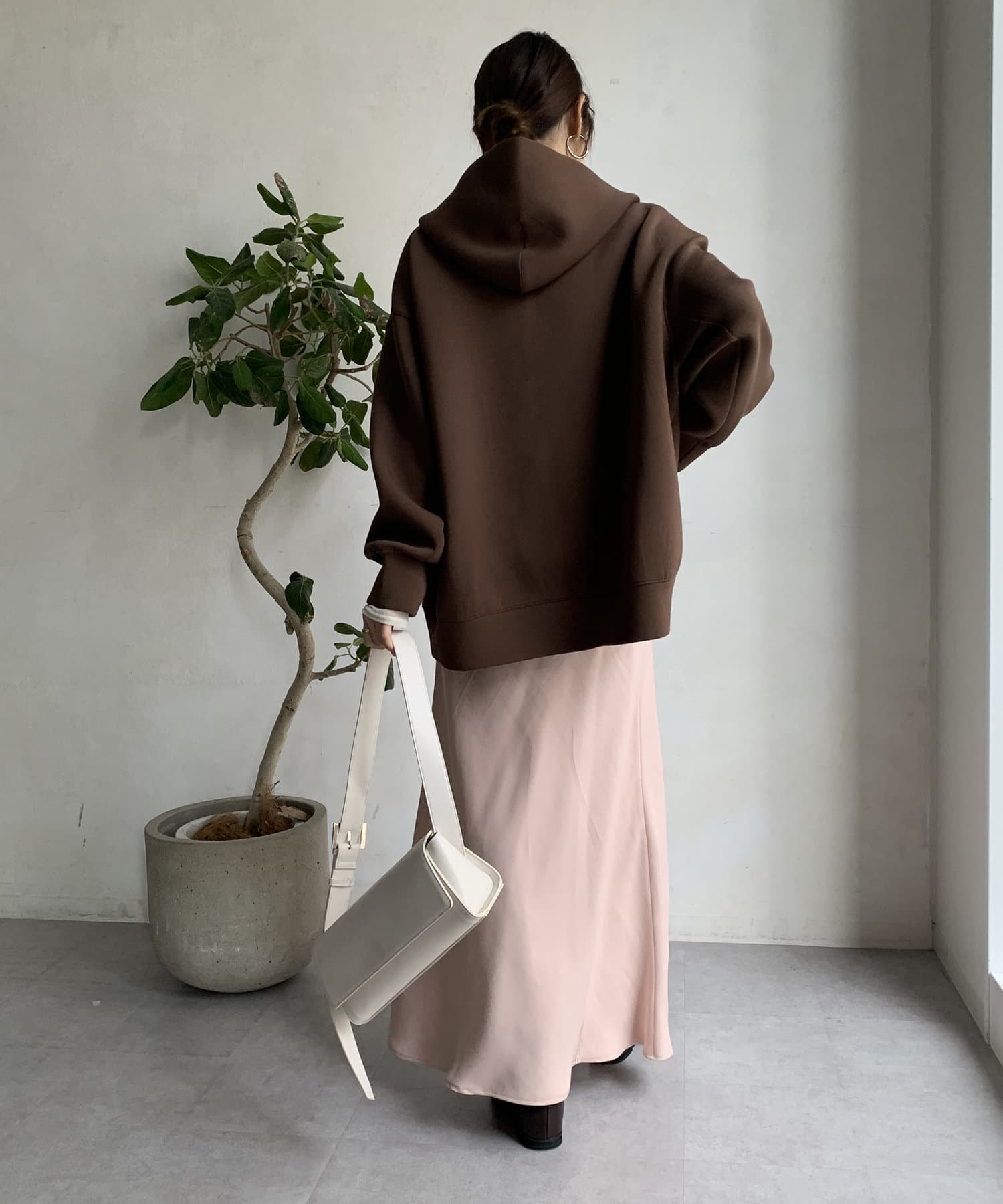 しっかりとした素材感ながらも落ち感のある素材感は、このスカートのシルエットにぴったり。
