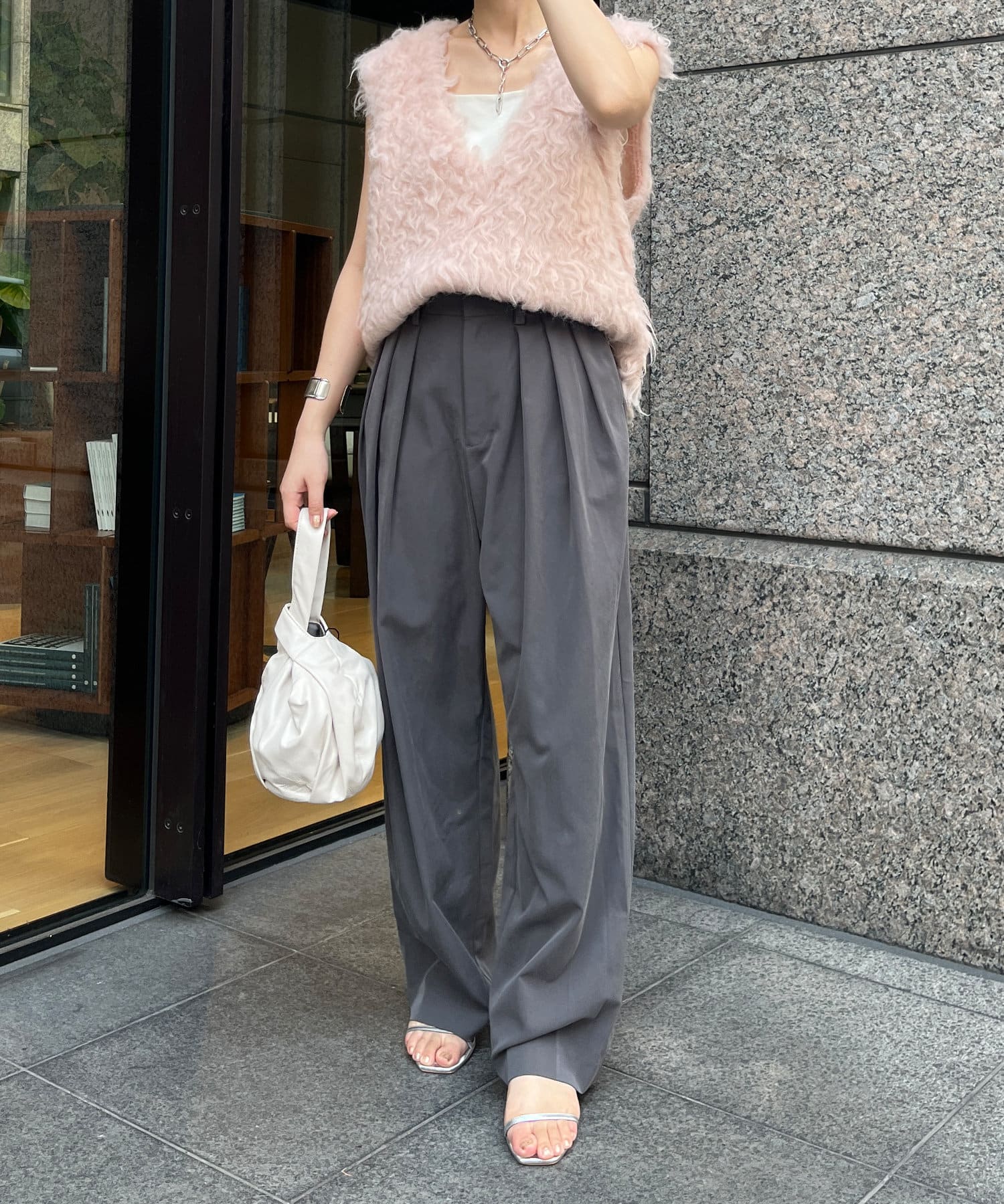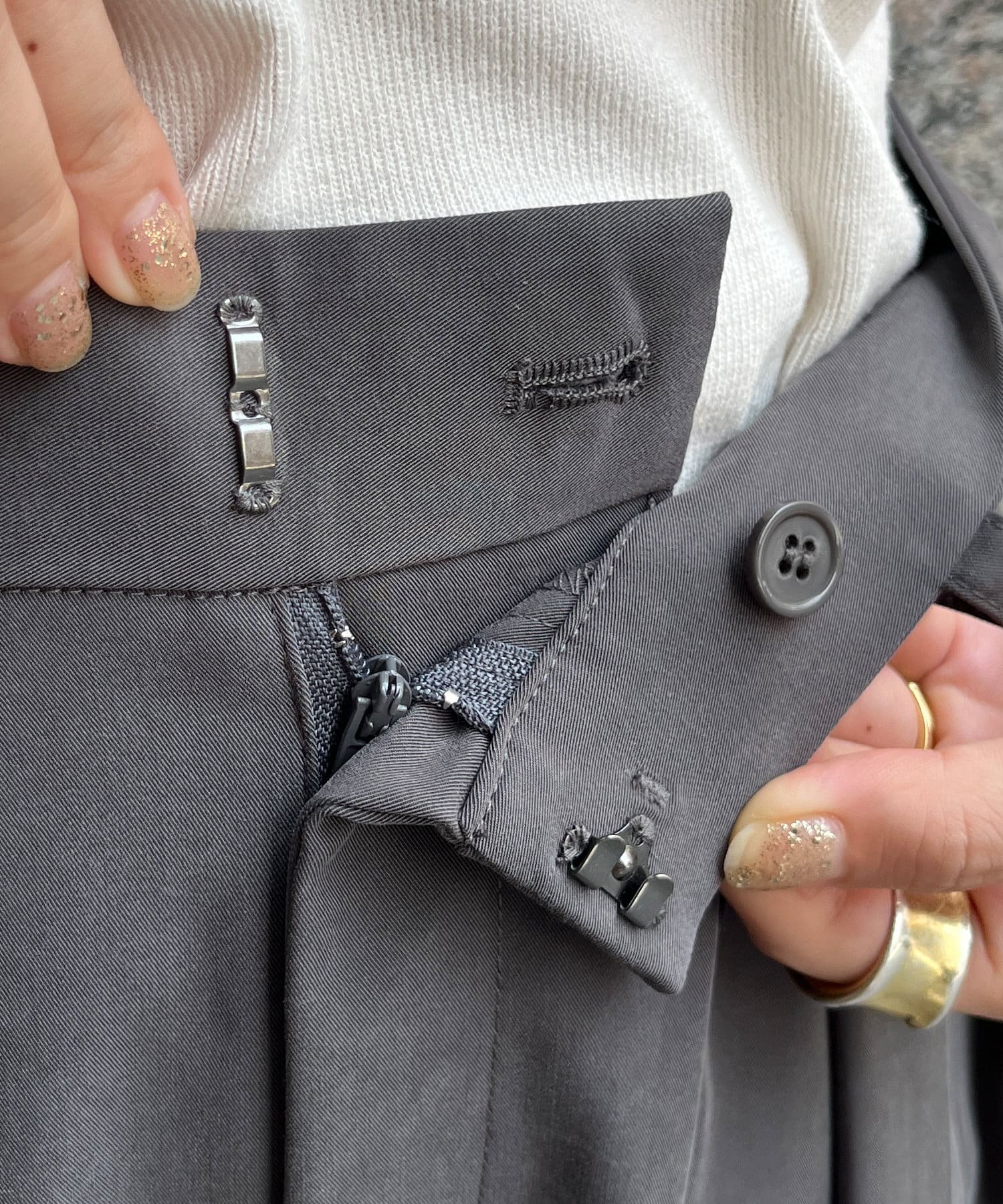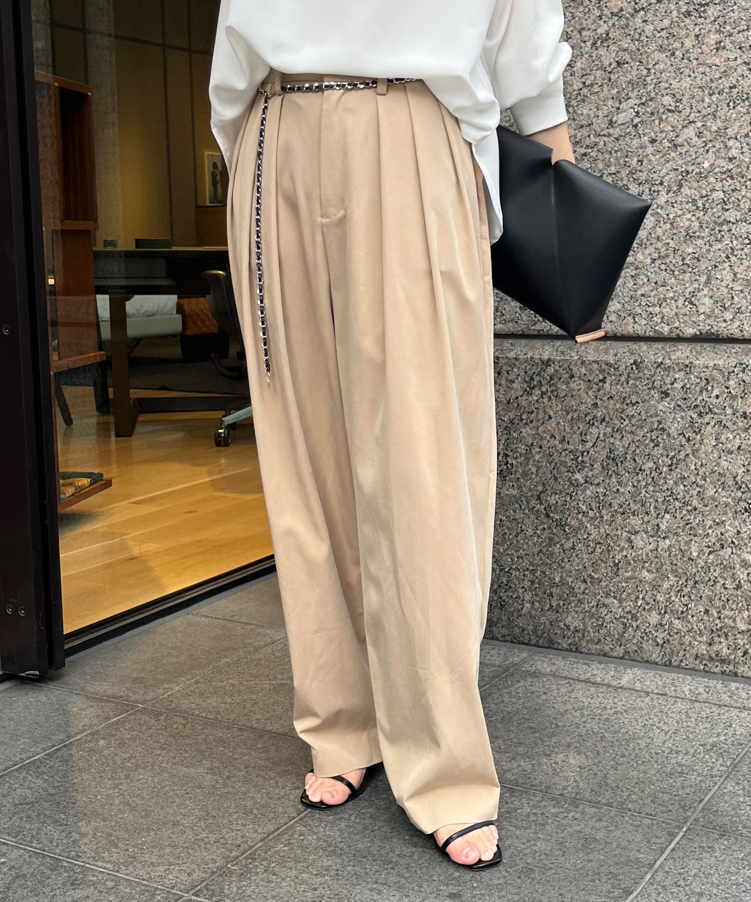 ウエスト部分にはダブルタックを施し、落ち感のあるシルエットを演出。