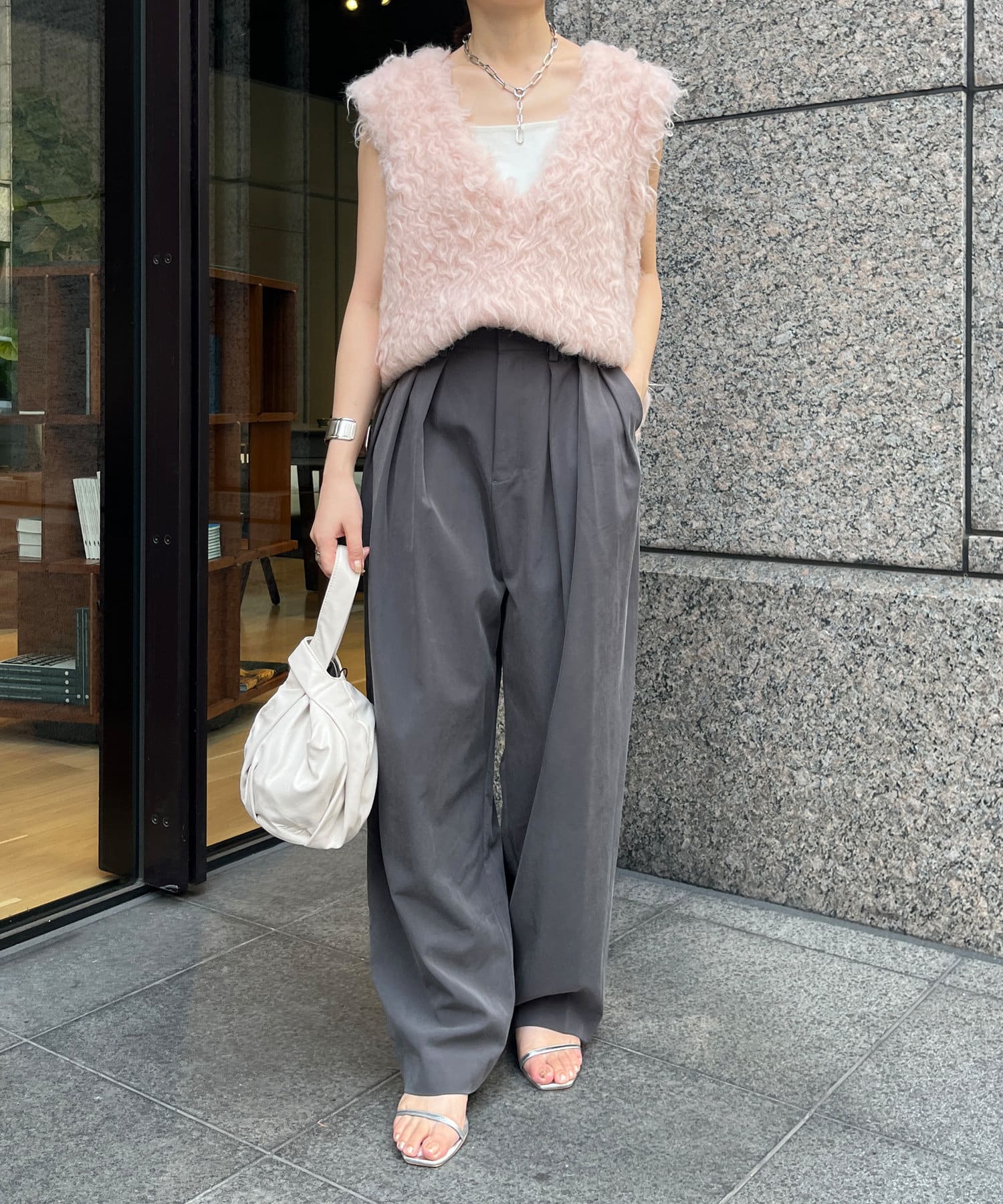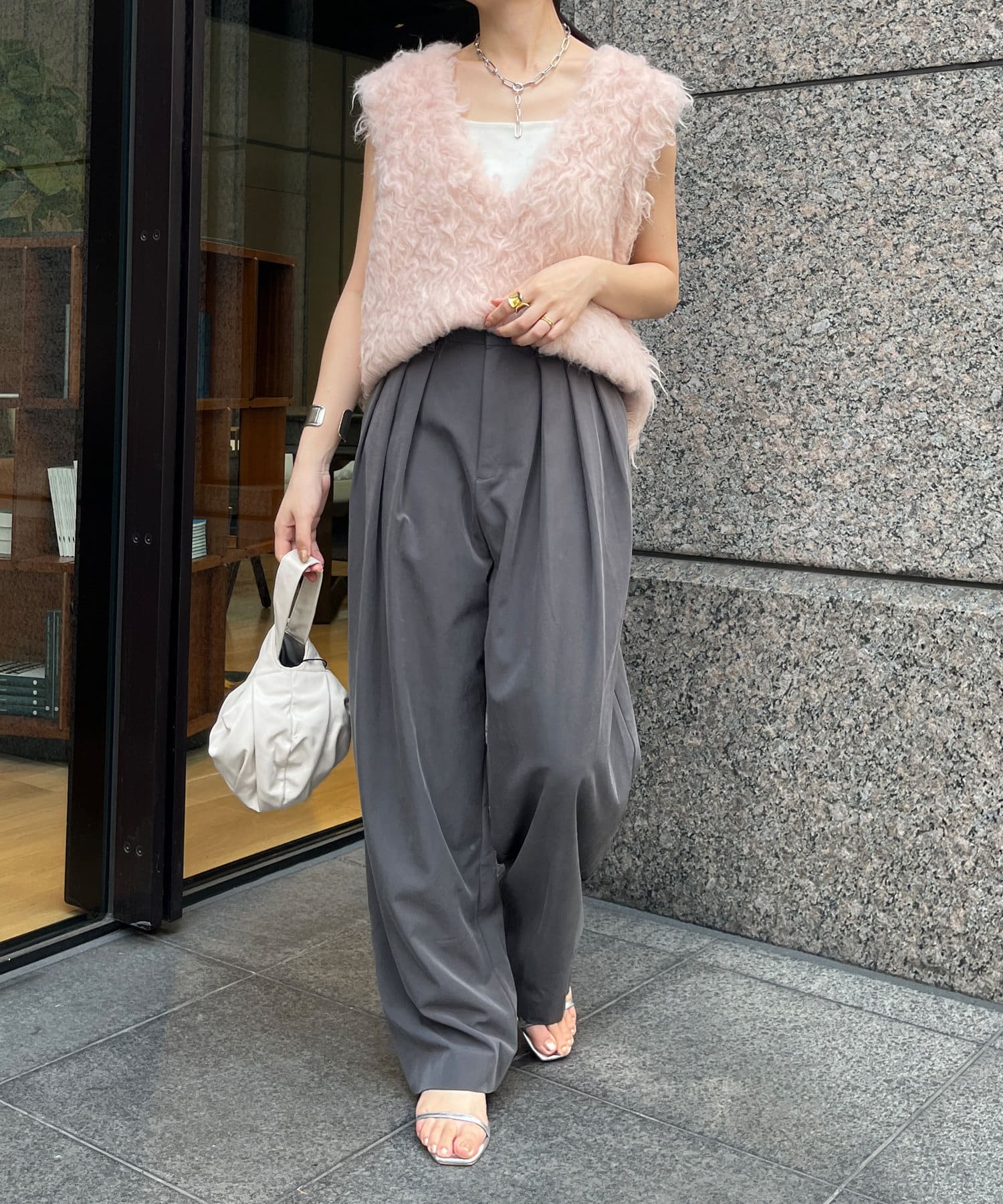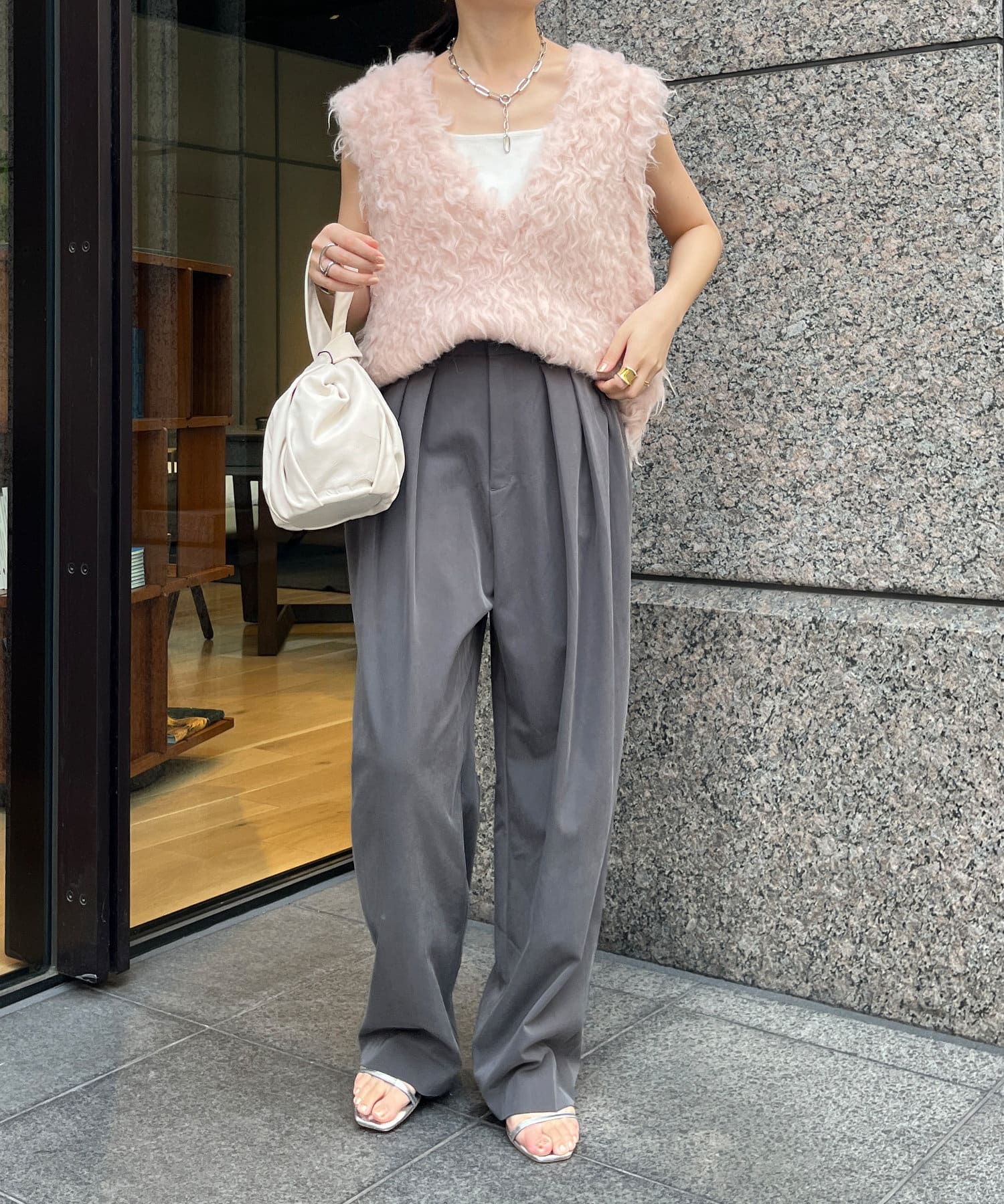 ウエスト部分にはダブルタックを施し、落ち感のあるシルエットを演出。