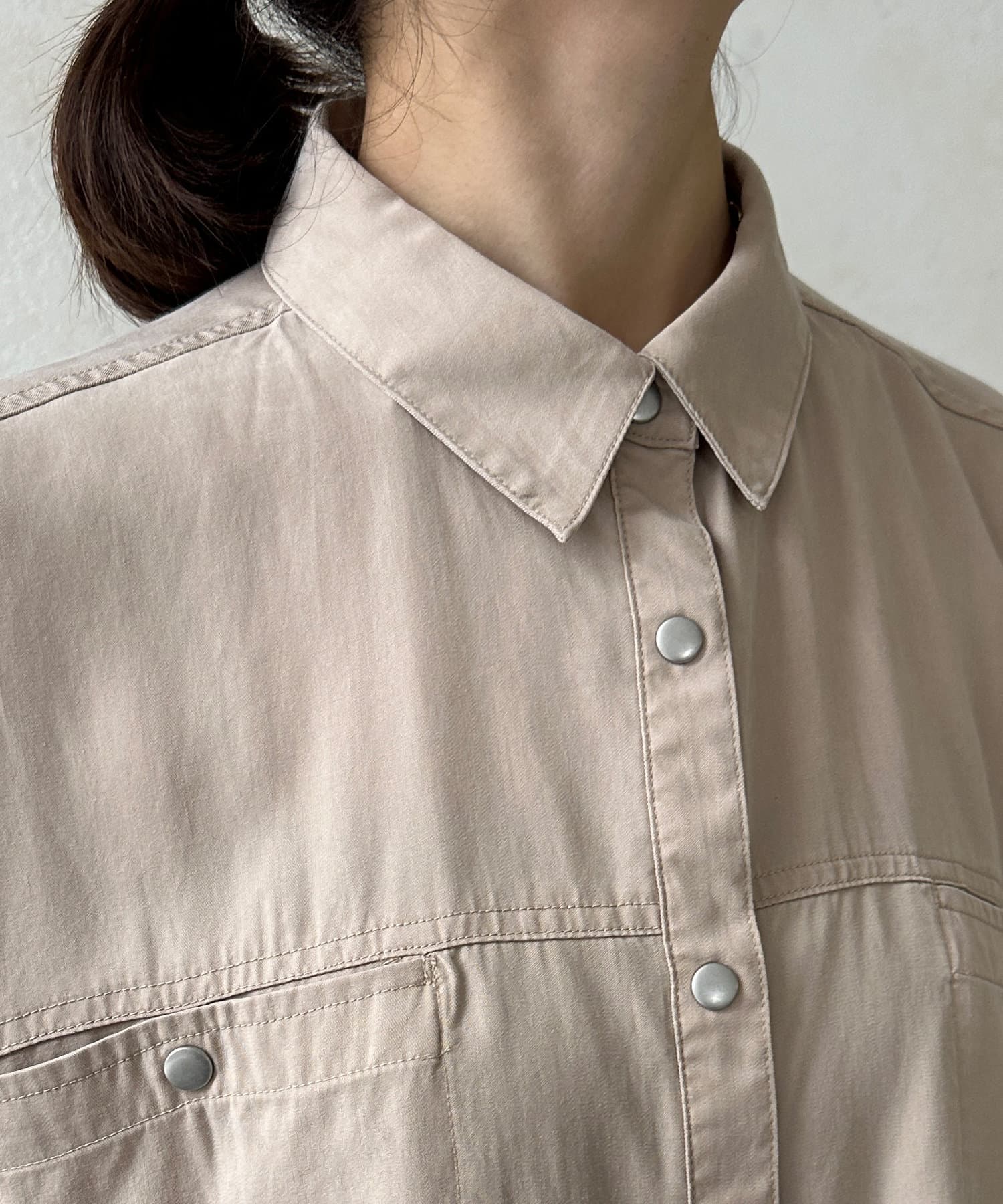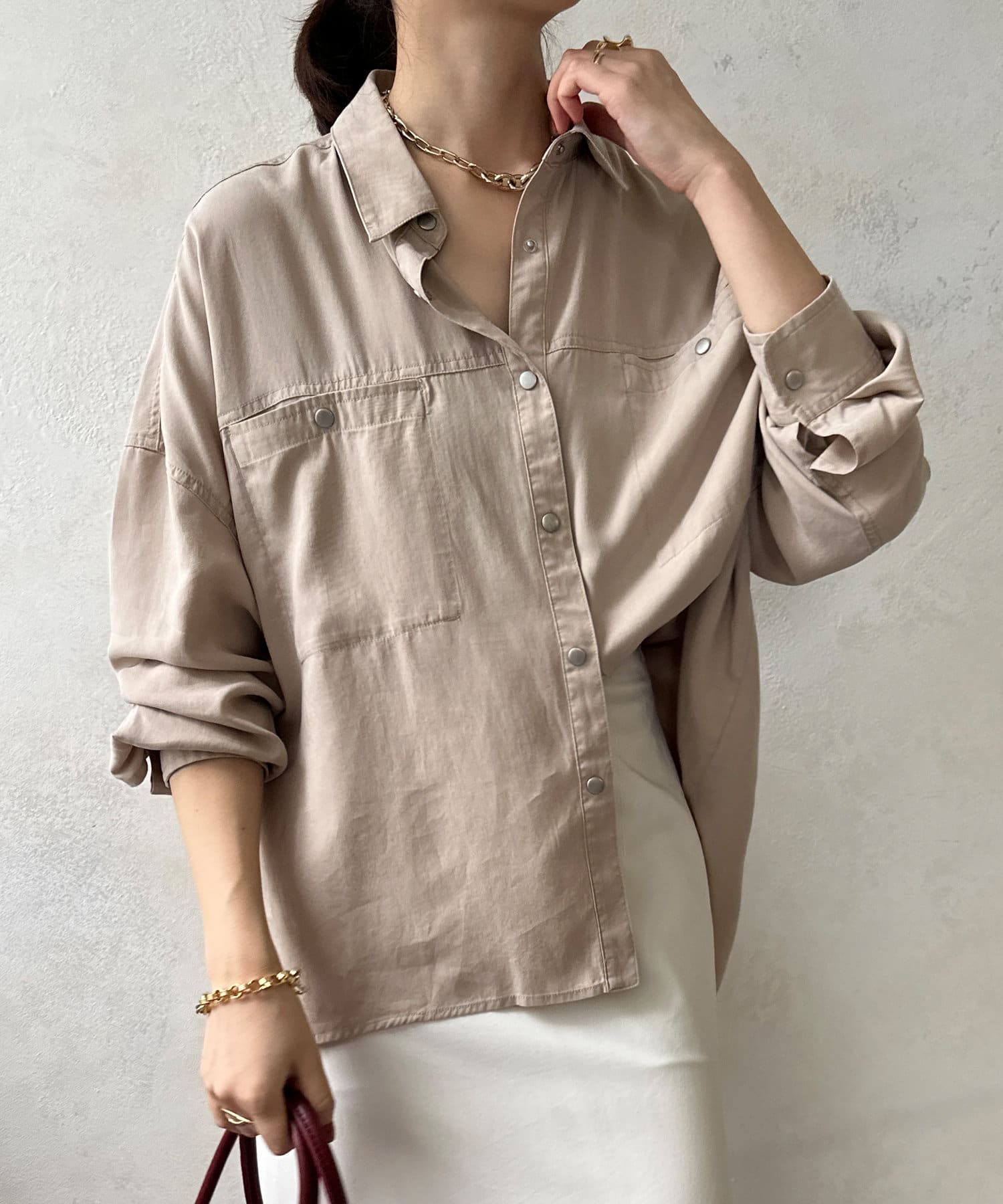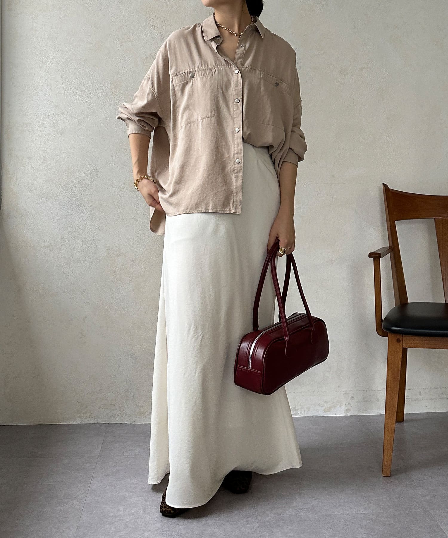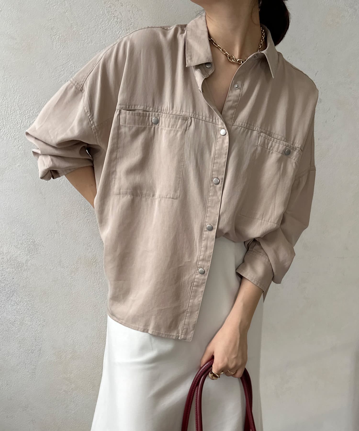 テンセル素材の落ち感ある風合いがレディライクに決まる1着。