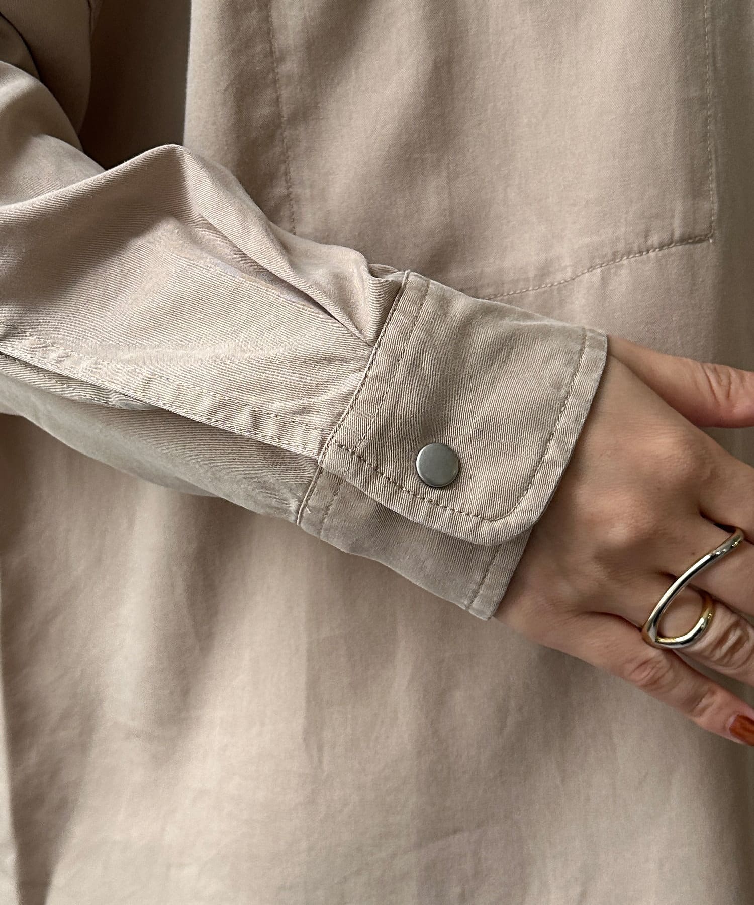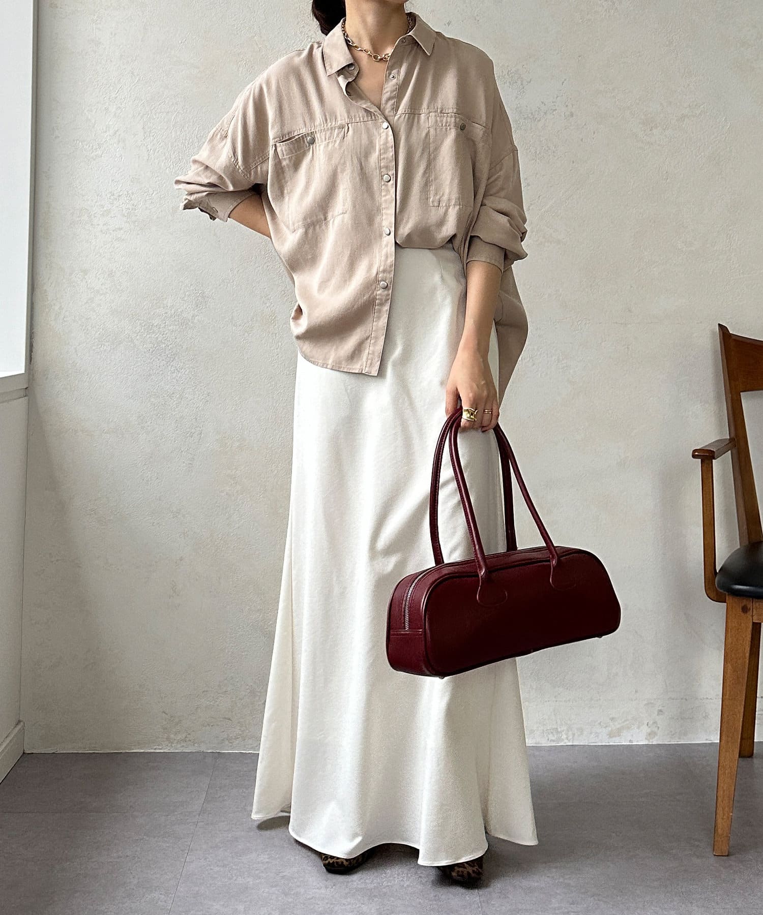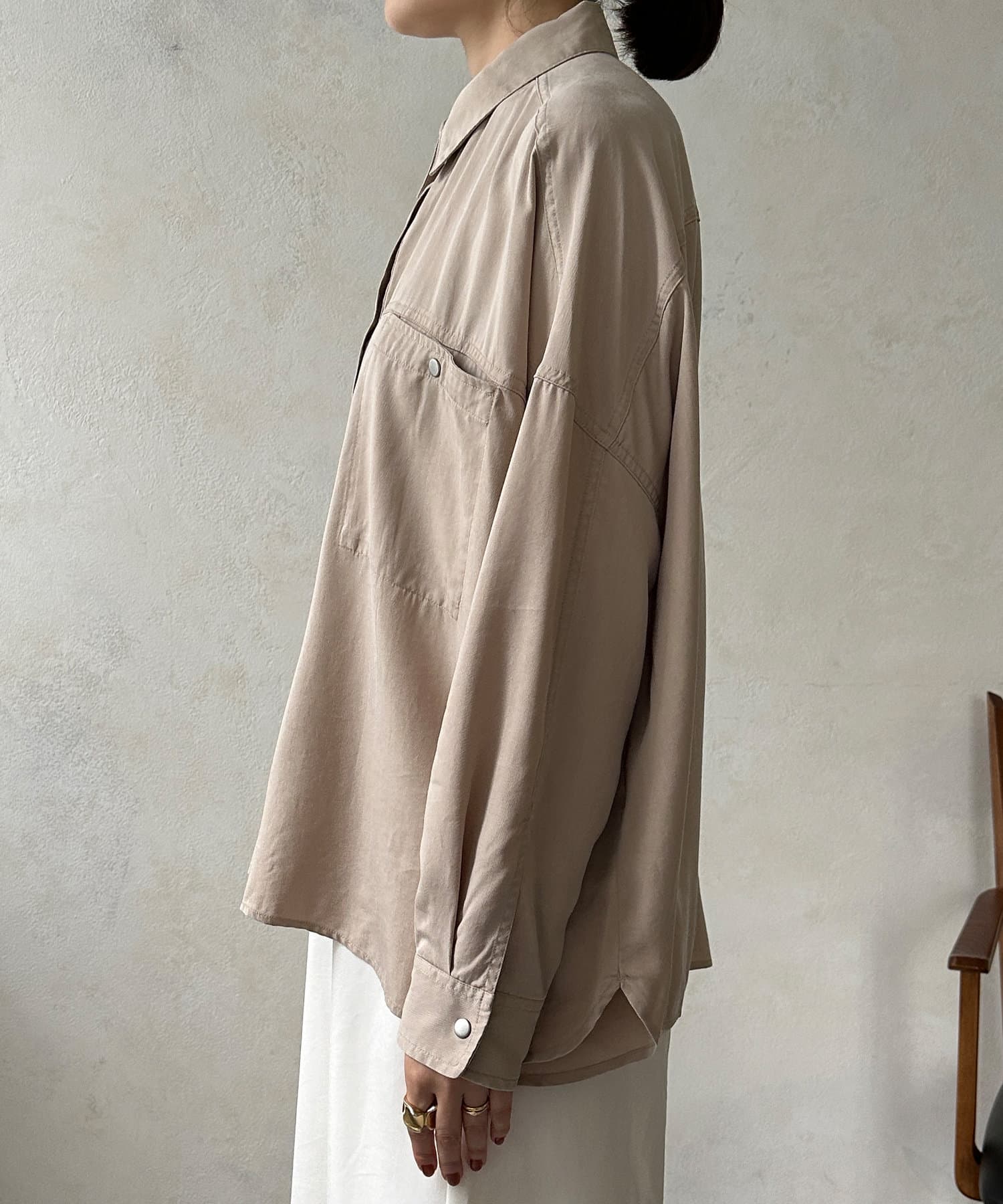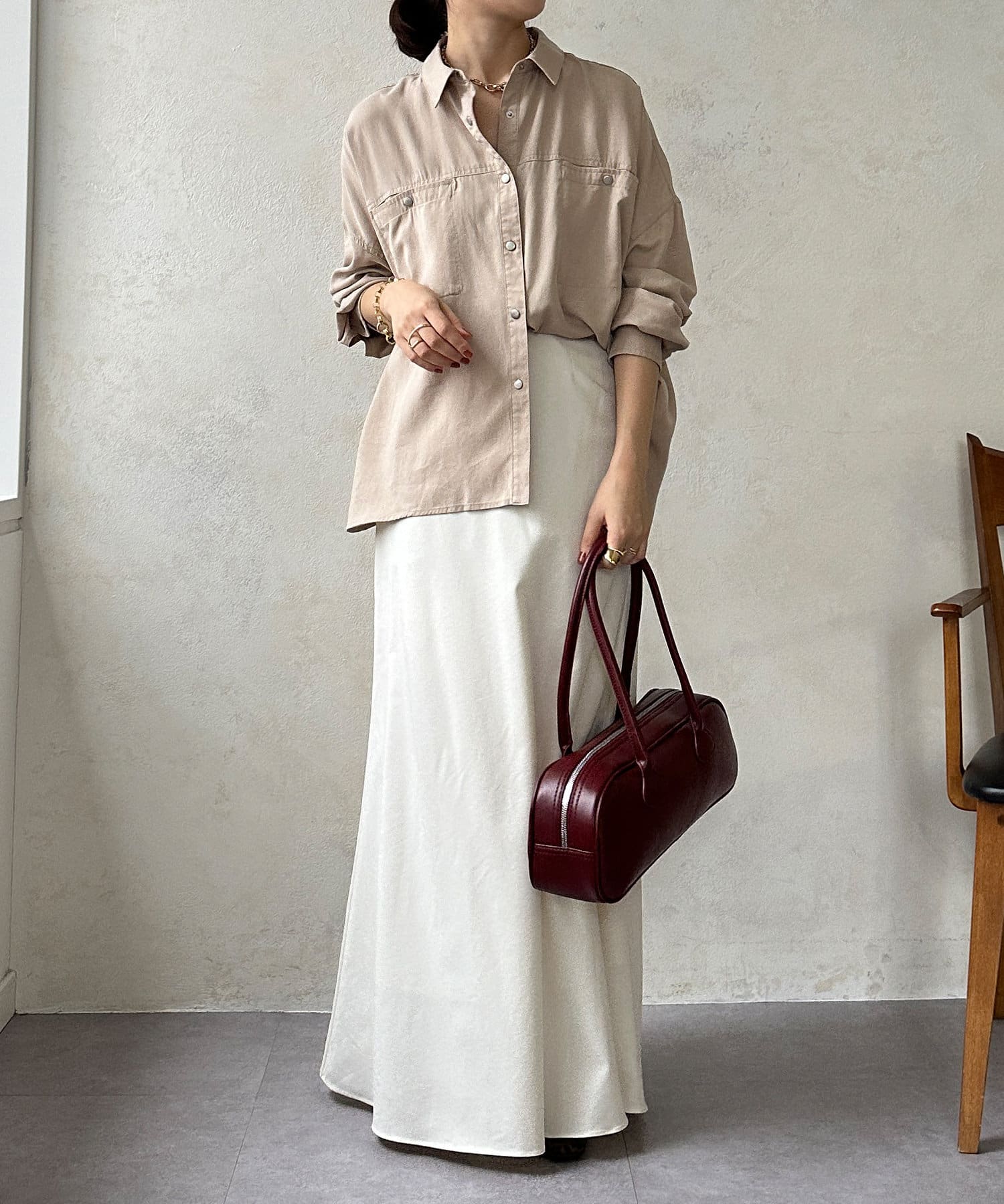 テンセル素材の落ち感ある風合いがレディライクに決まる1着。