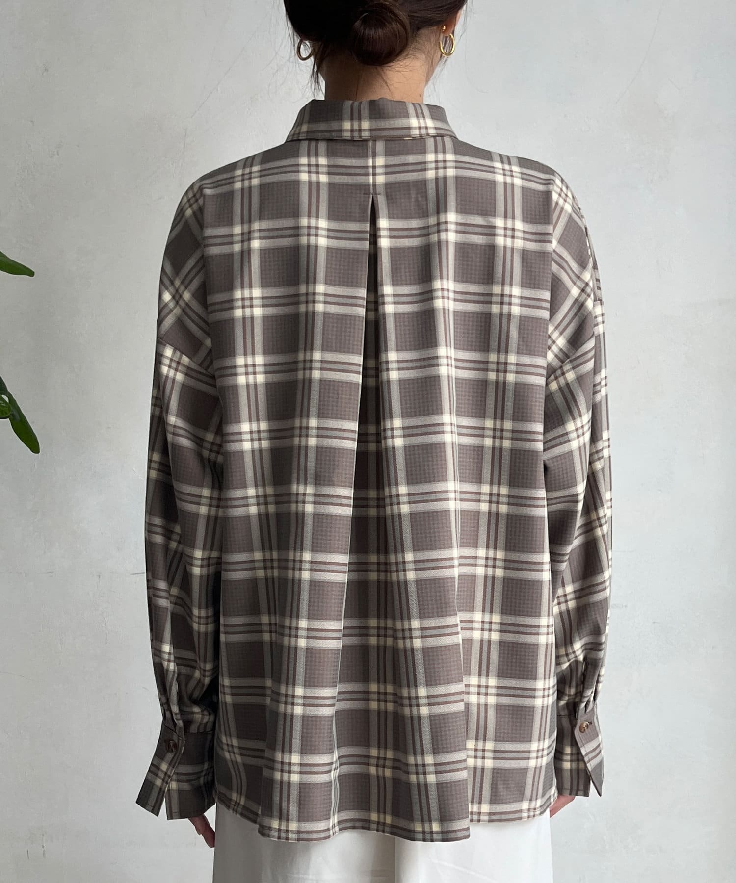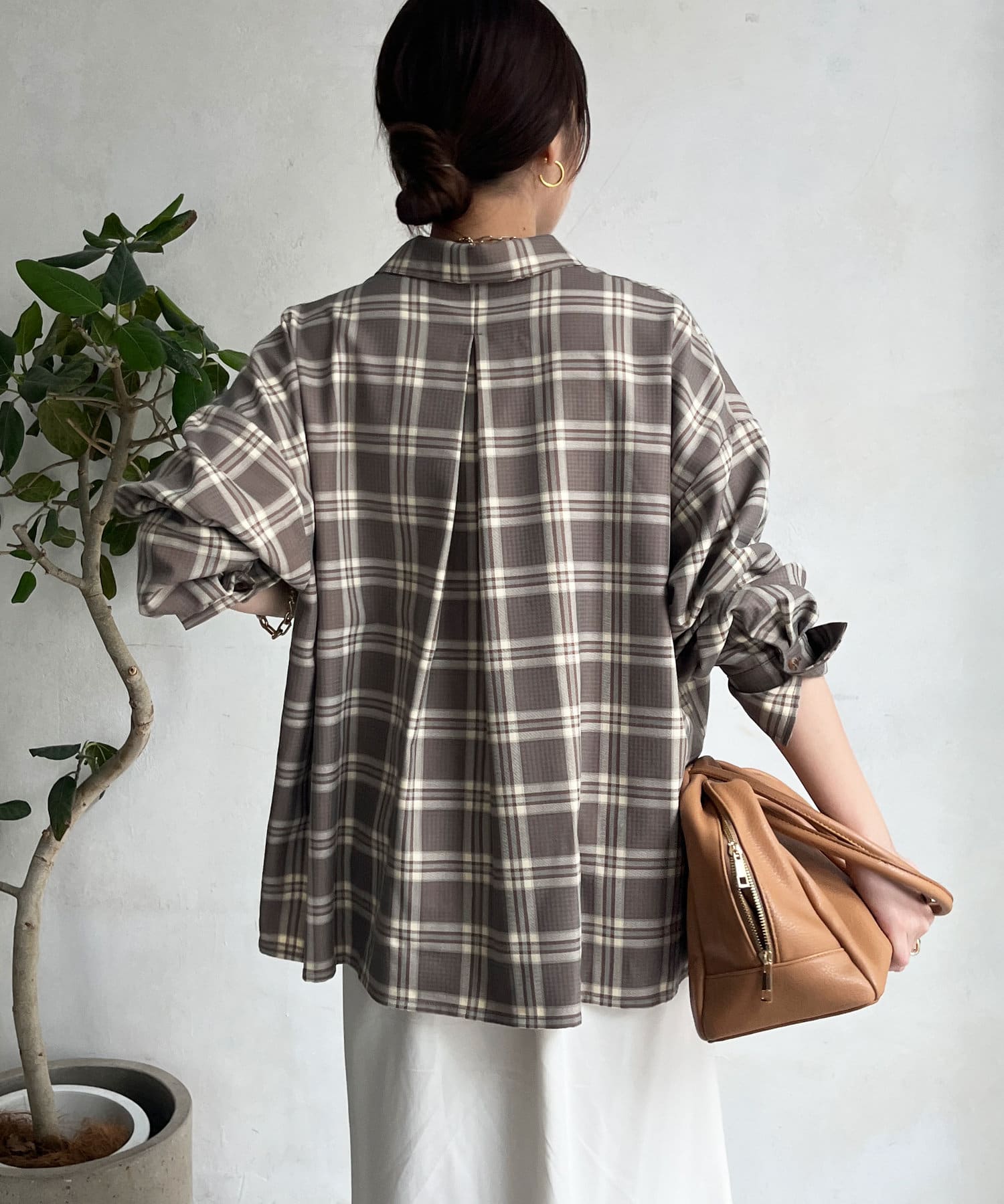 バックにタックを施すことで、裾に向かって自然と広がる余裕感のあるシルエットがおしゃれ見えするポイントに。