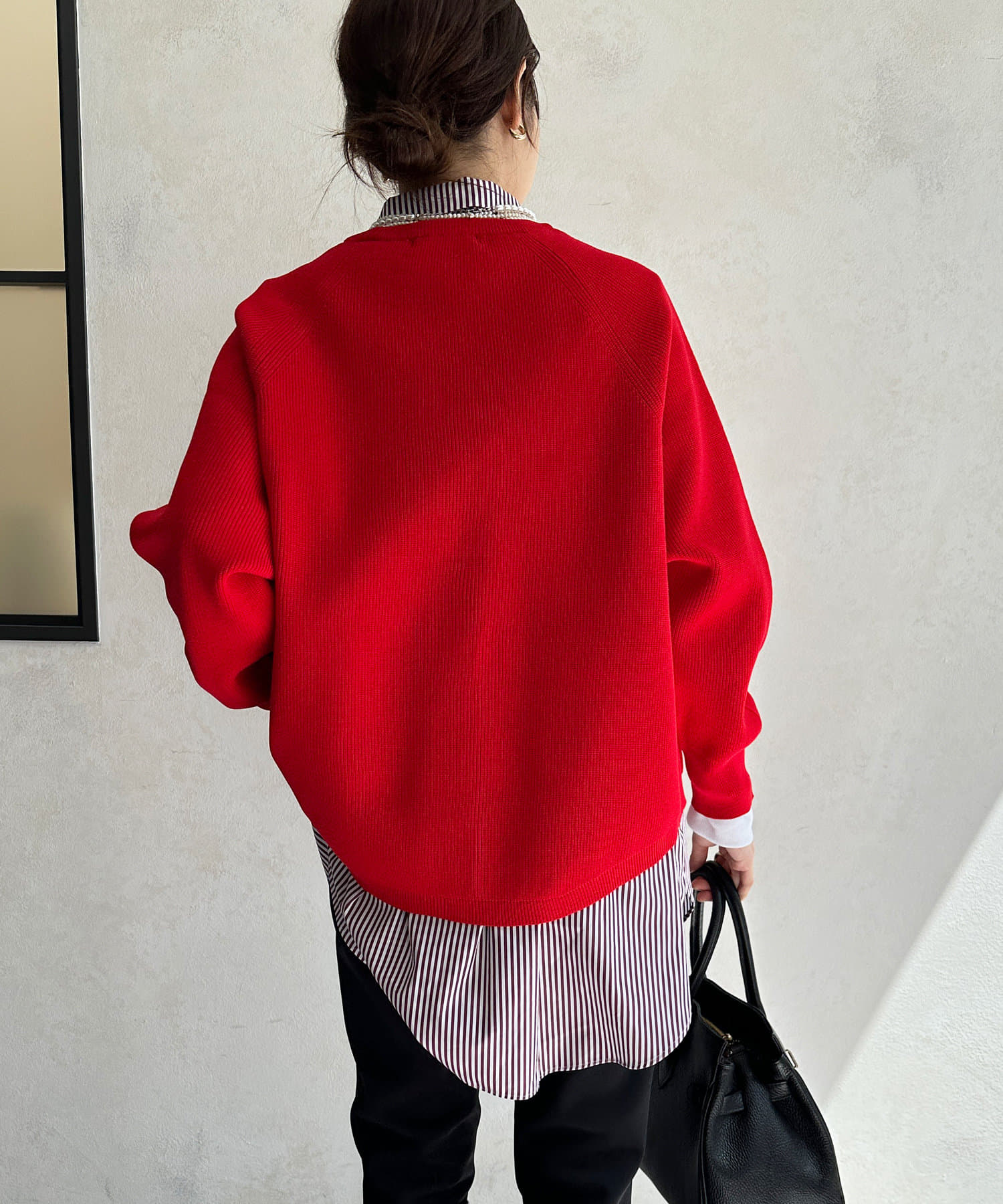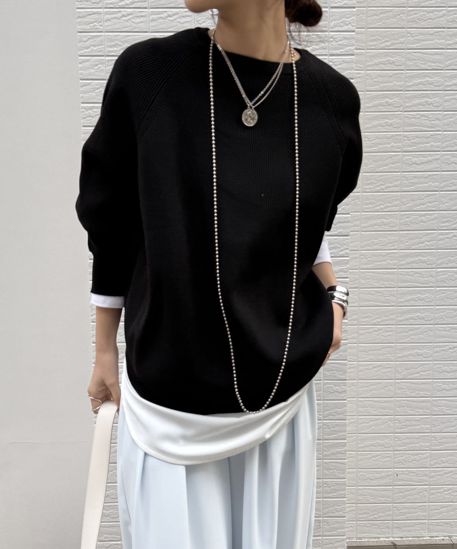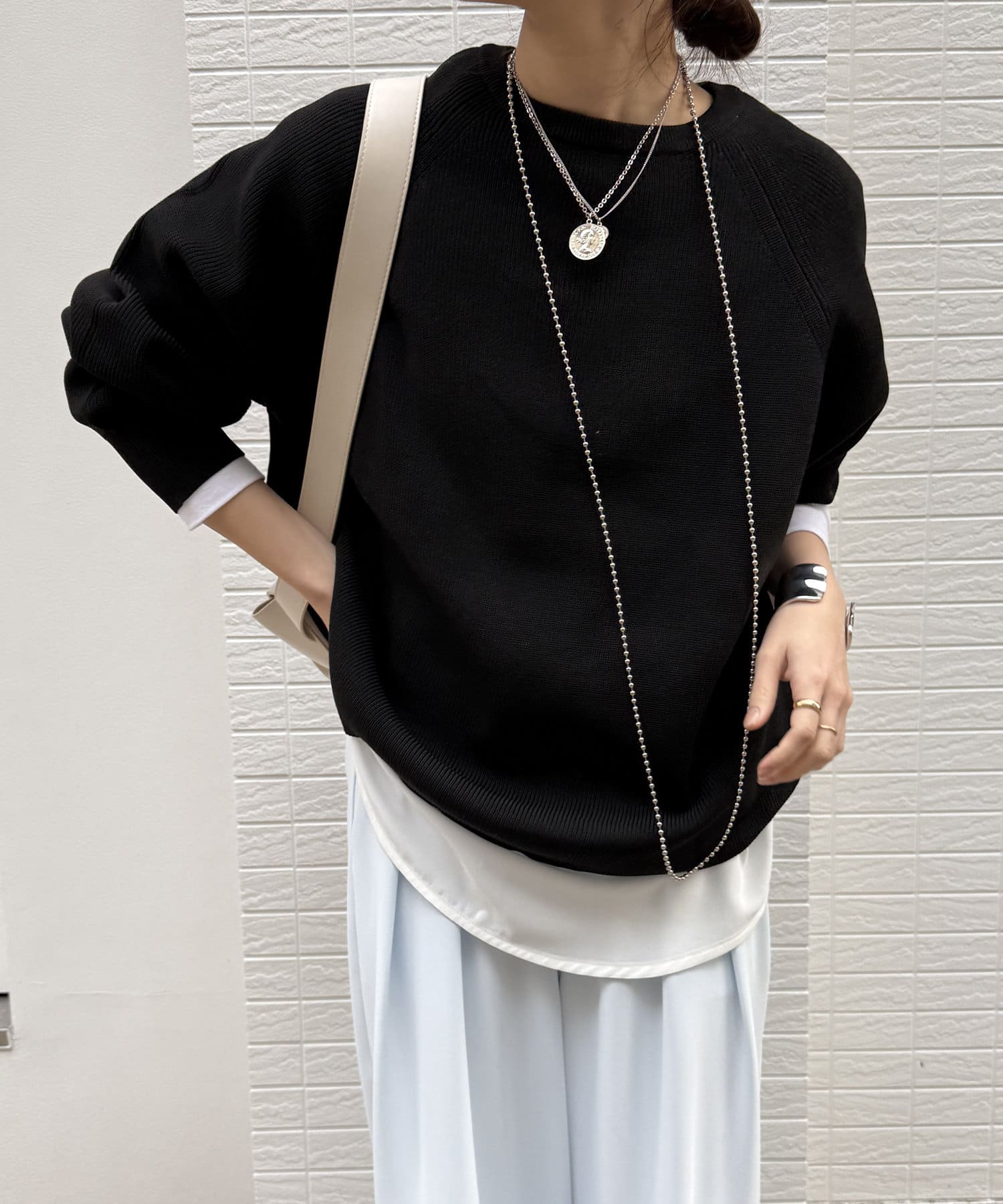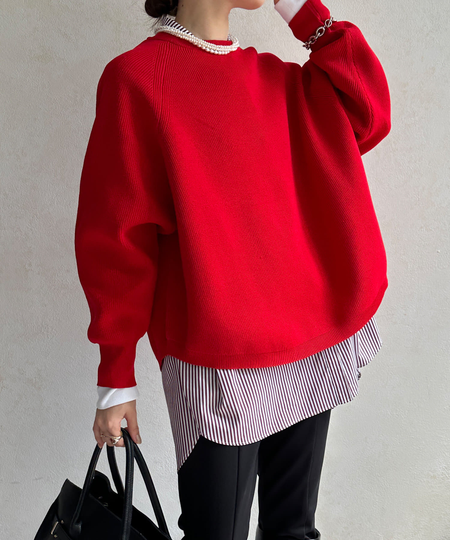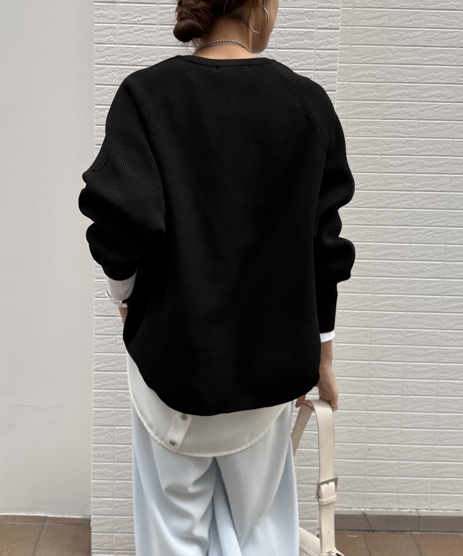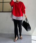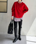 1枚で着るのはもちろん、シンプルなデザインを活かしてシャツや薄手のカットソーを重ねたレイヤードスタイルも素敵ですよ。