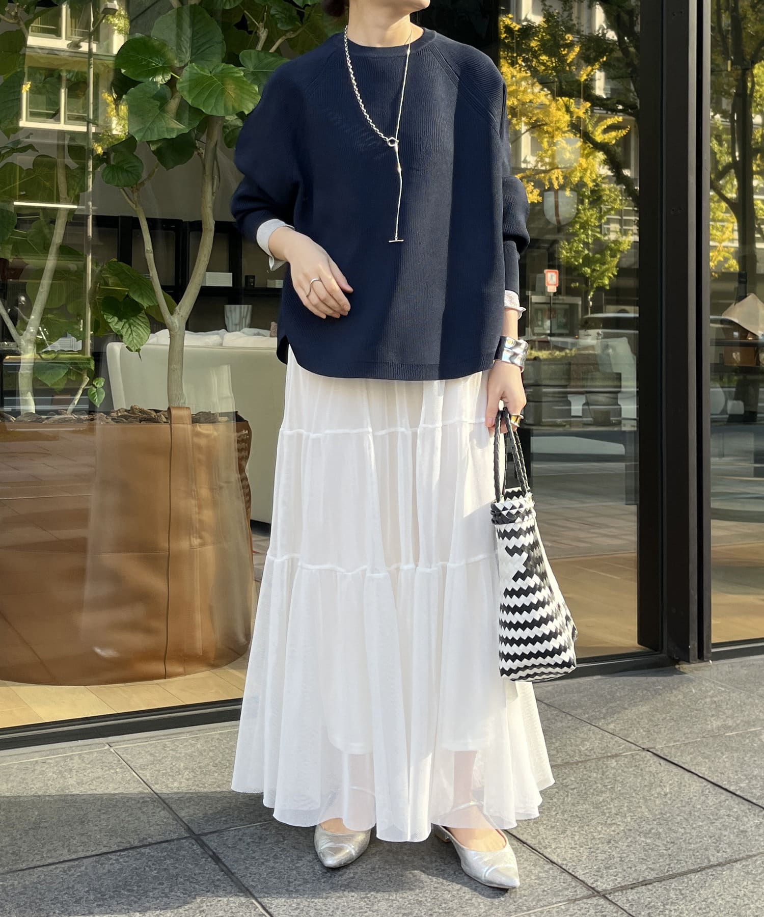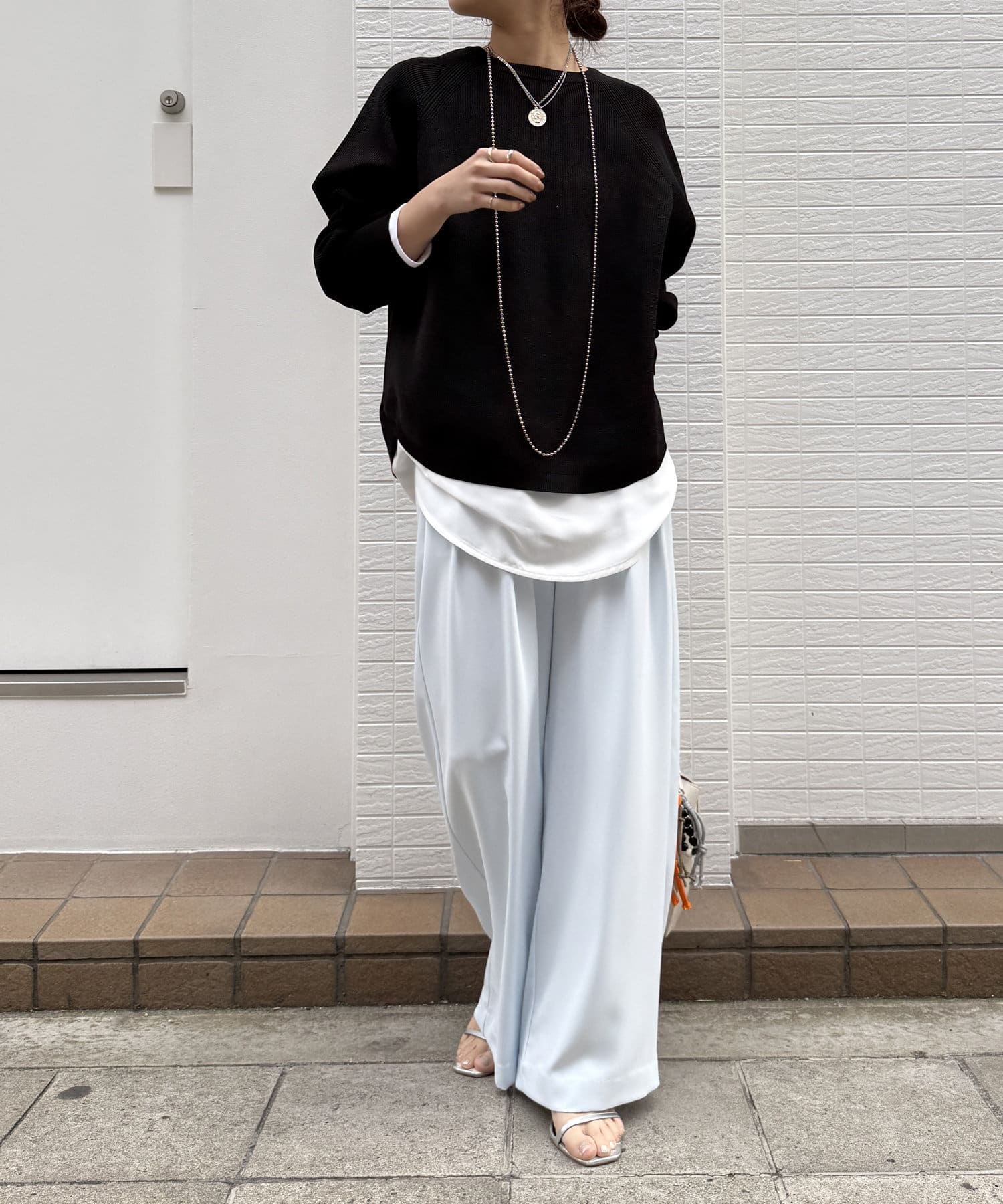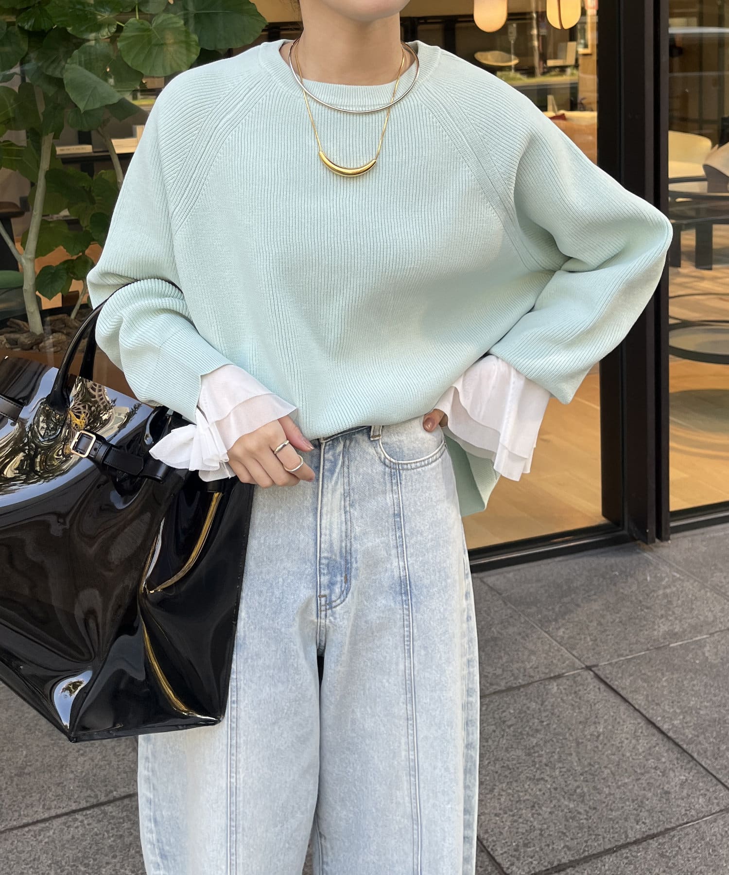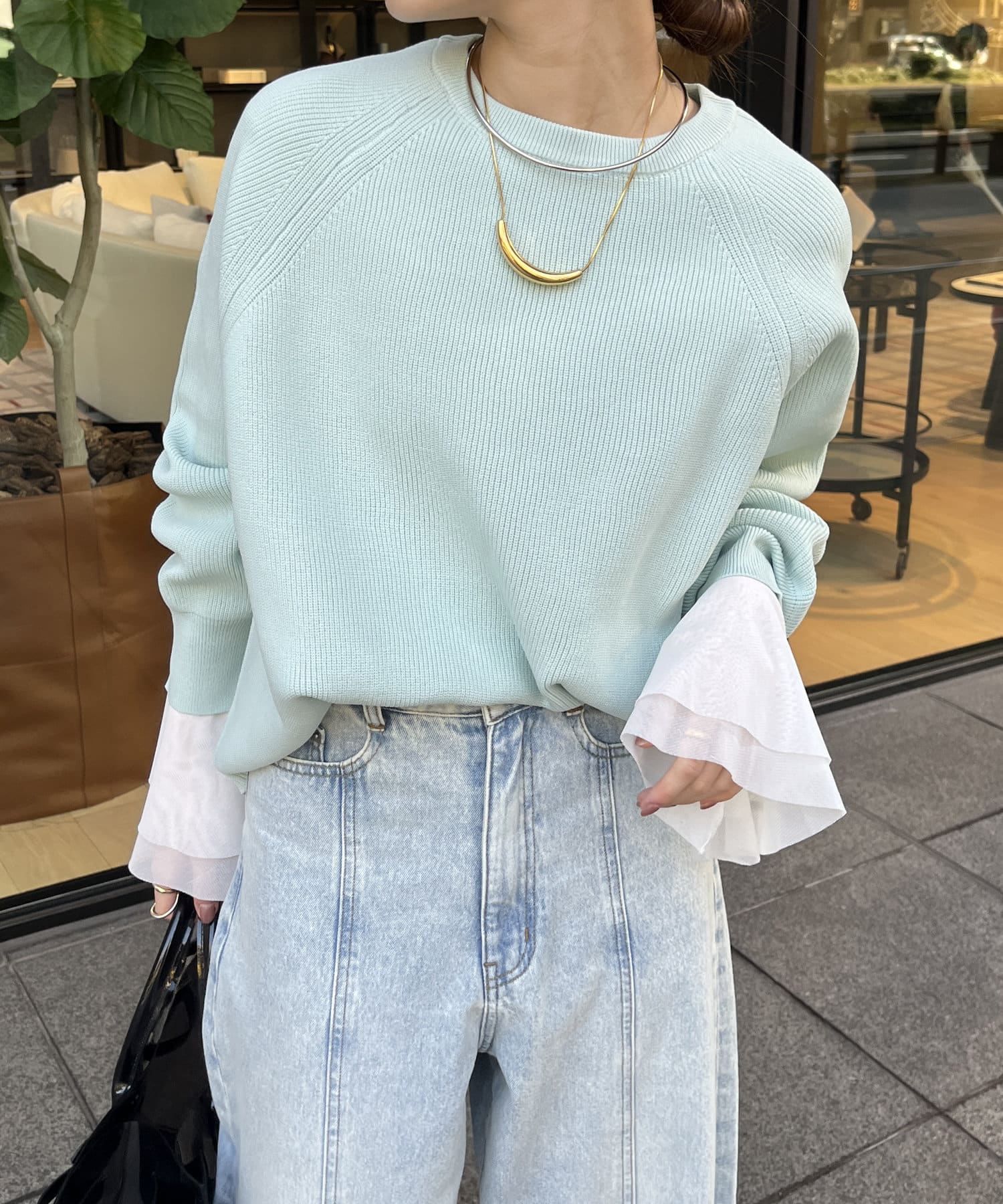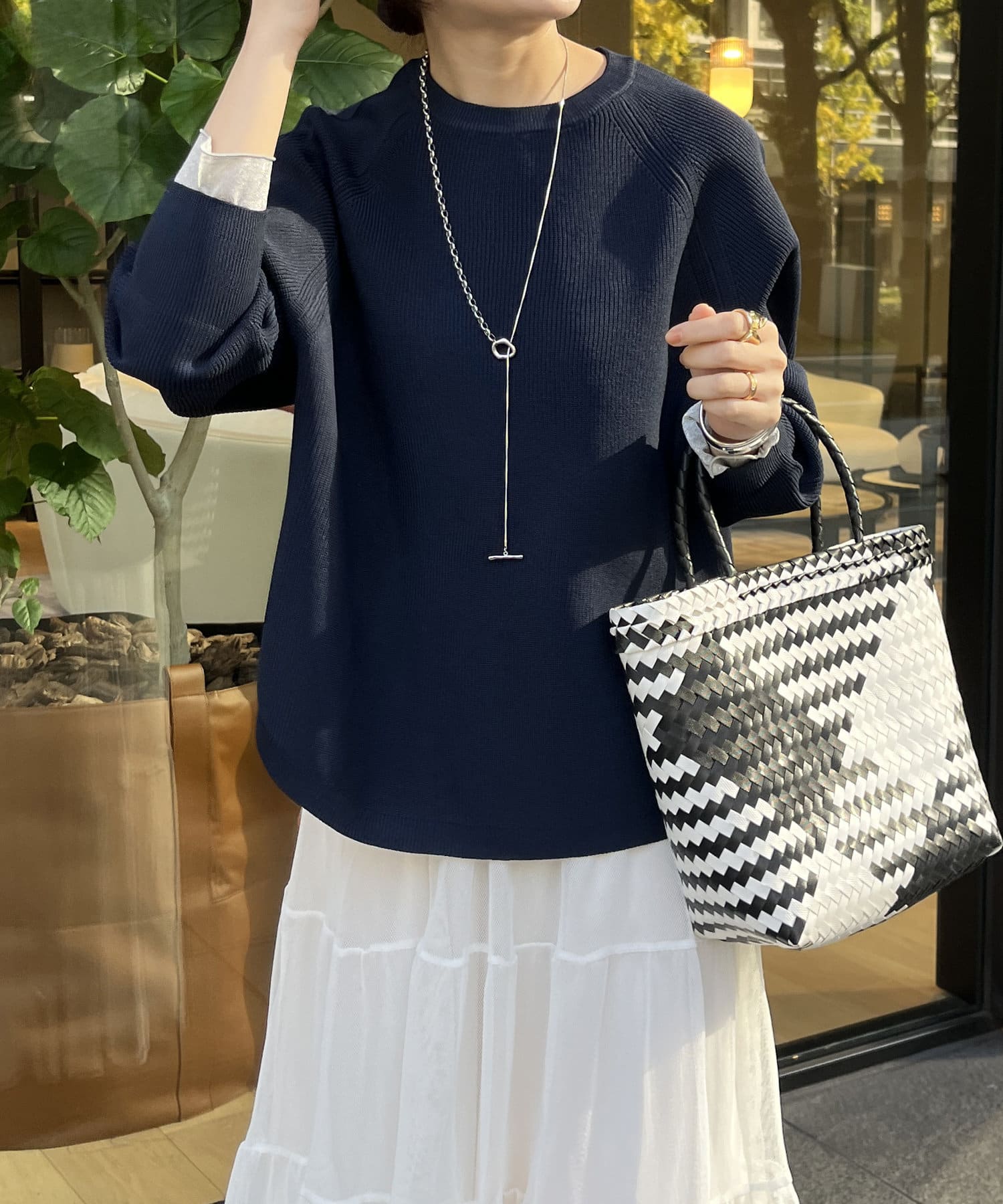 1枚で着るのはもちろん、シンプルなデザインを活かしてシャツや薄手のカットソーを重ねたレイヤードスタイルも素敵ですよ。