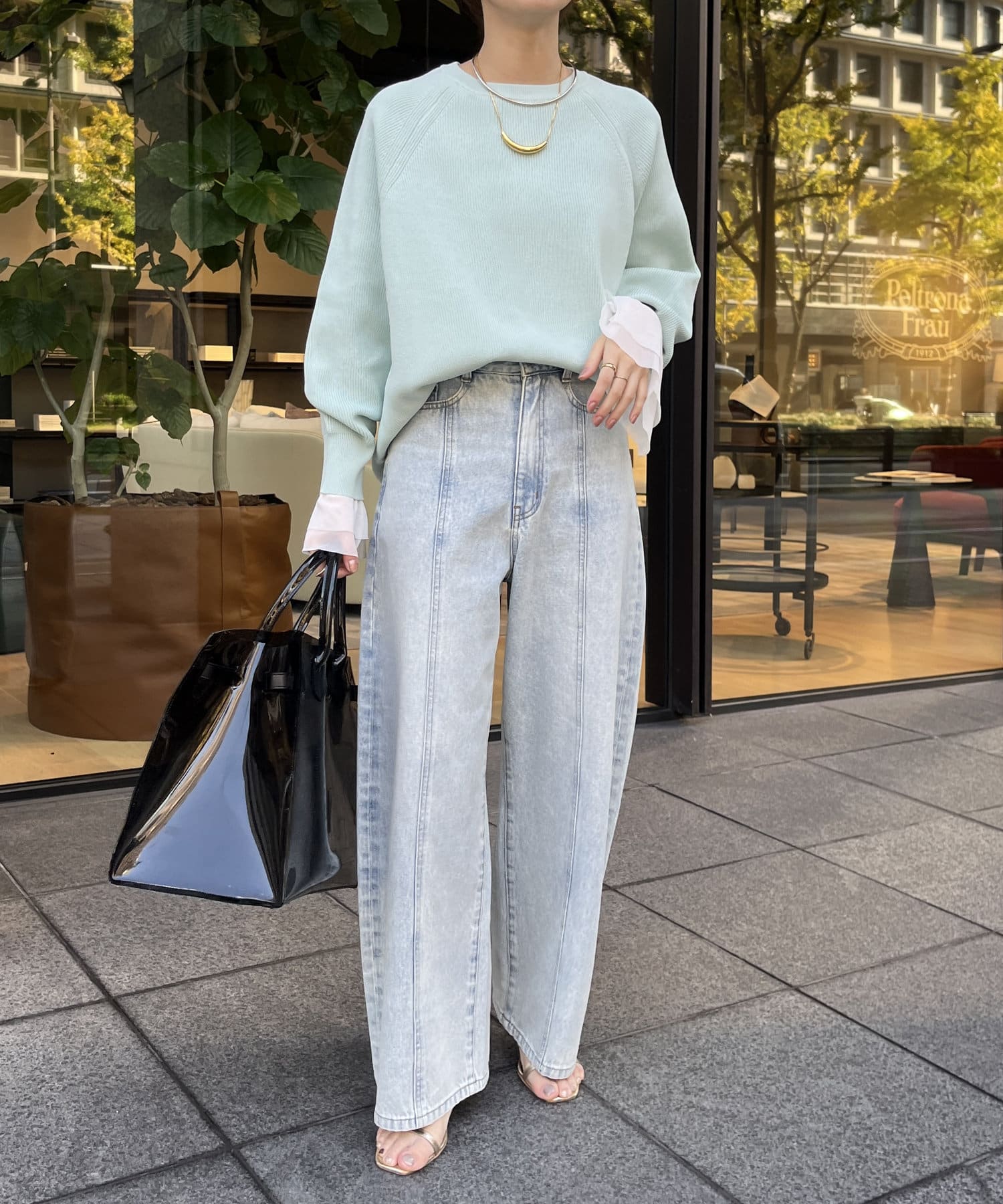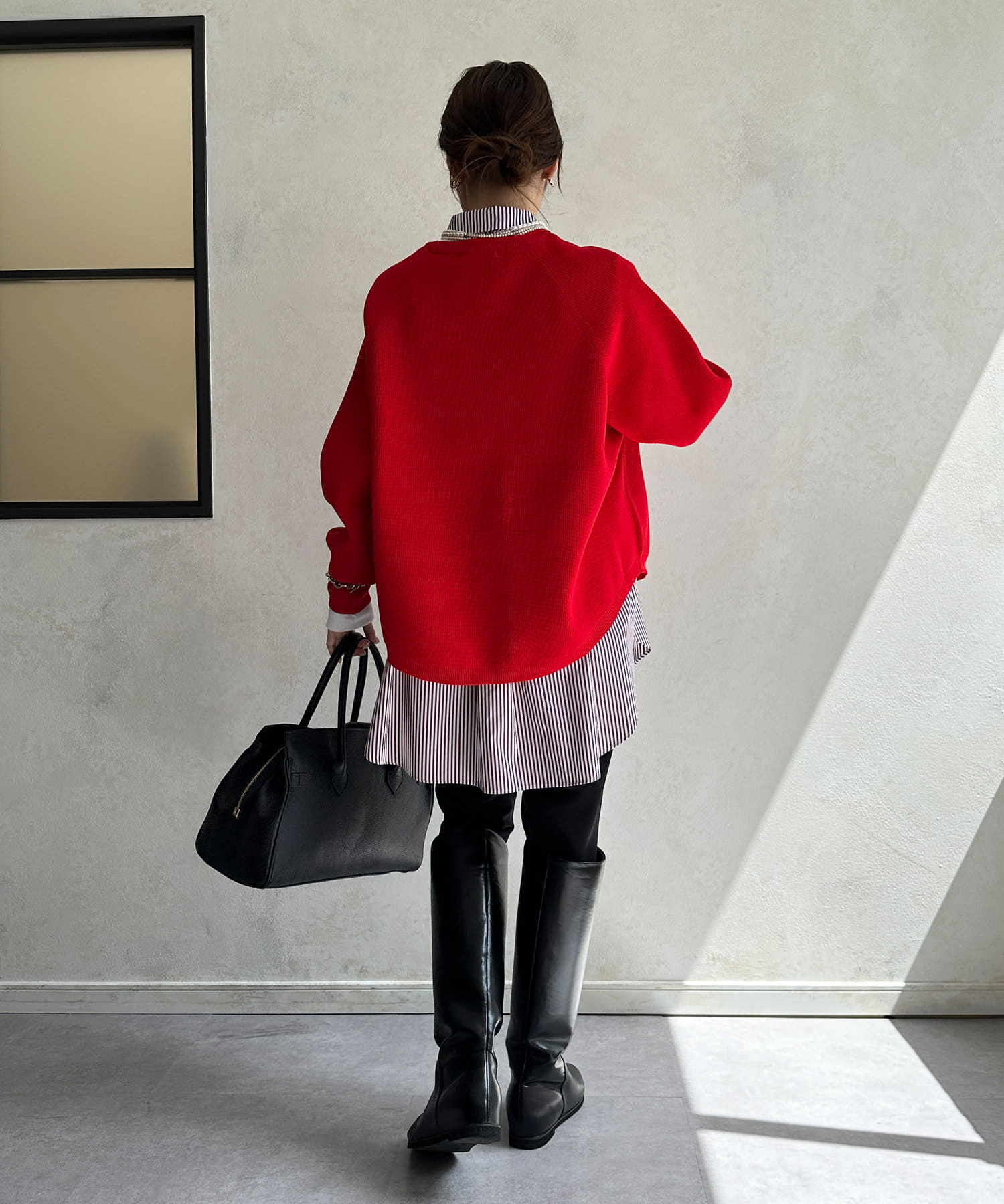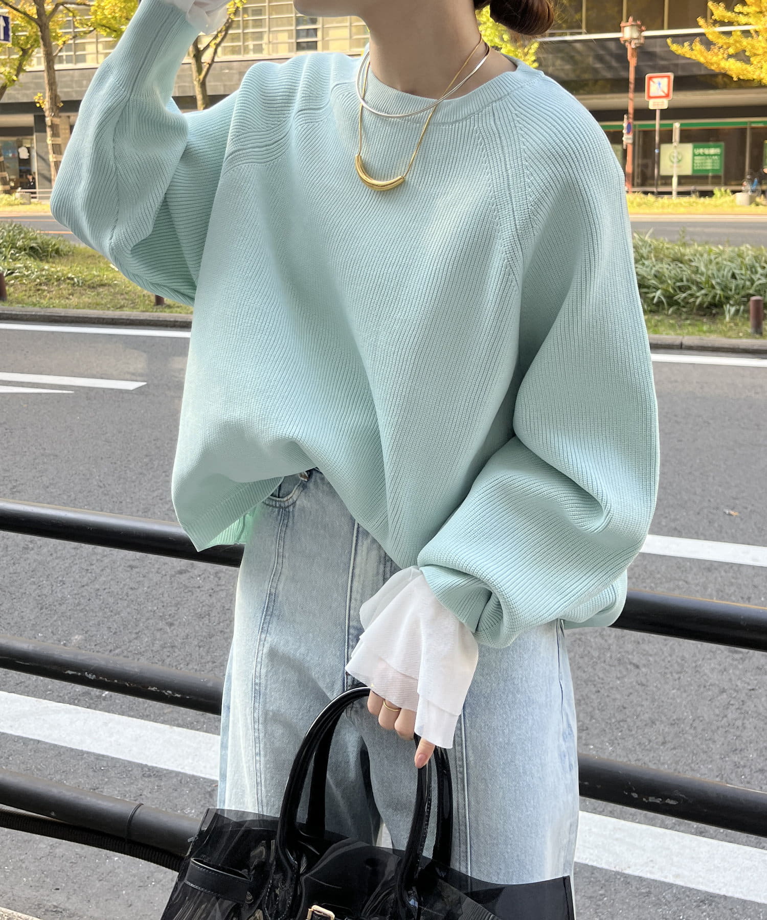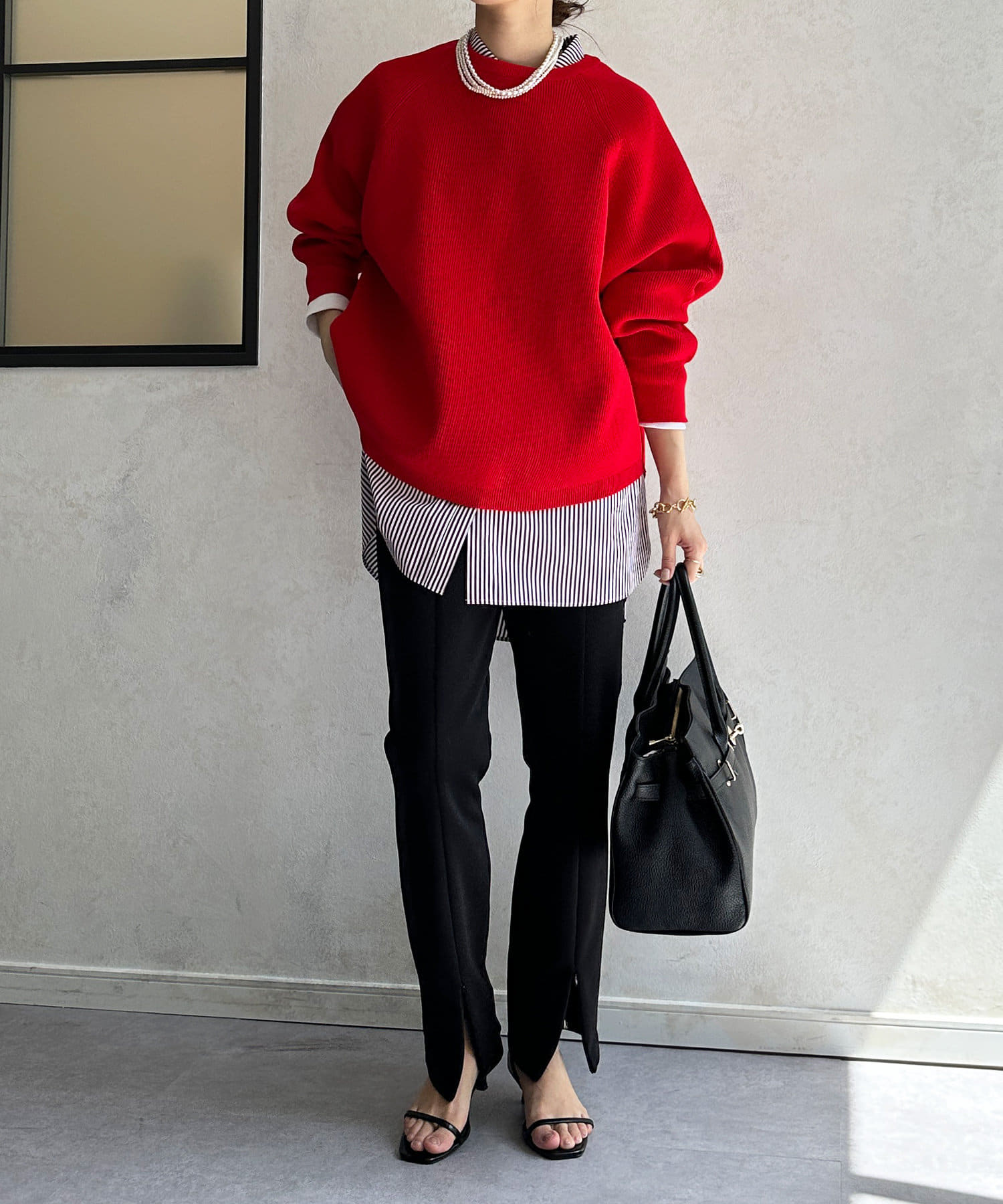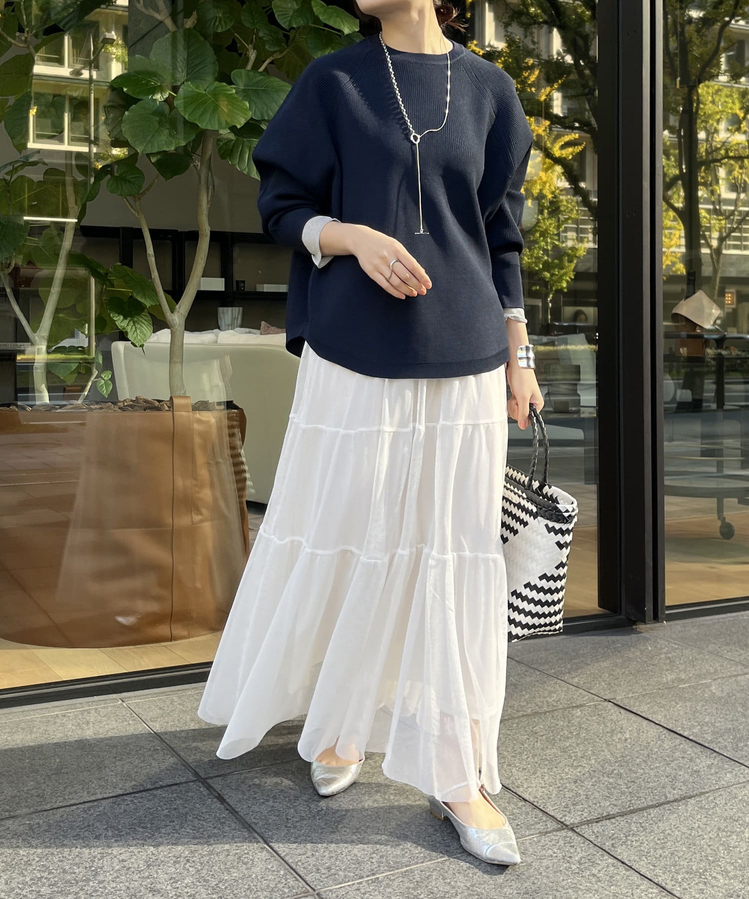1枚で着るのはもちろん、シンプルなデザインを活かしてシャツや薄手のカットソーを重ねたレイヤードスタイルも素敵ですよ。