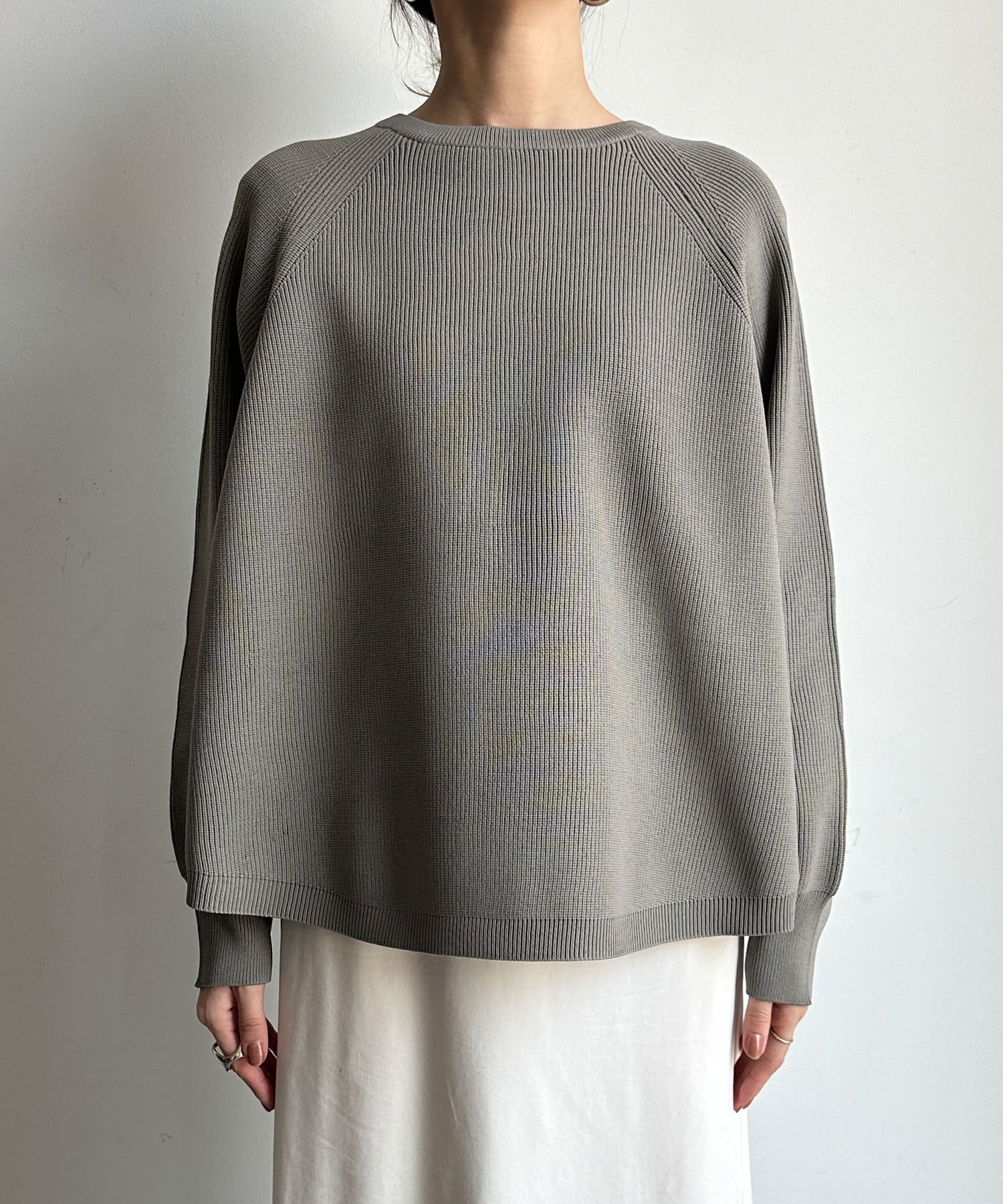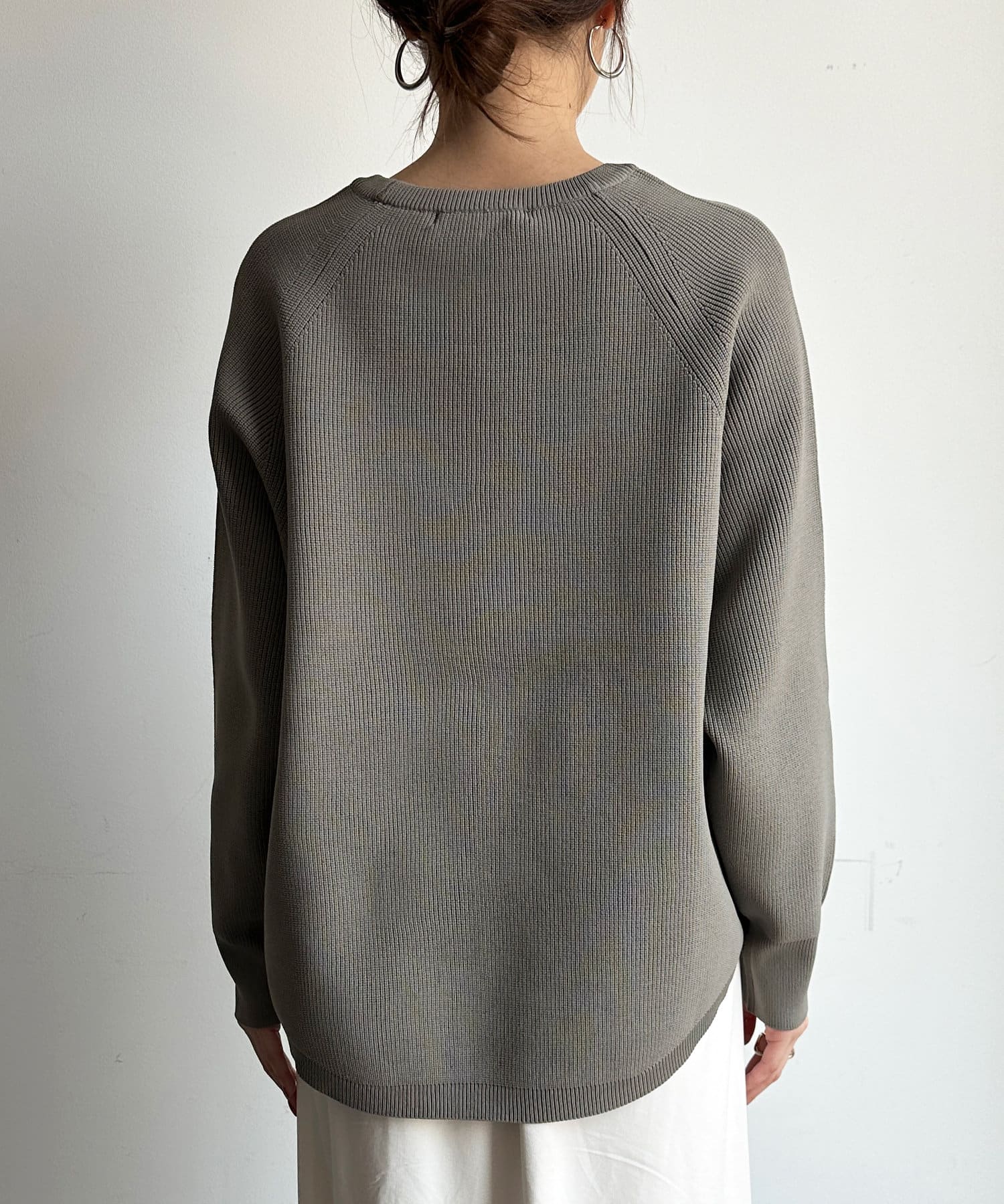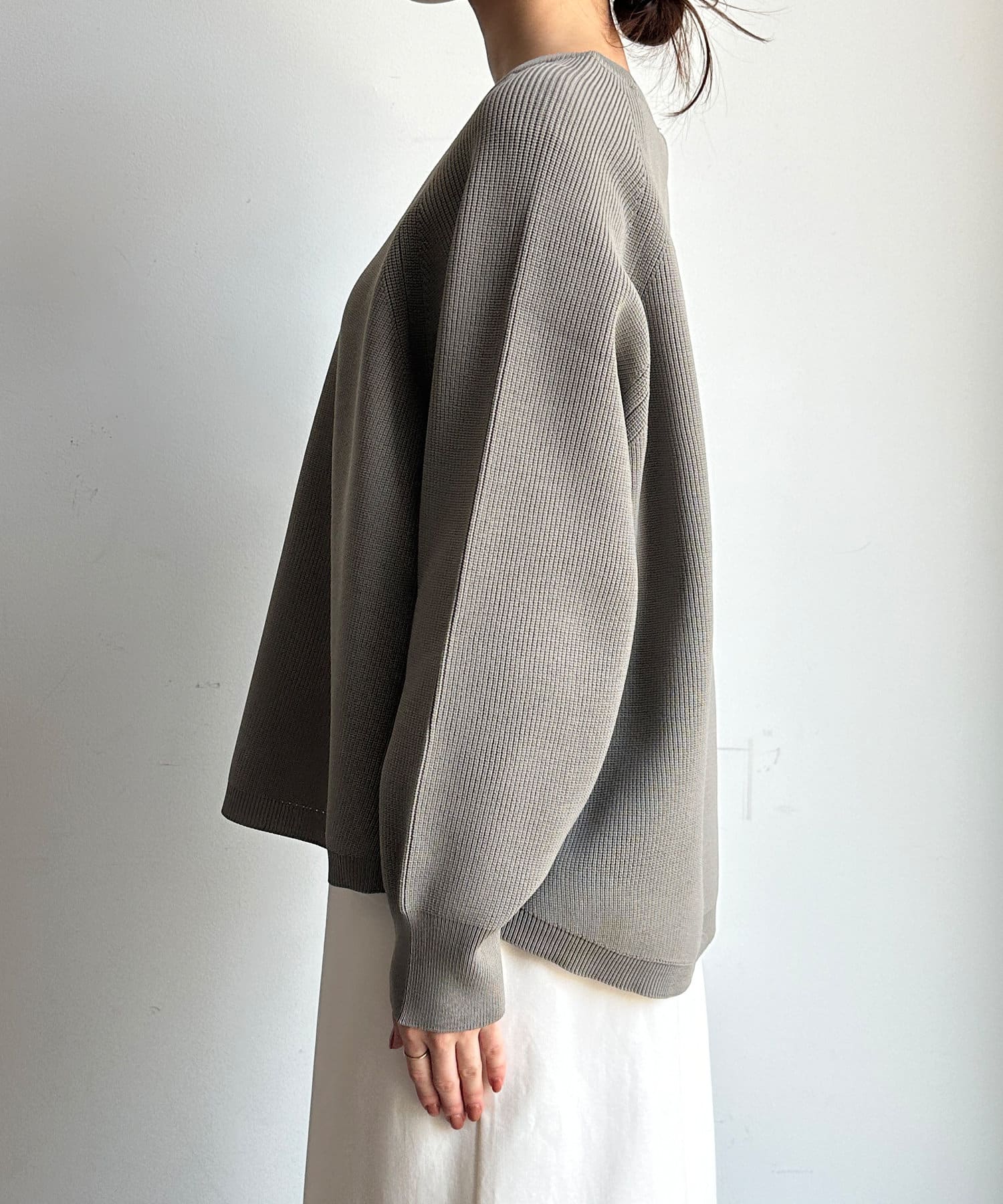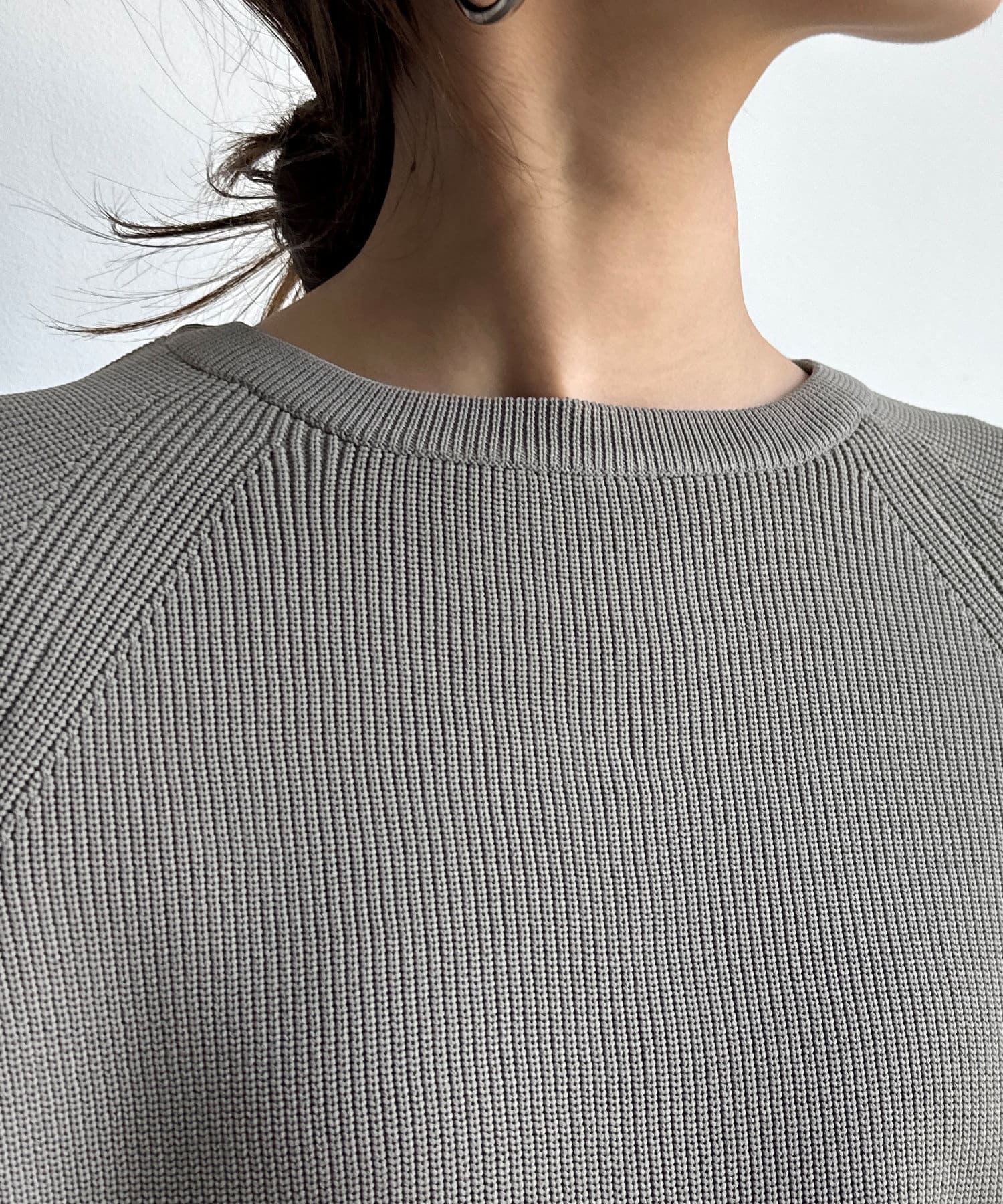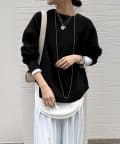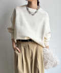 軽やかな着心地とチクチク感ない素材が魅力のニット。