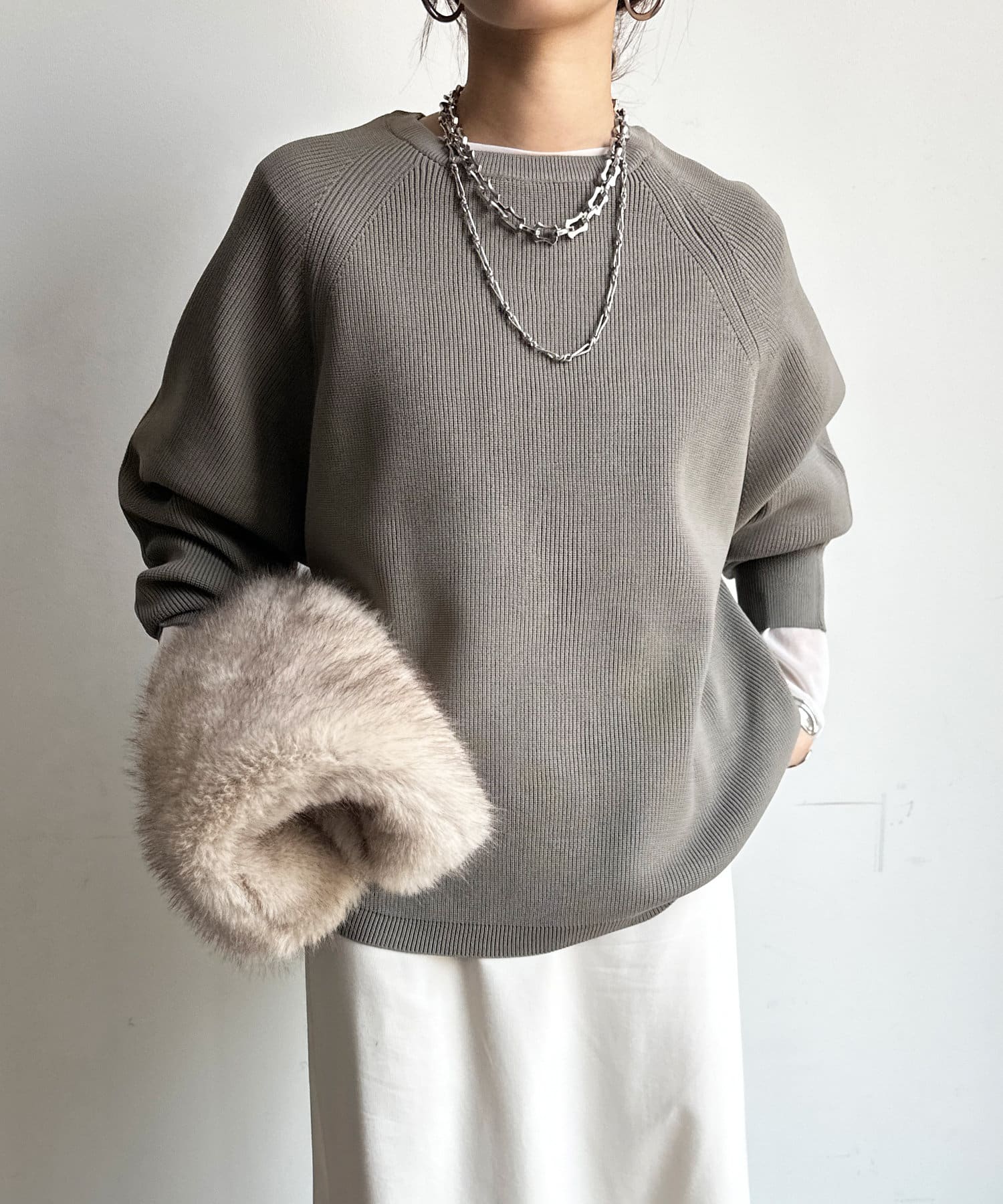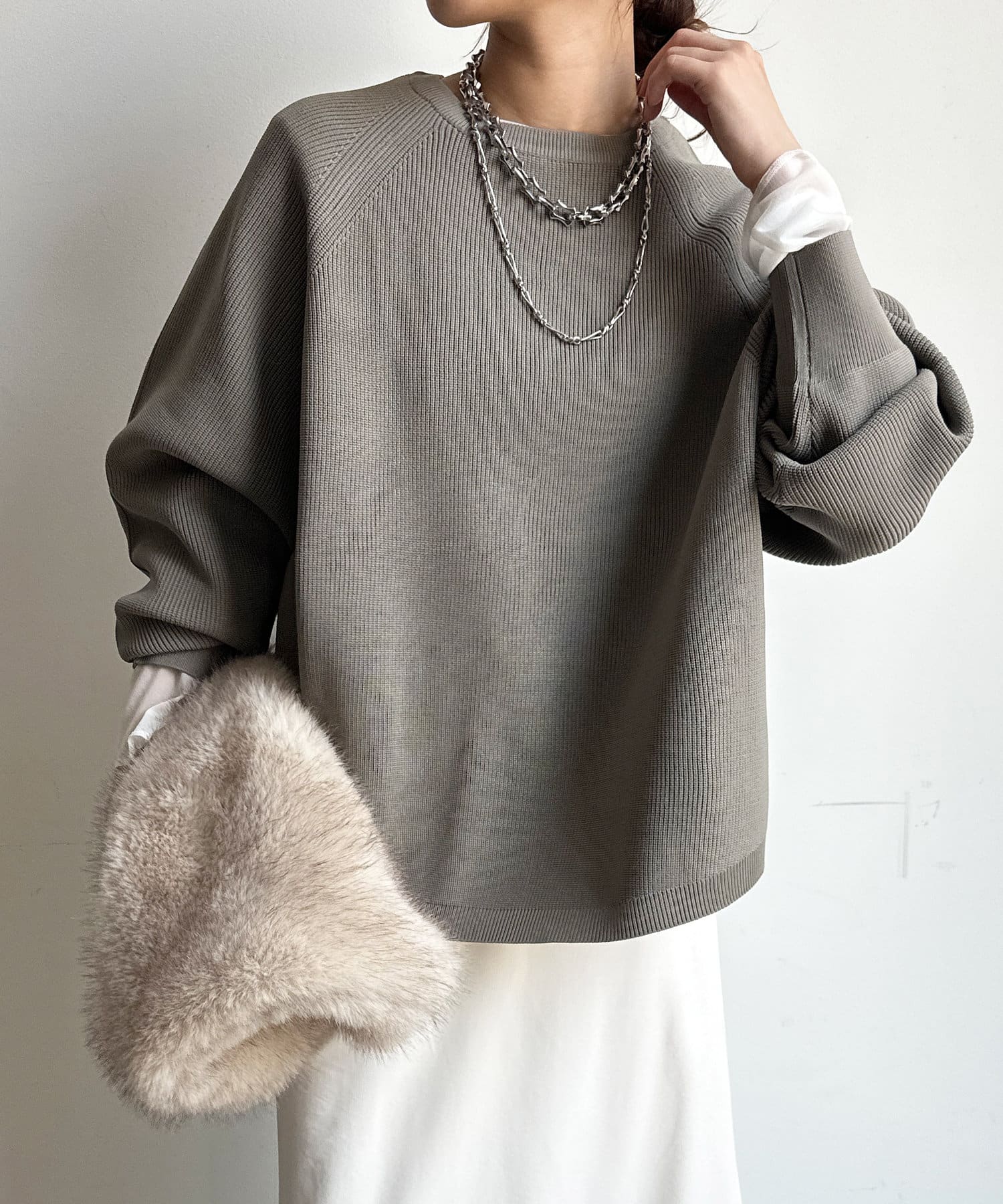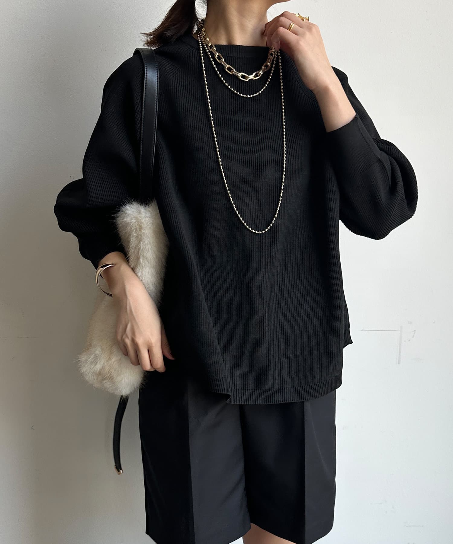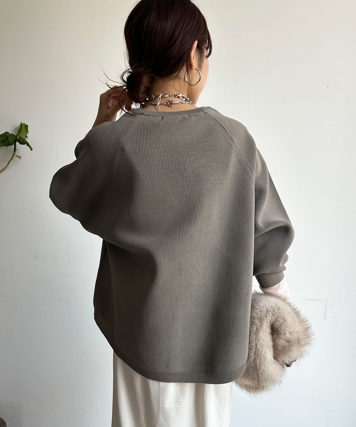 軽やかな着心地とチクチク感ない素材が魅力のニット。