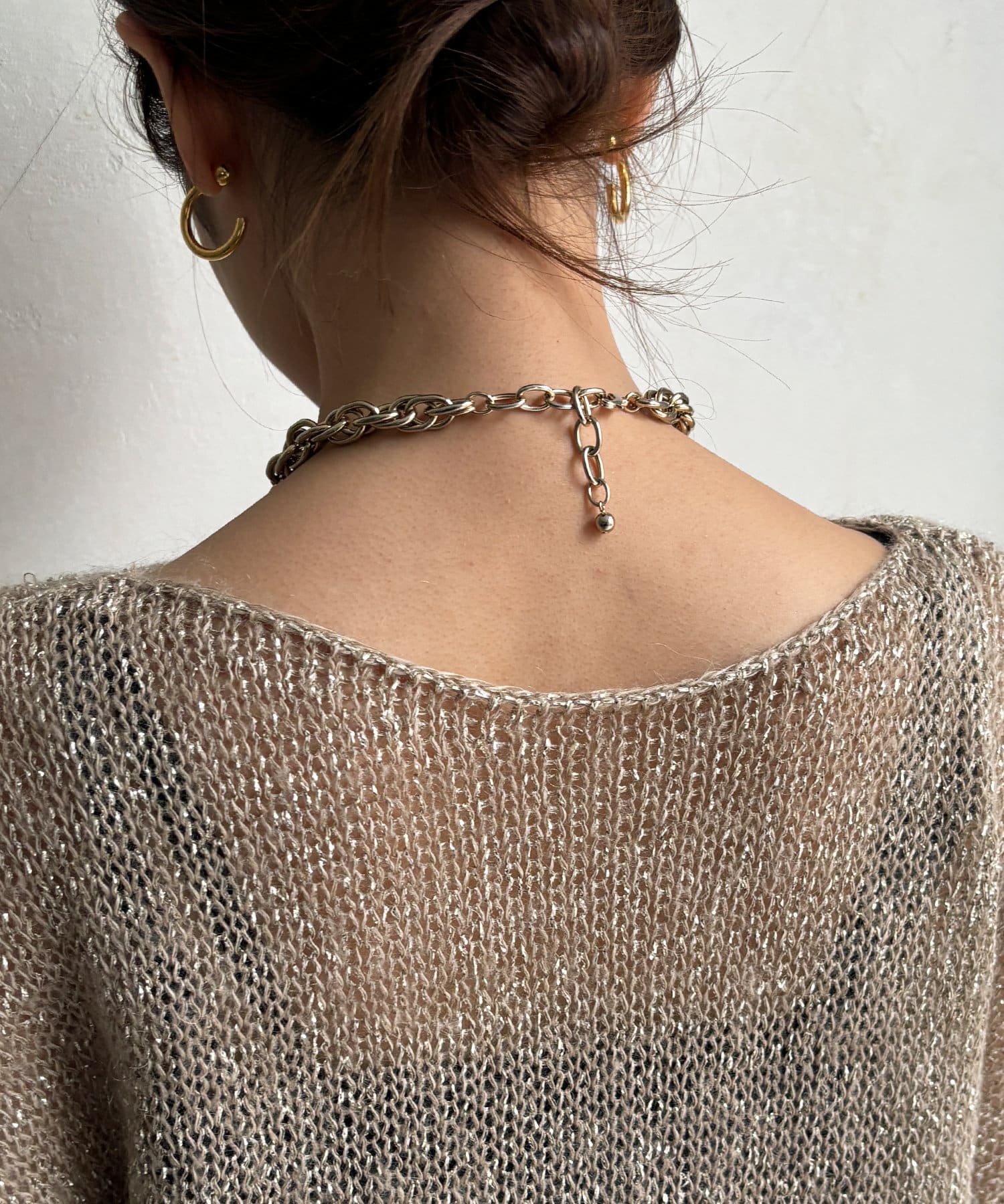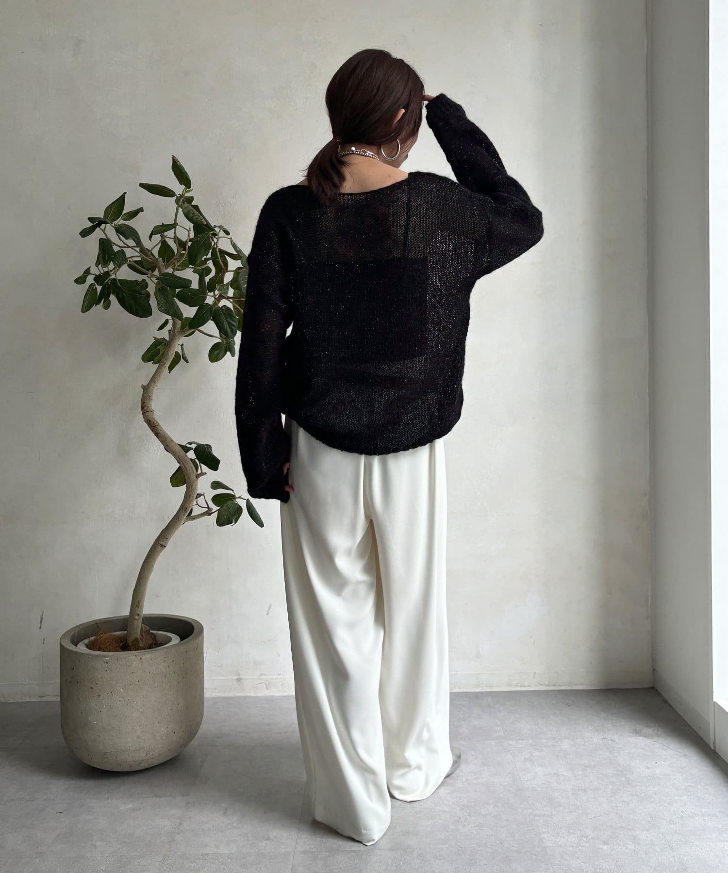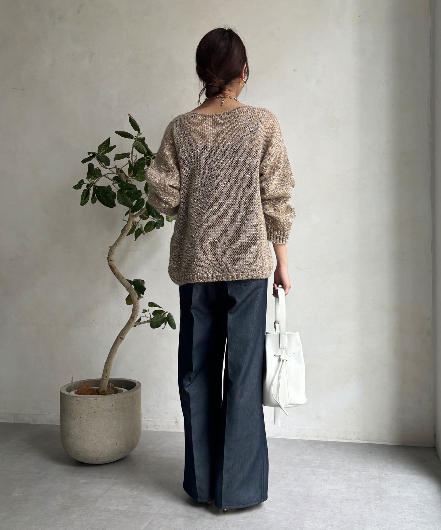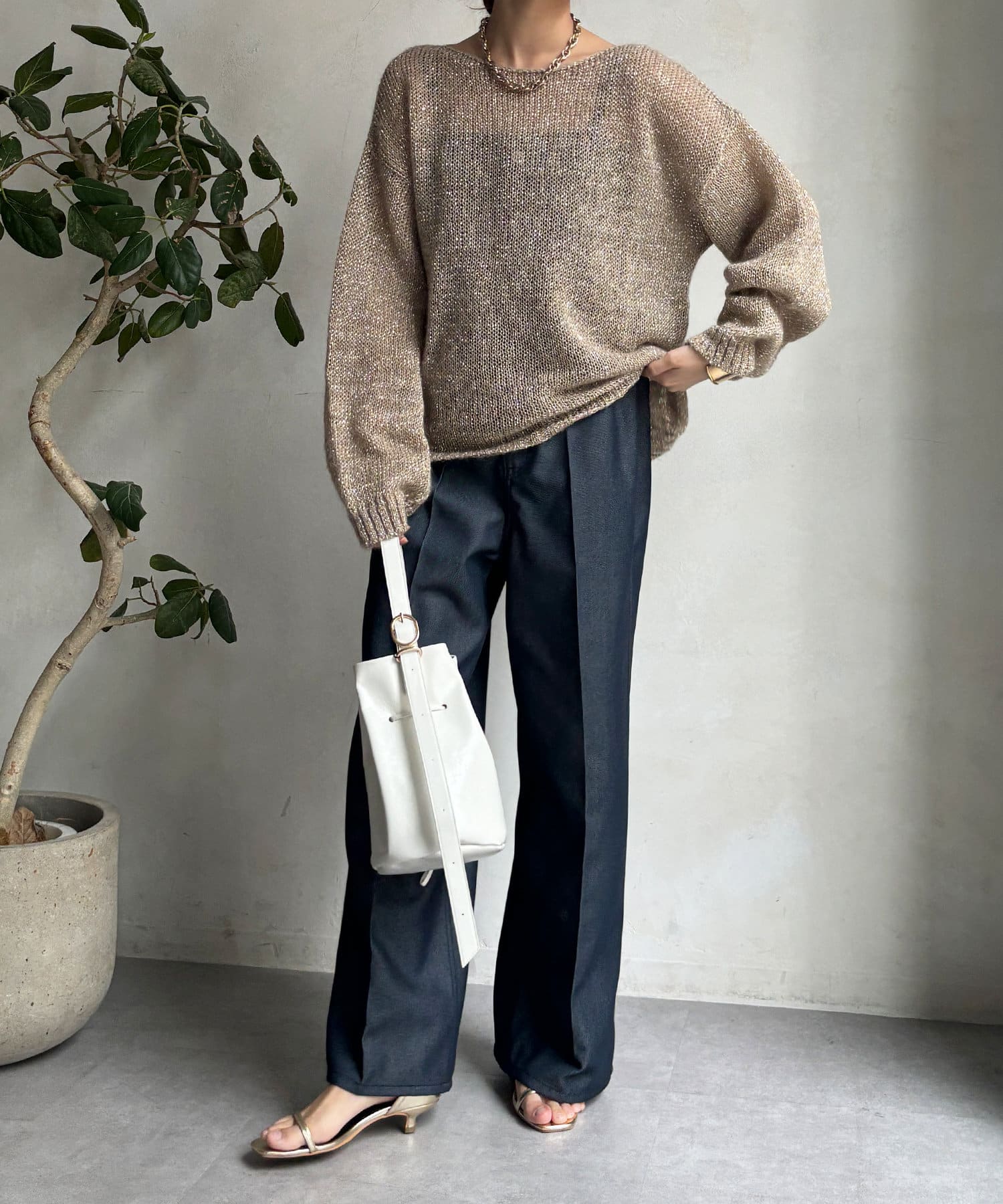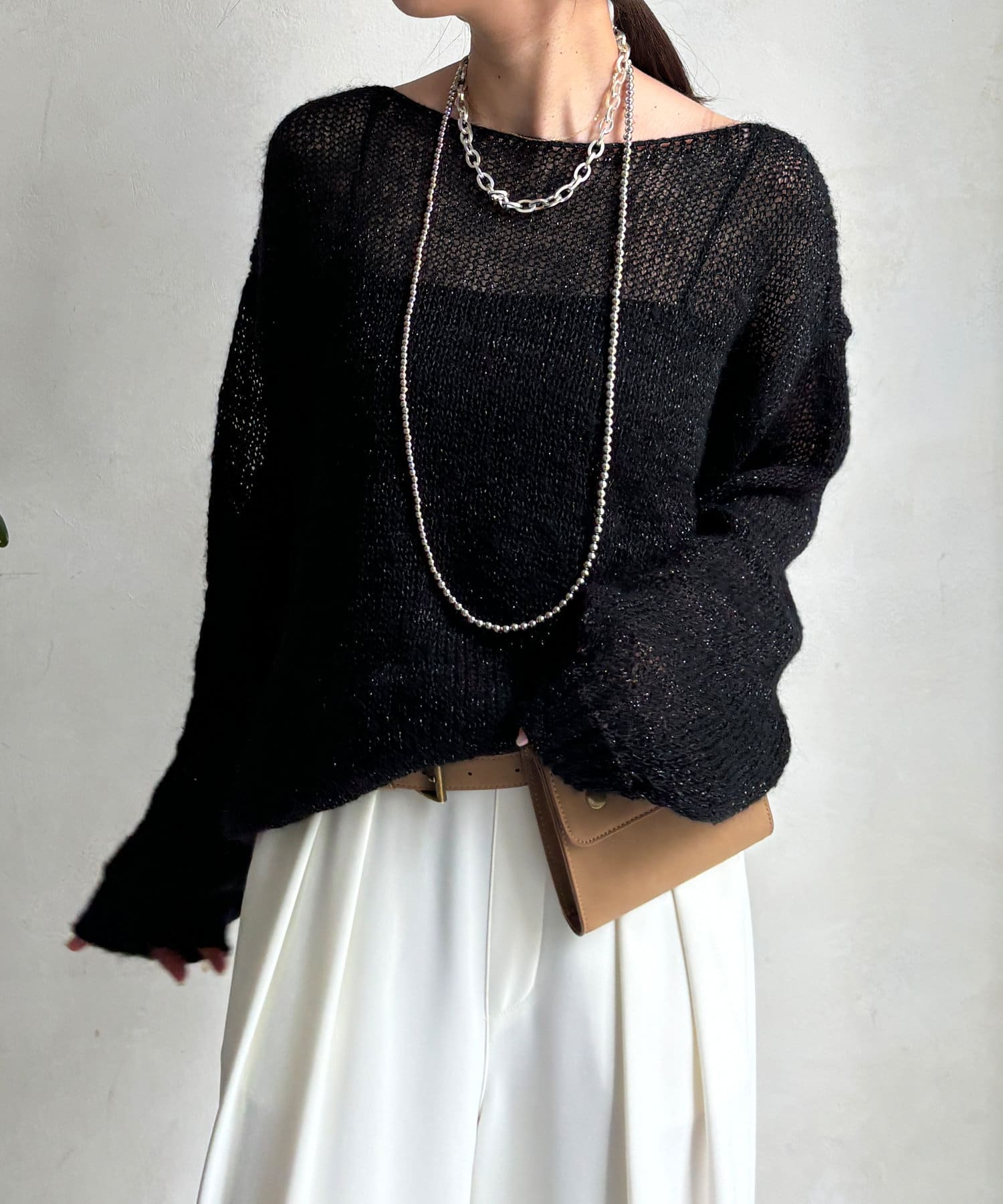 程よいラメ感が派手になりすぎず、日頃のスタイリングのワンポイントとして着ていただける1着です。