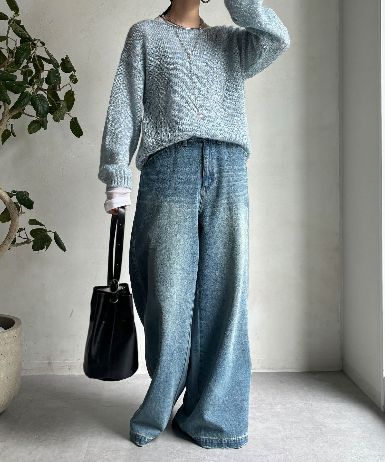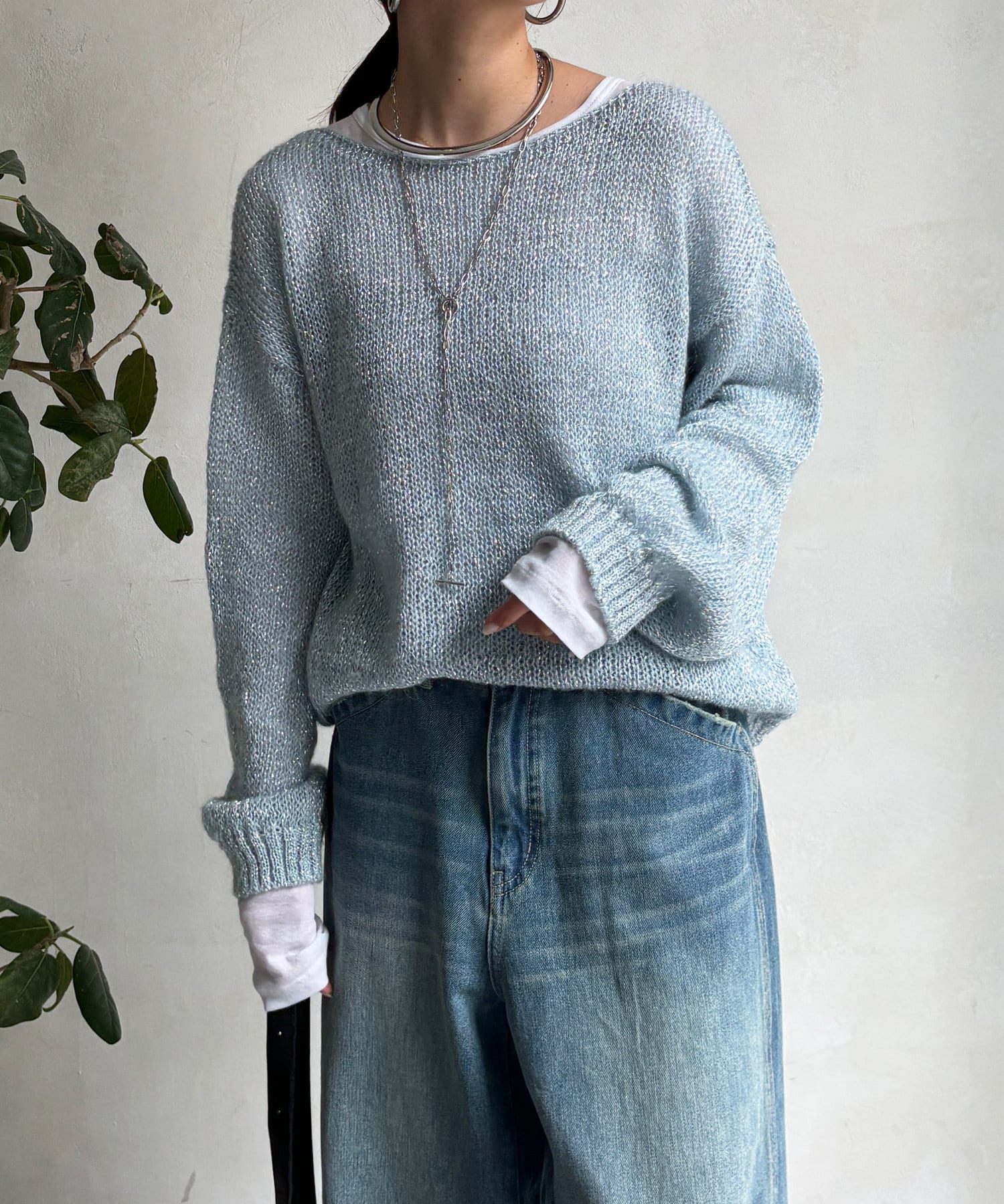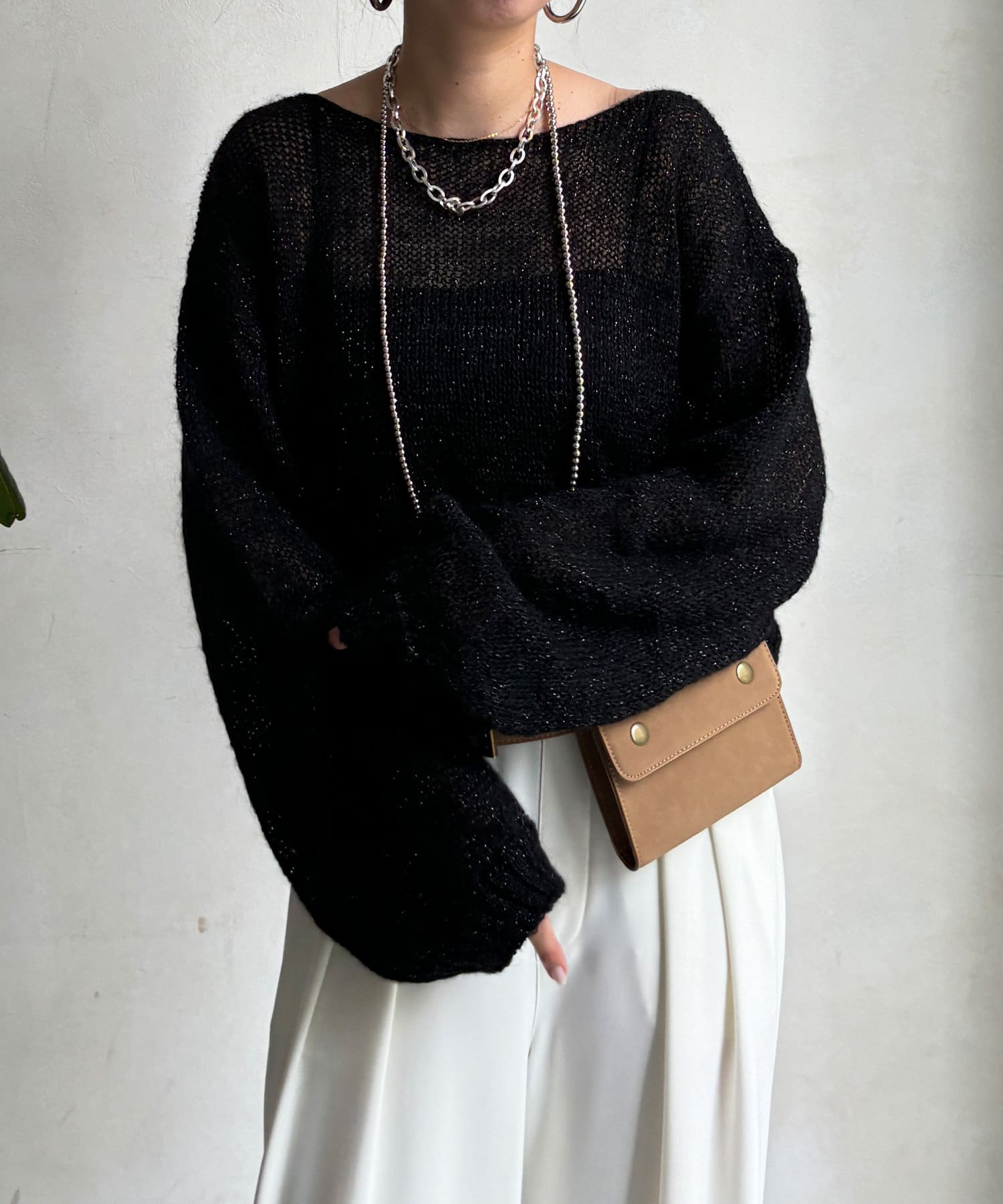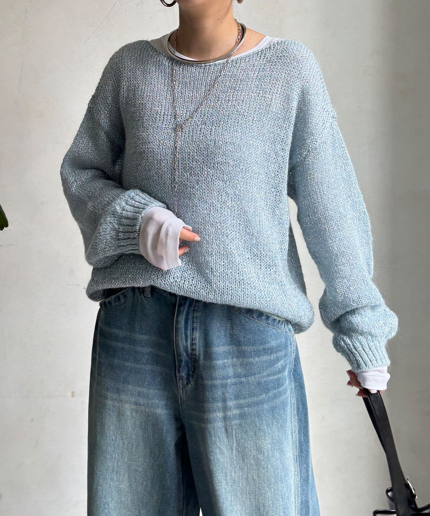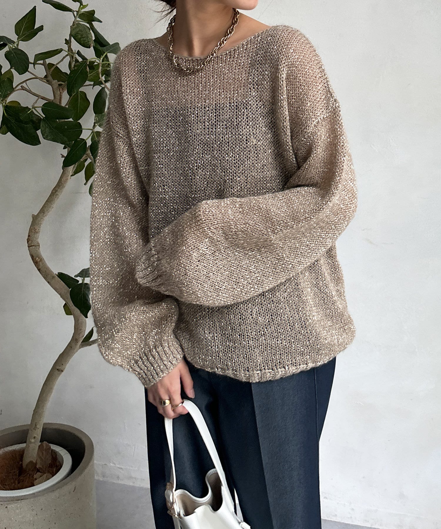 女性らしく華やかさのあるラメを施したモヘヤプルオーバー!