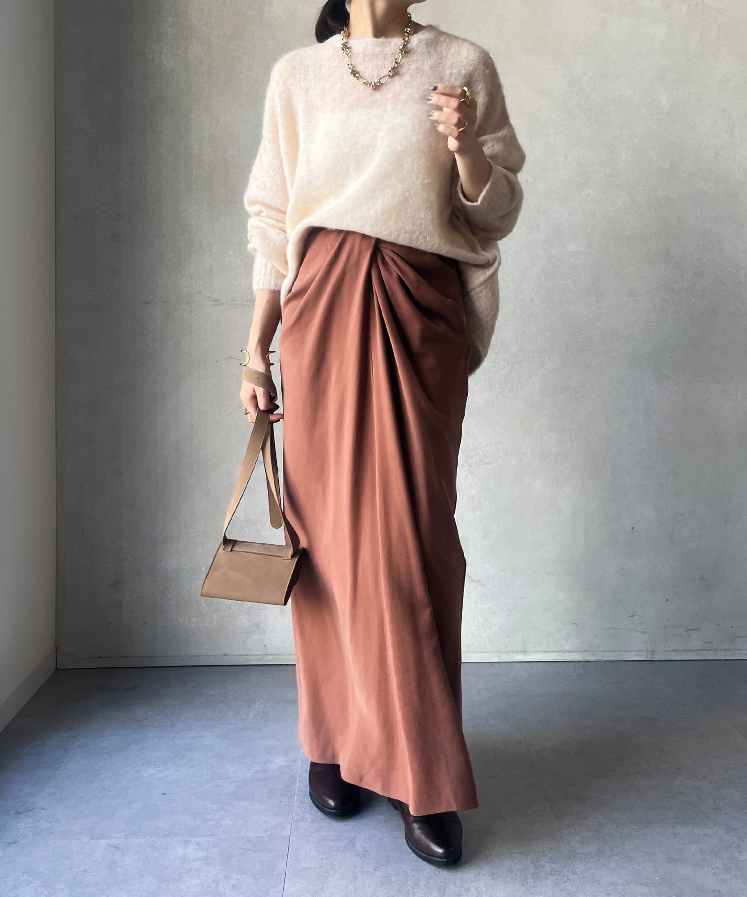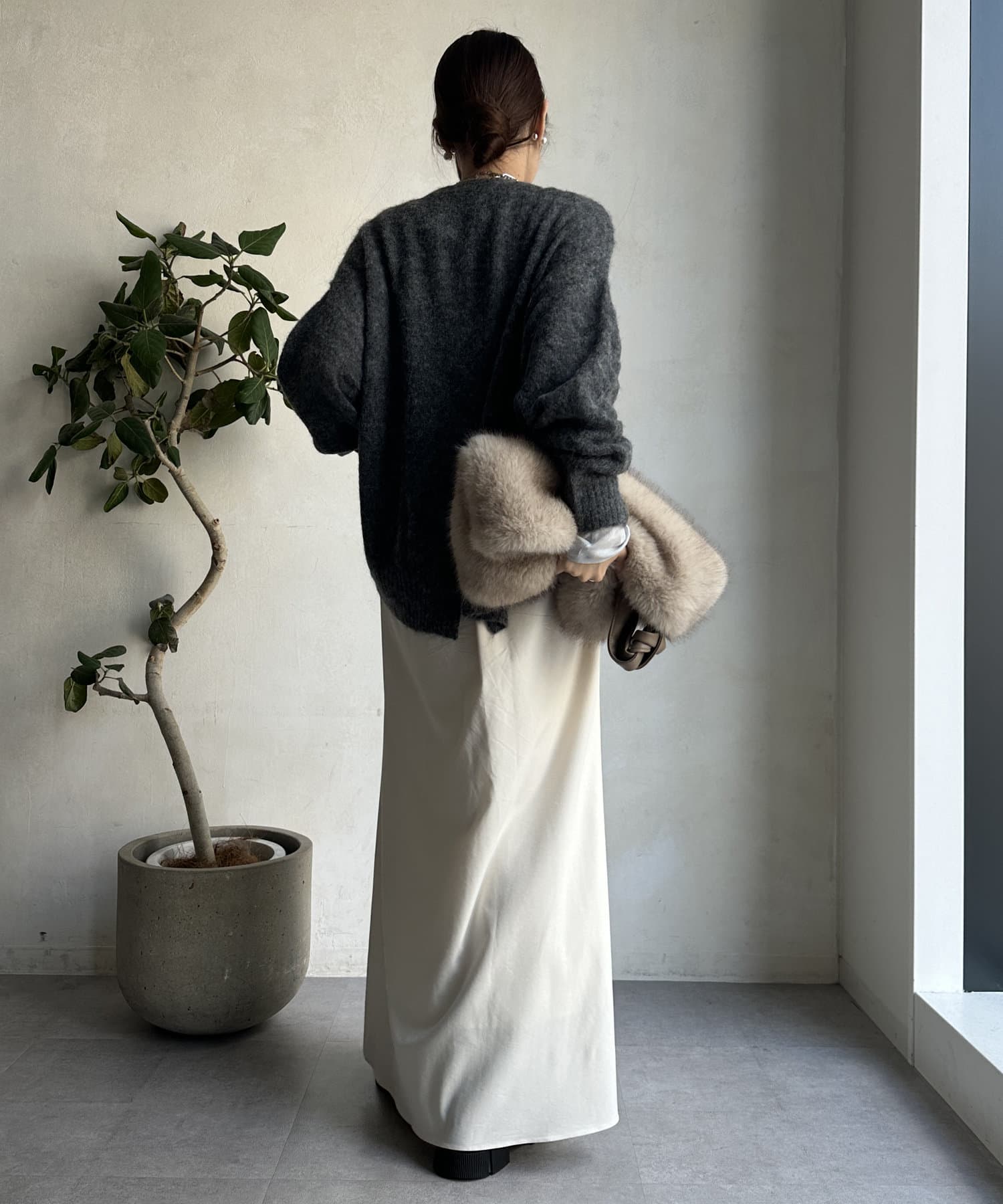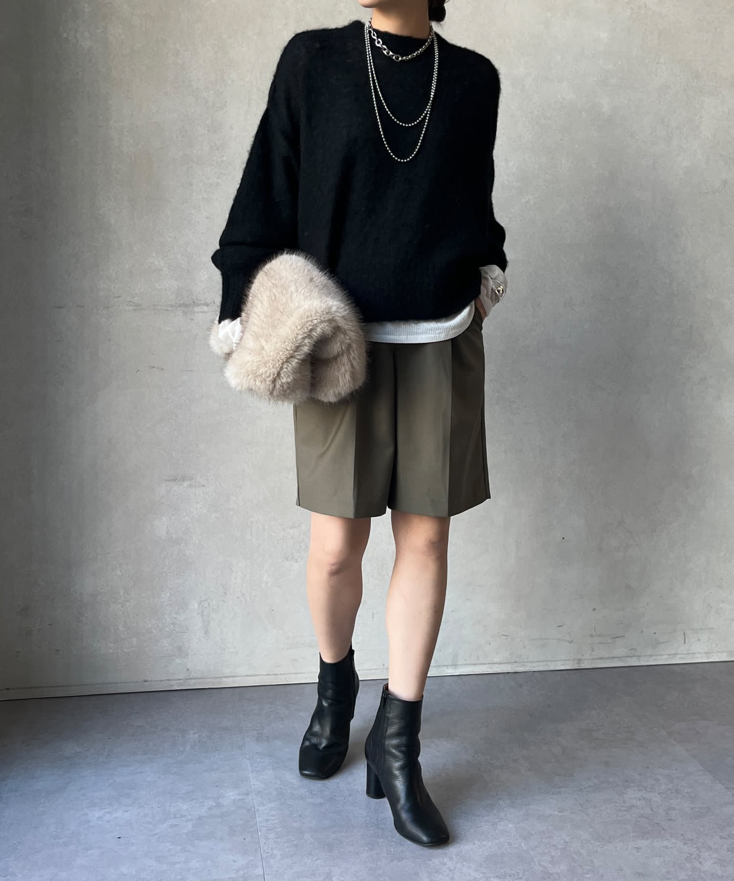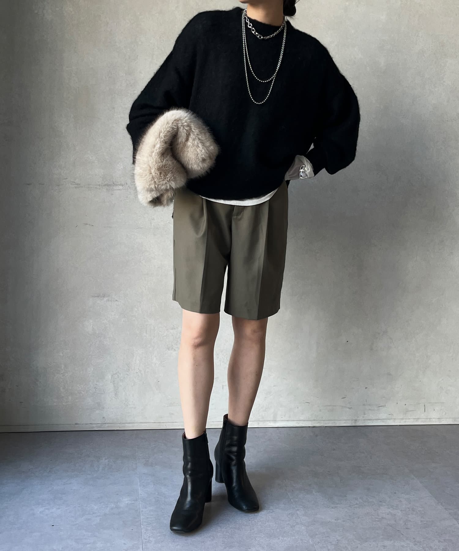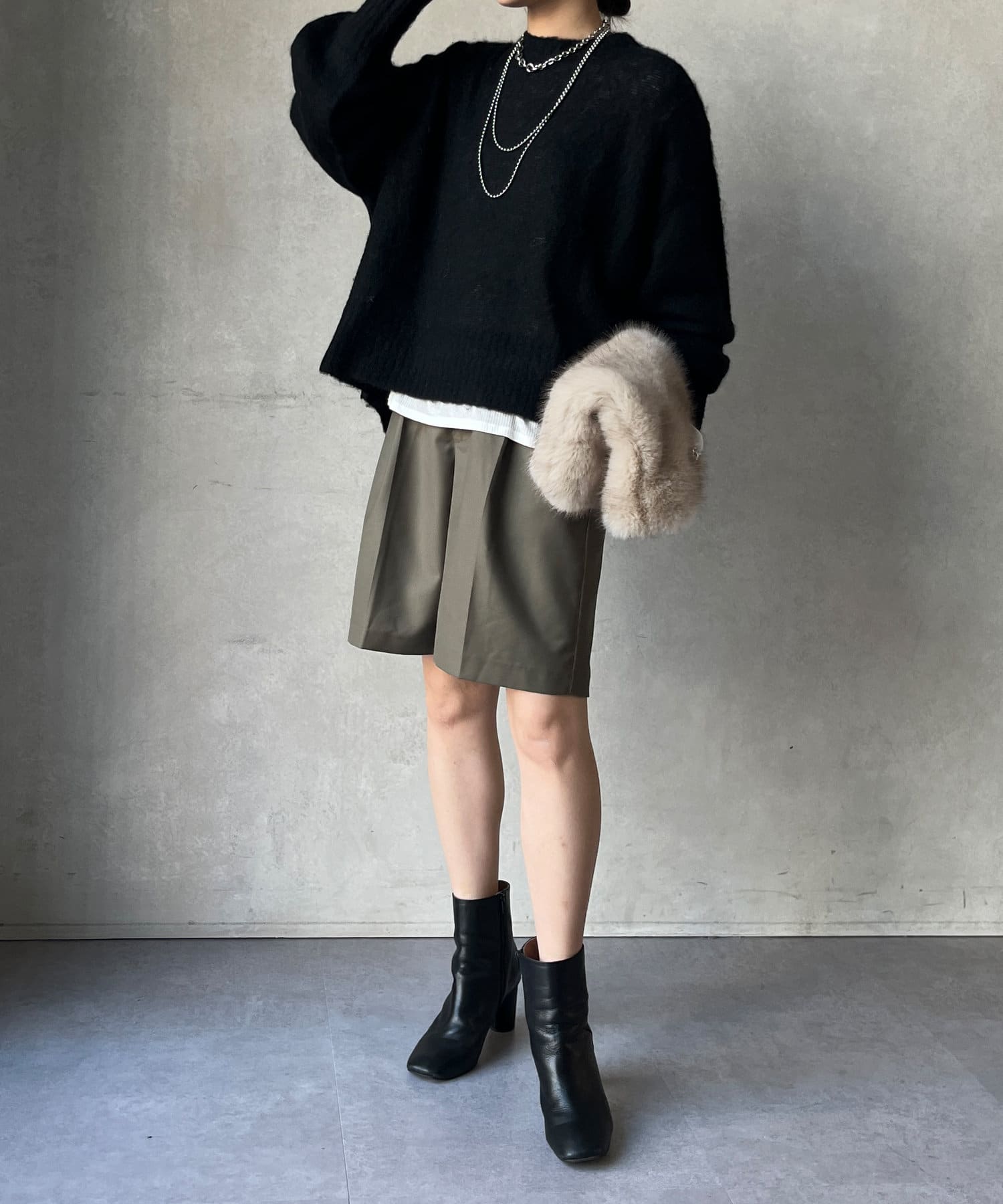 丈感も長すぎず短すぎない万能さので、そのまま着た際もボトムインした際もバランスよくすっきりと決まってくれます◎