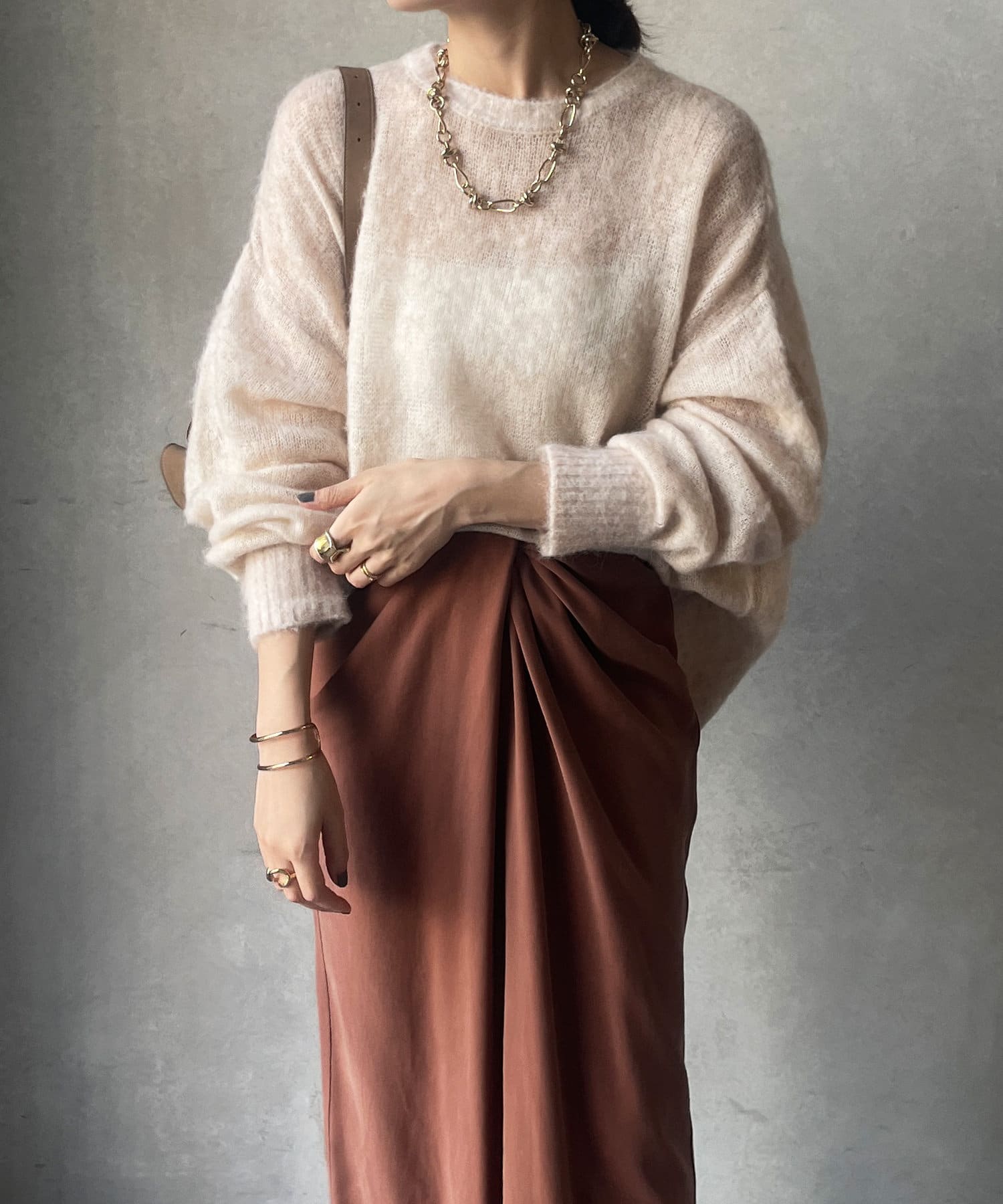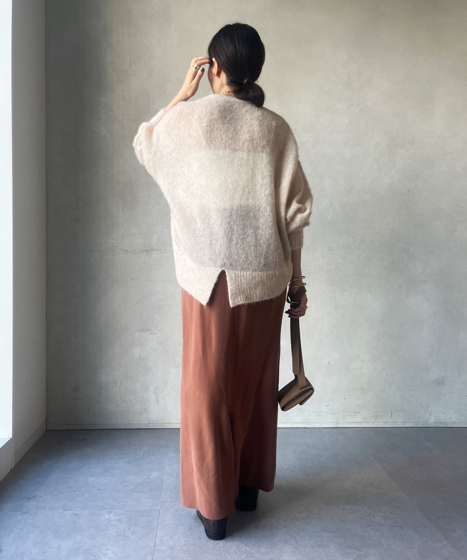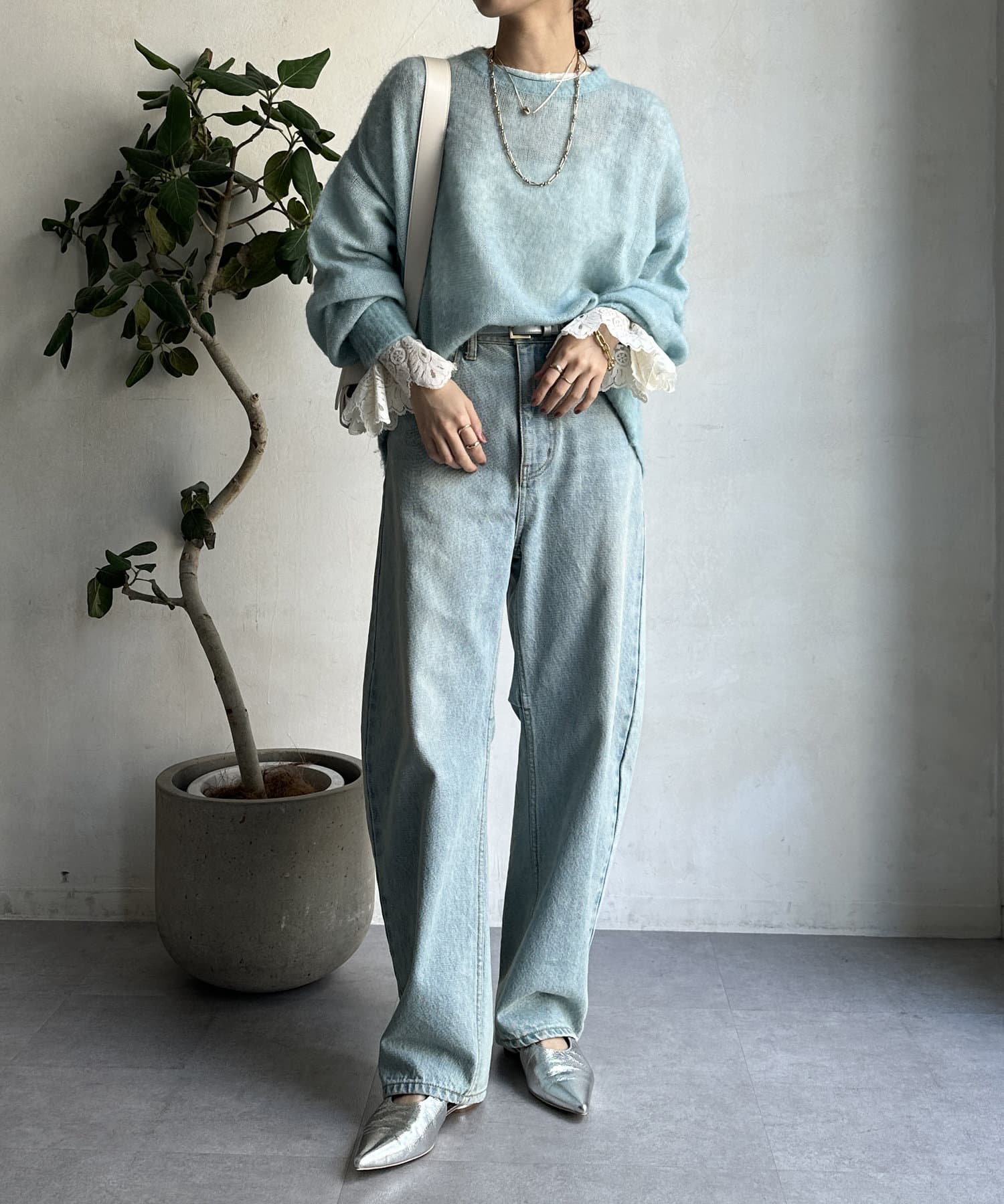 透け感を活かしてお手持ちのアイテムとレイヤードしたスタイリングを楽しんでいただけますよ。