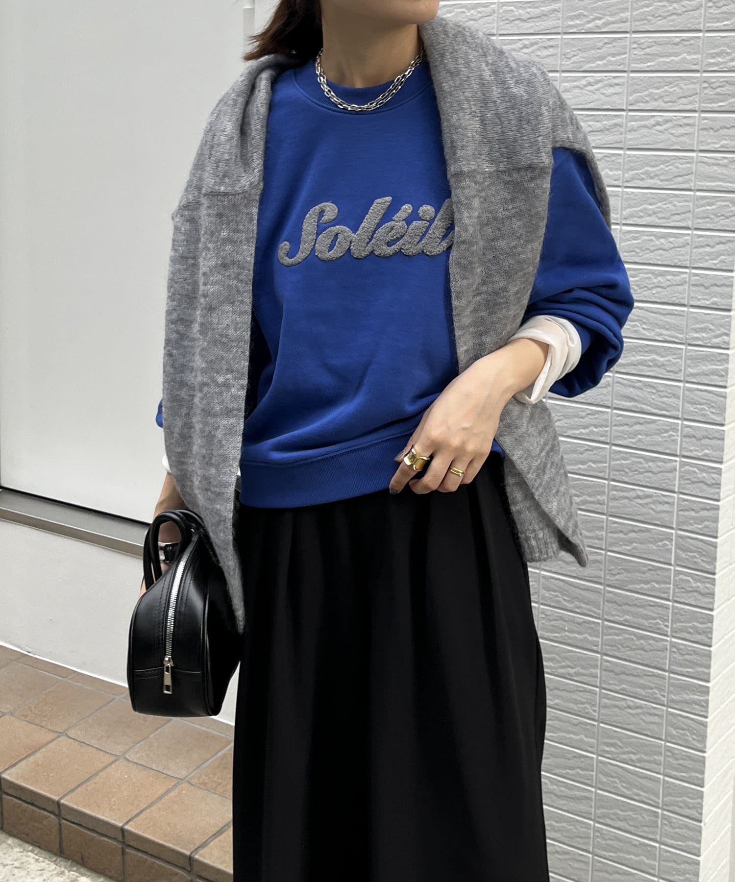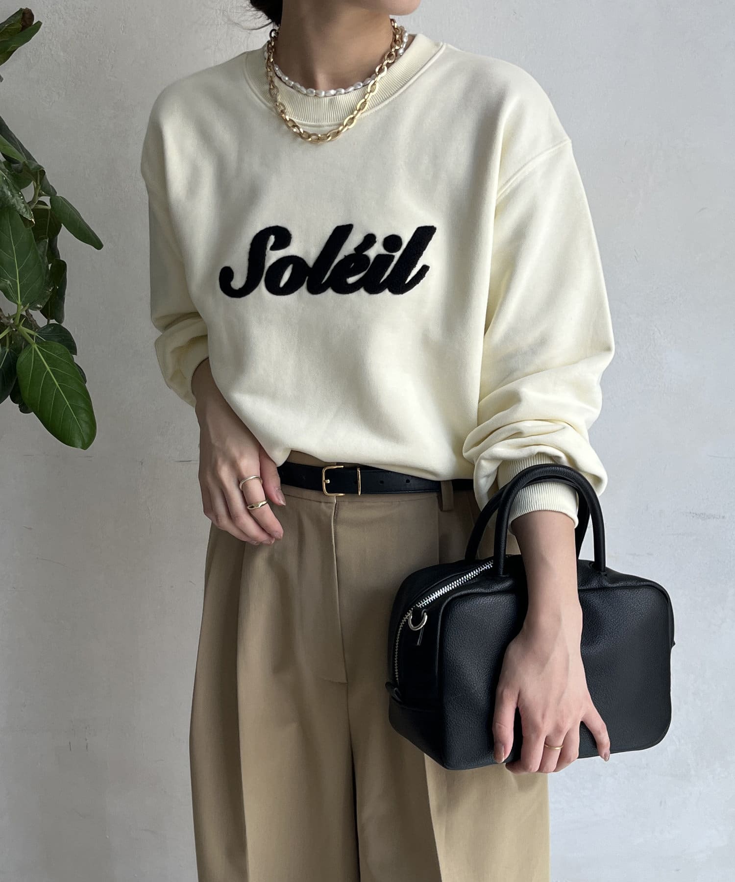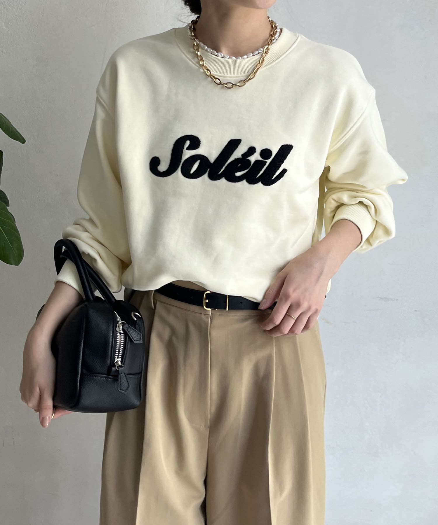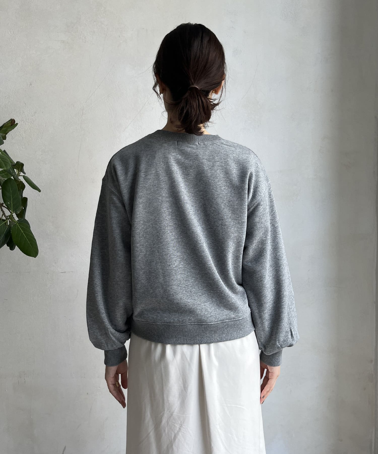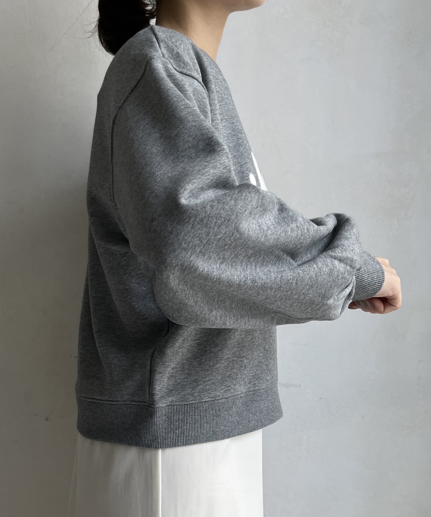 シンプルながら、サガラ刺繡がスタイリングのポイントになるスウエット。