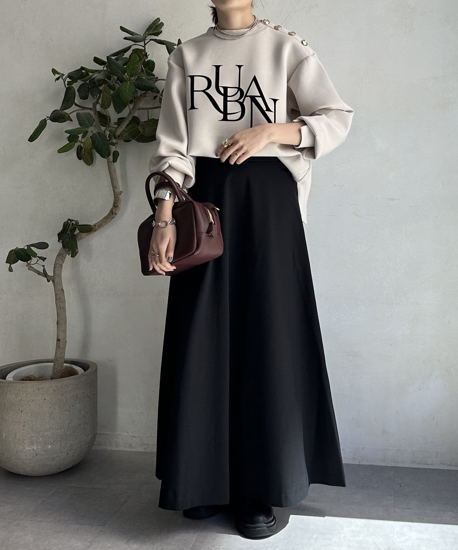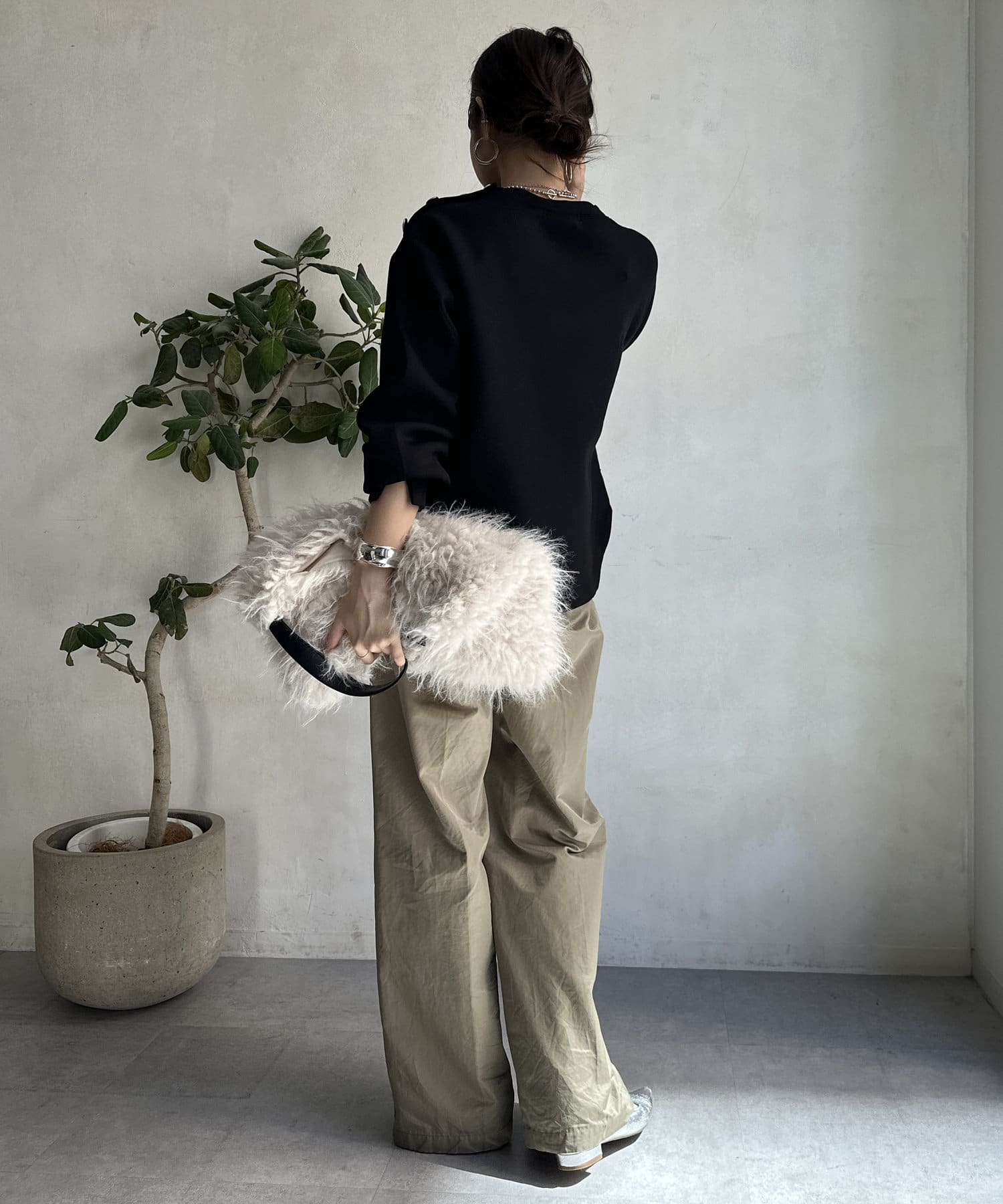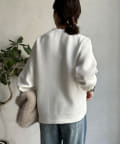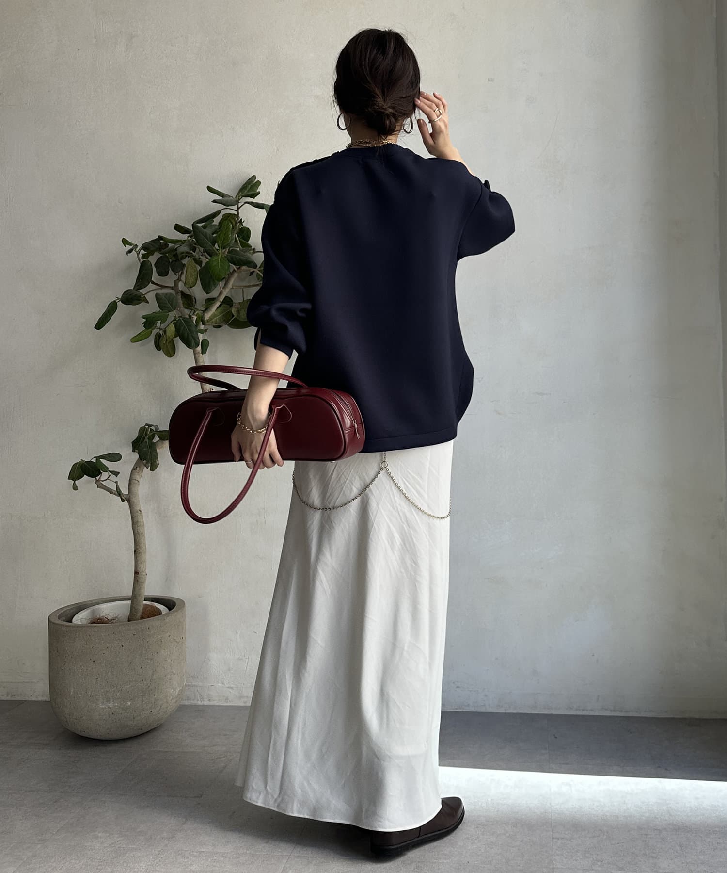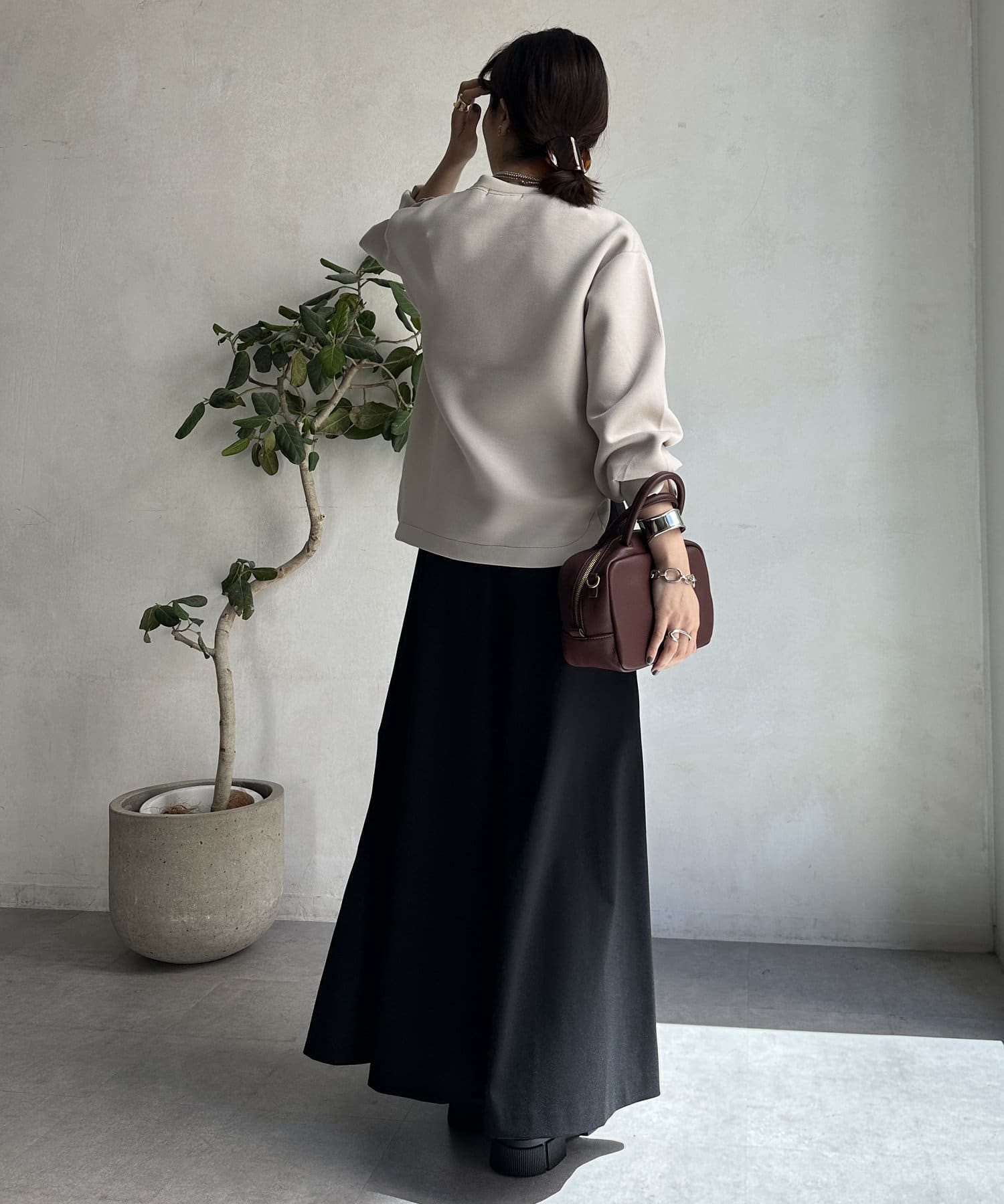 程よくゆとりのあるシルエットで身体のラインを拾いにくく、また袖口のスリットがさり気ないワンポイントとなり