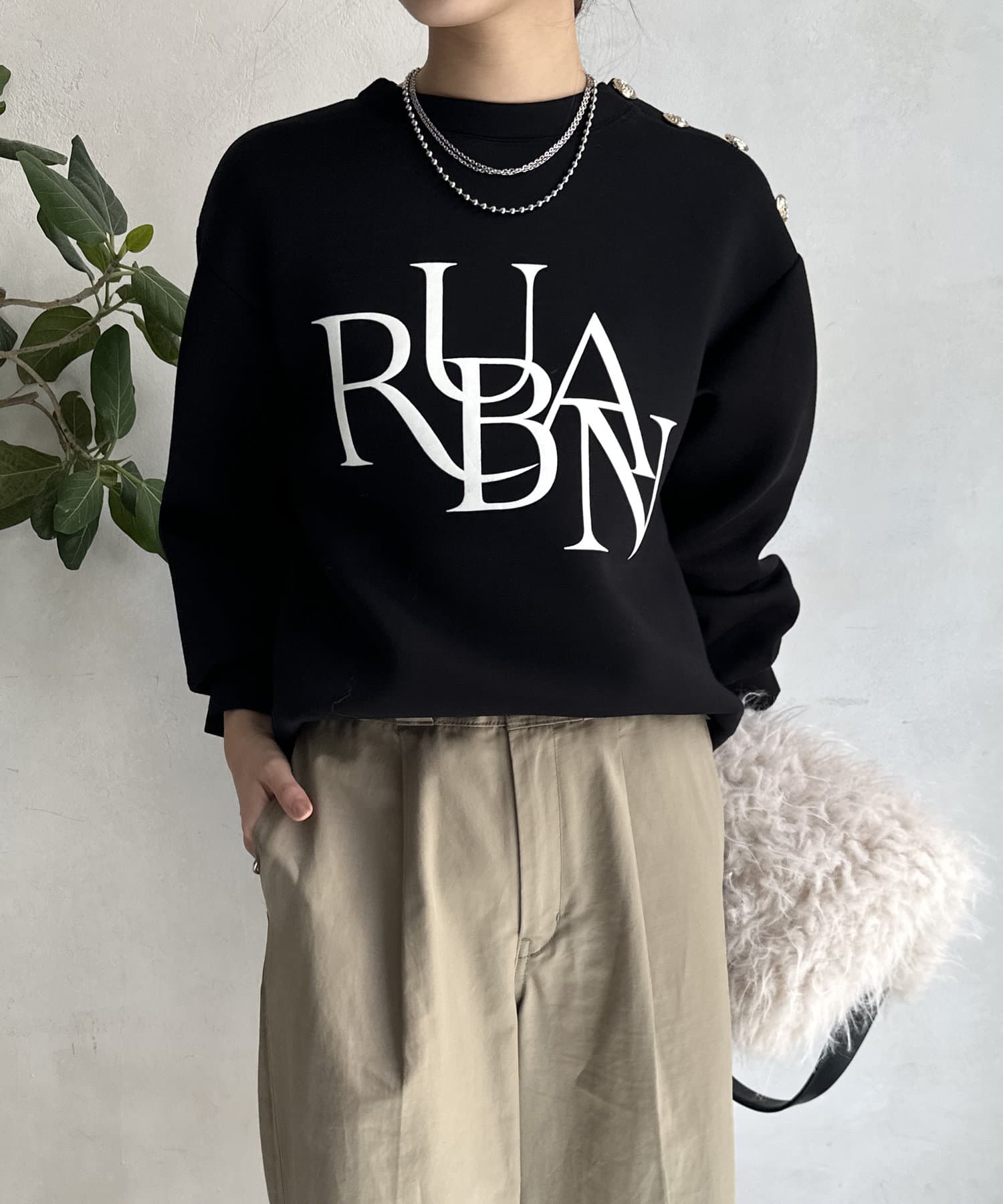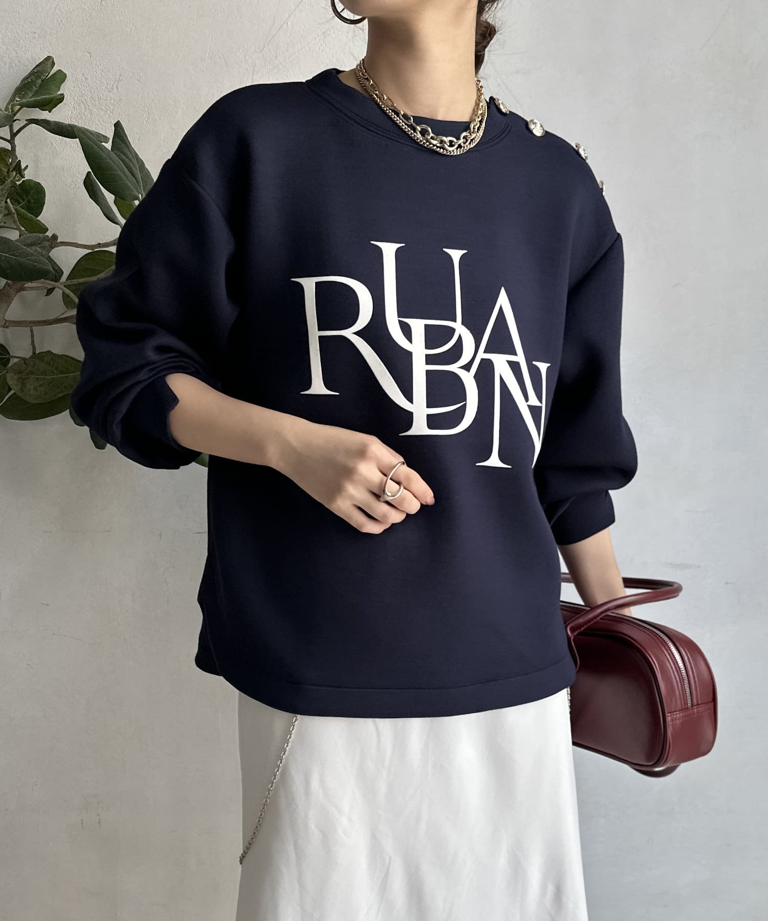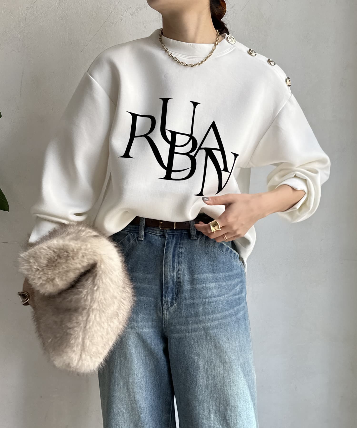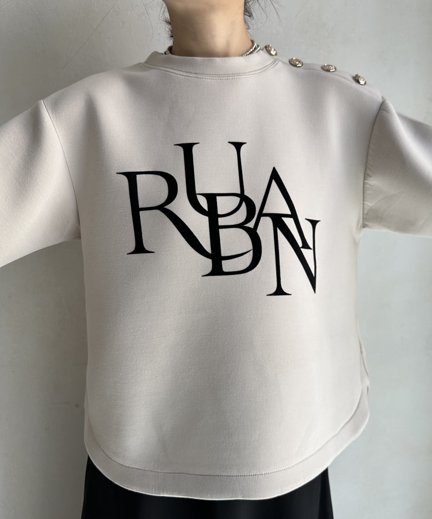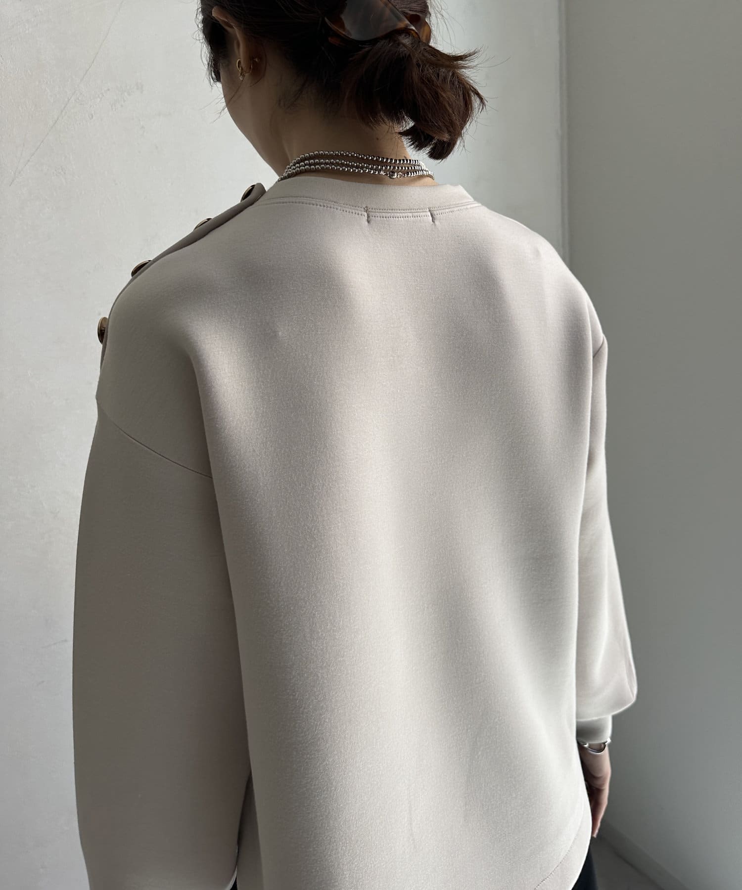 ショルダーのゴールドボタンがアクセントのロゴトップス!