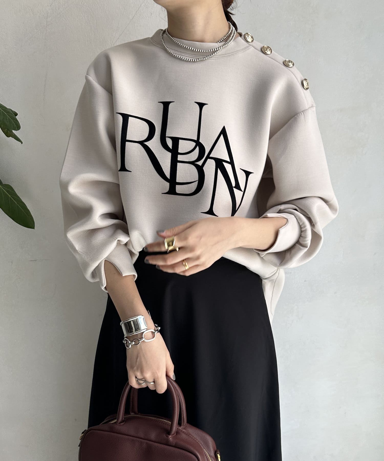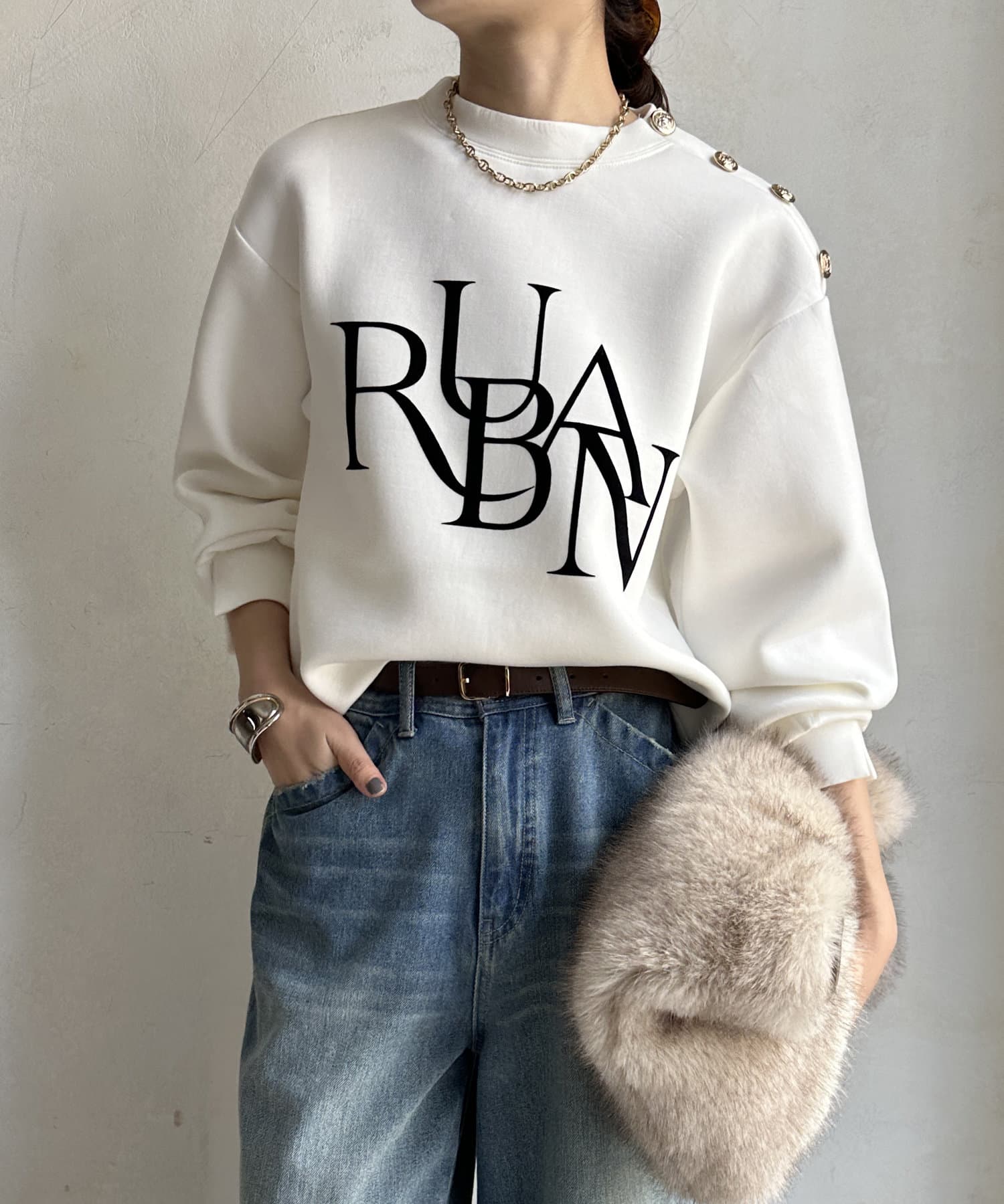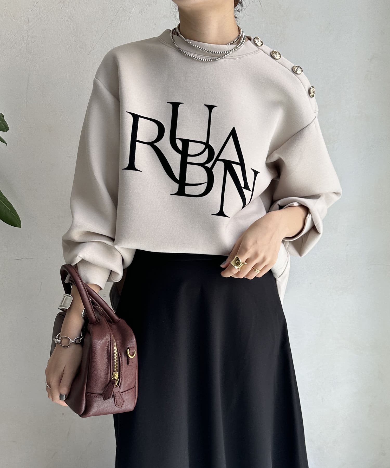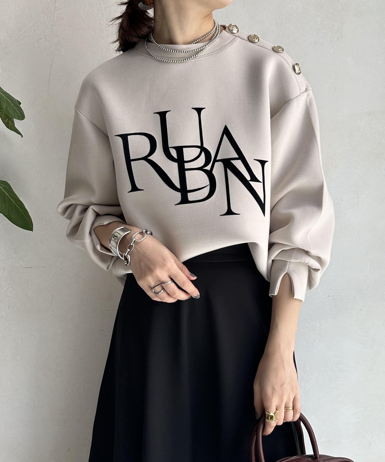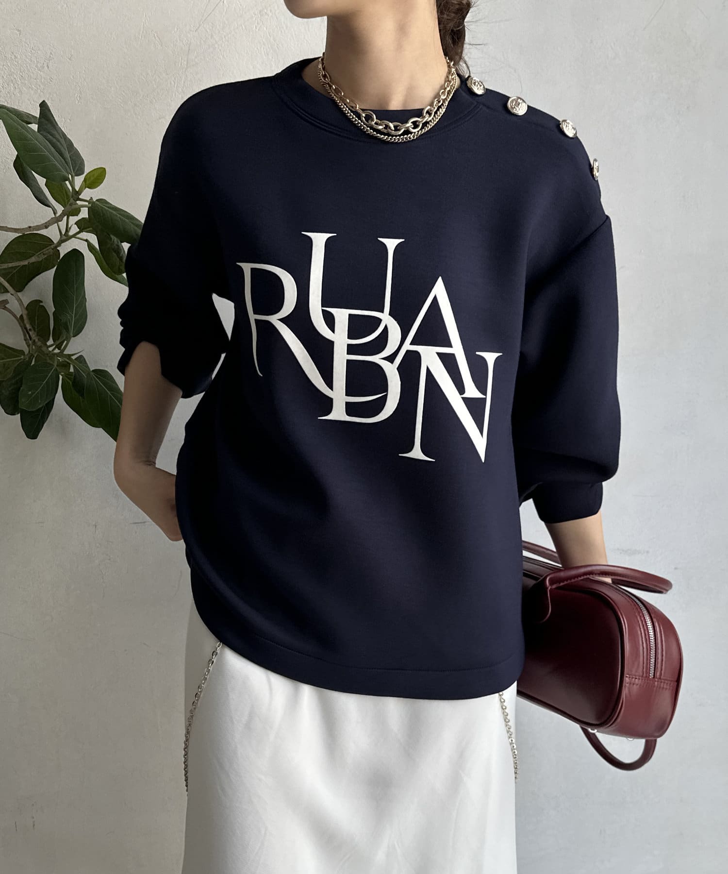 ショルダーのゴールドボタンがアクセントのロゴトップス!