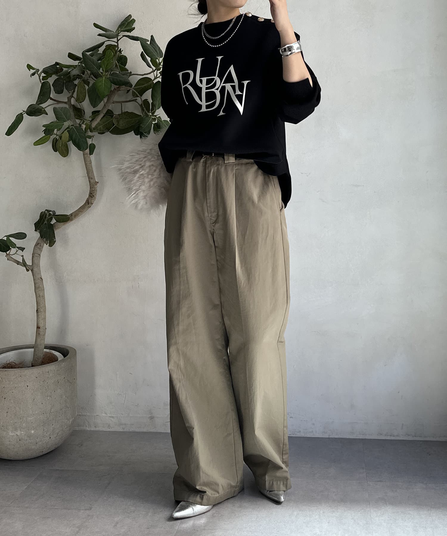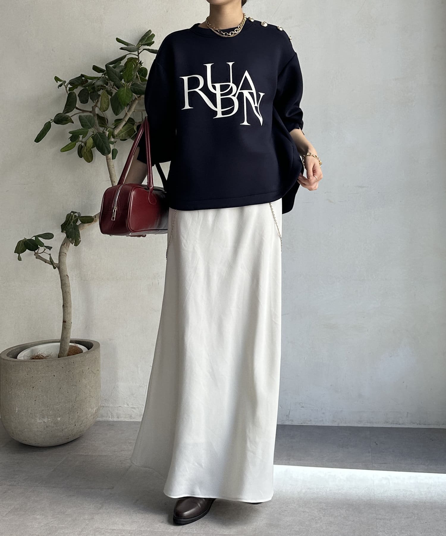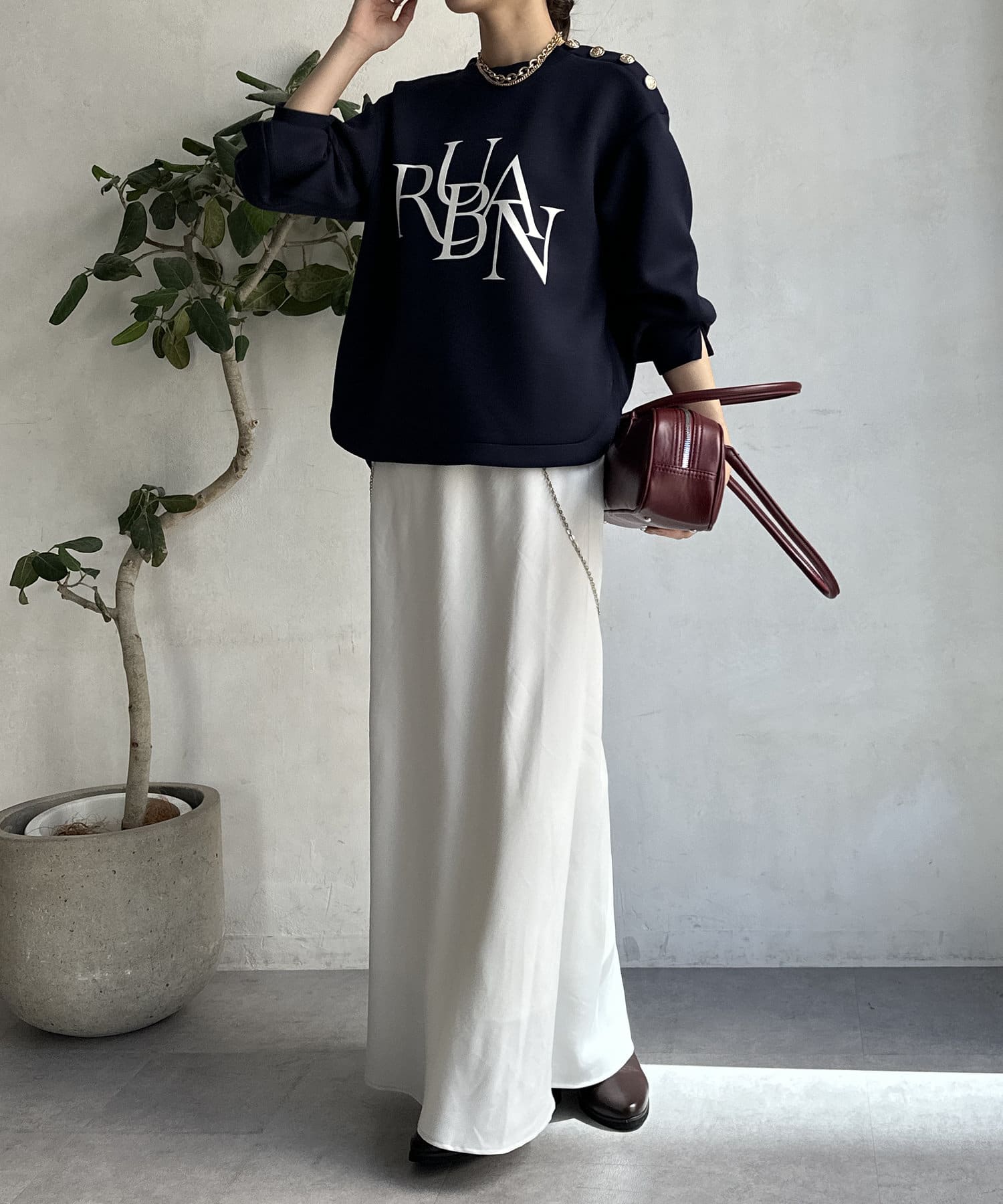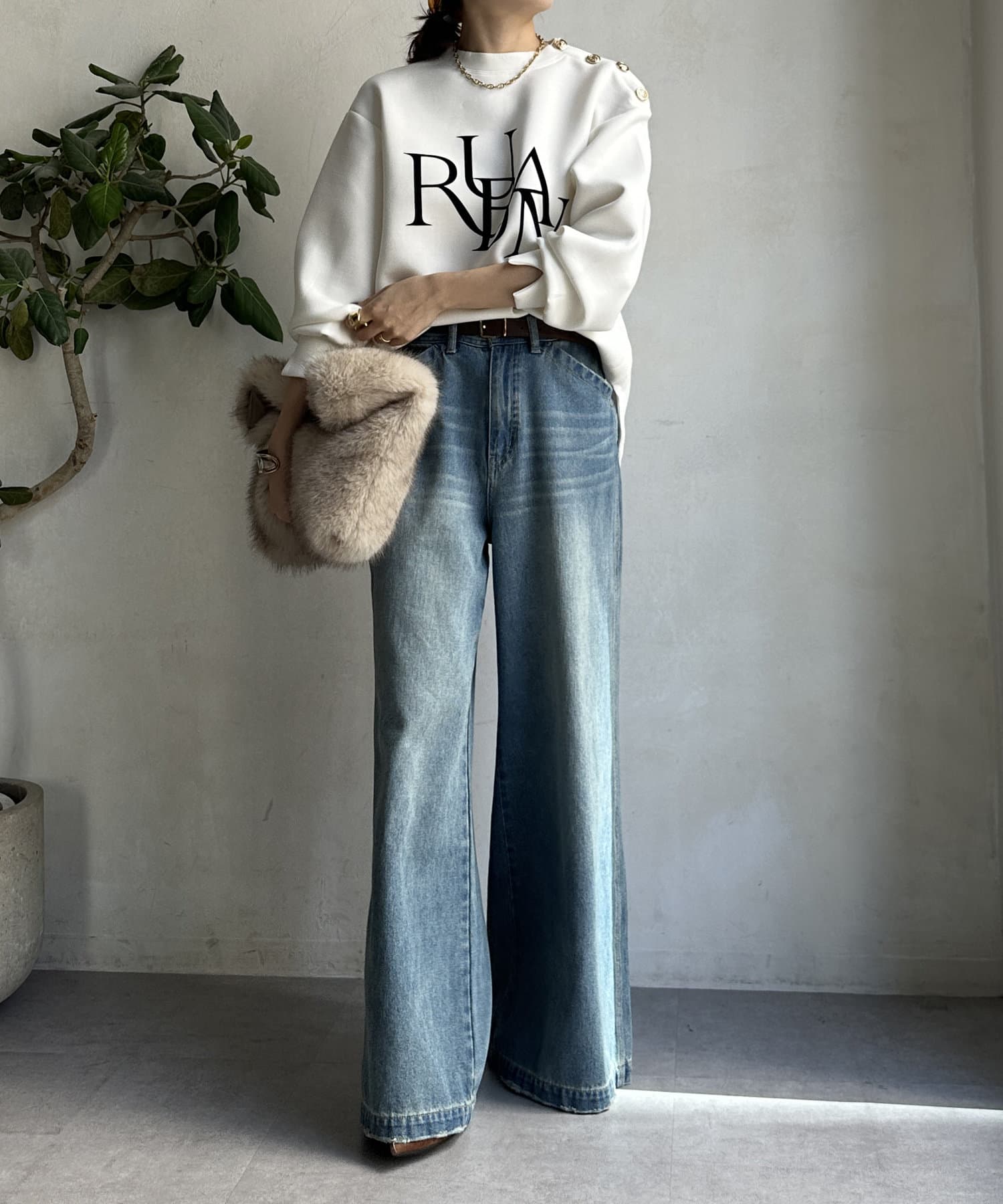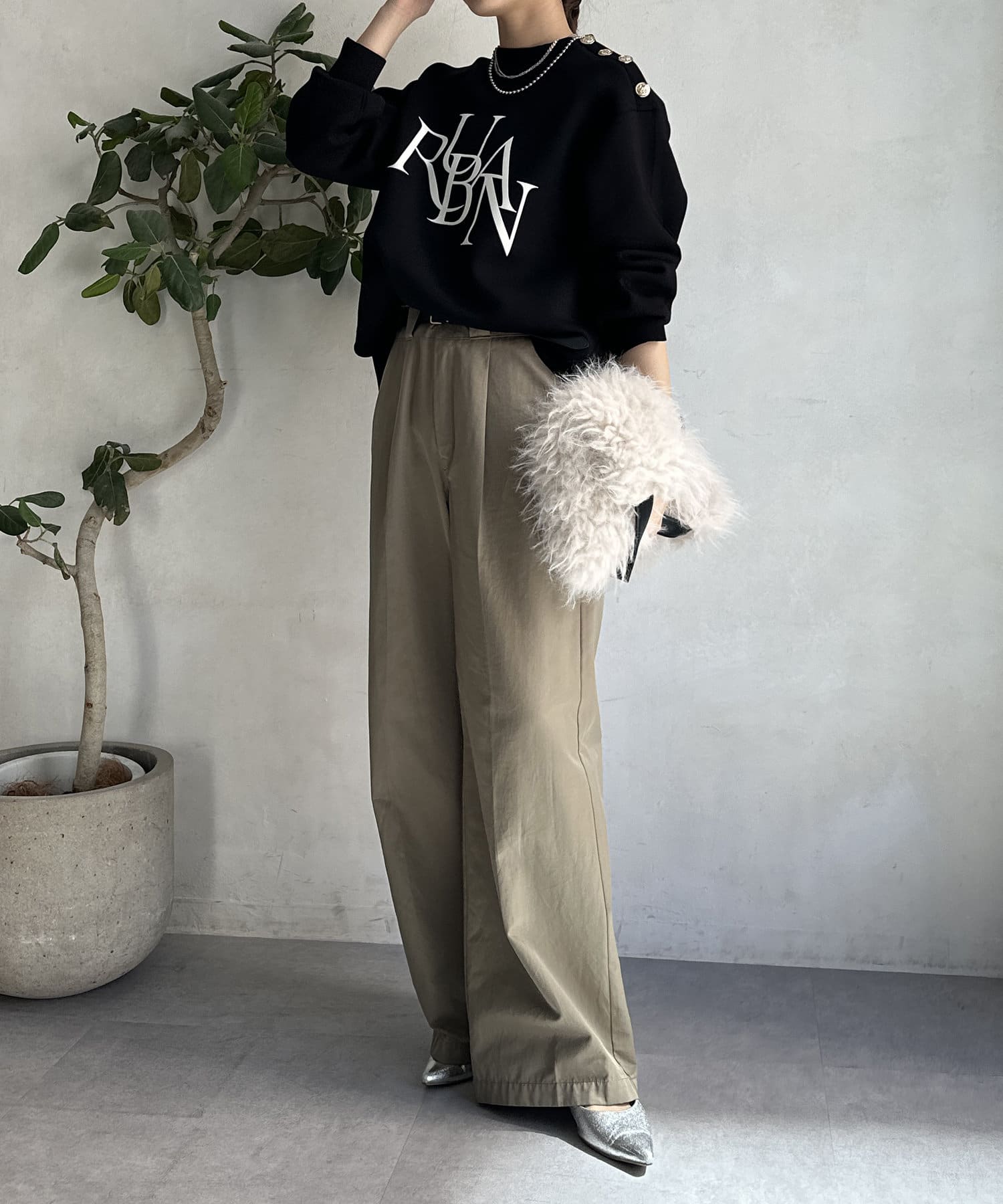 ショルダーのゴールドボタンがアクセントのロゴトップス!