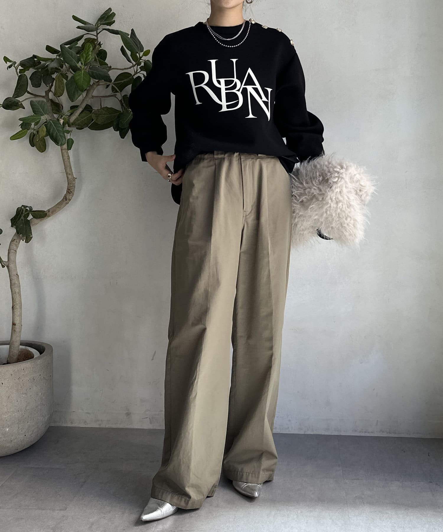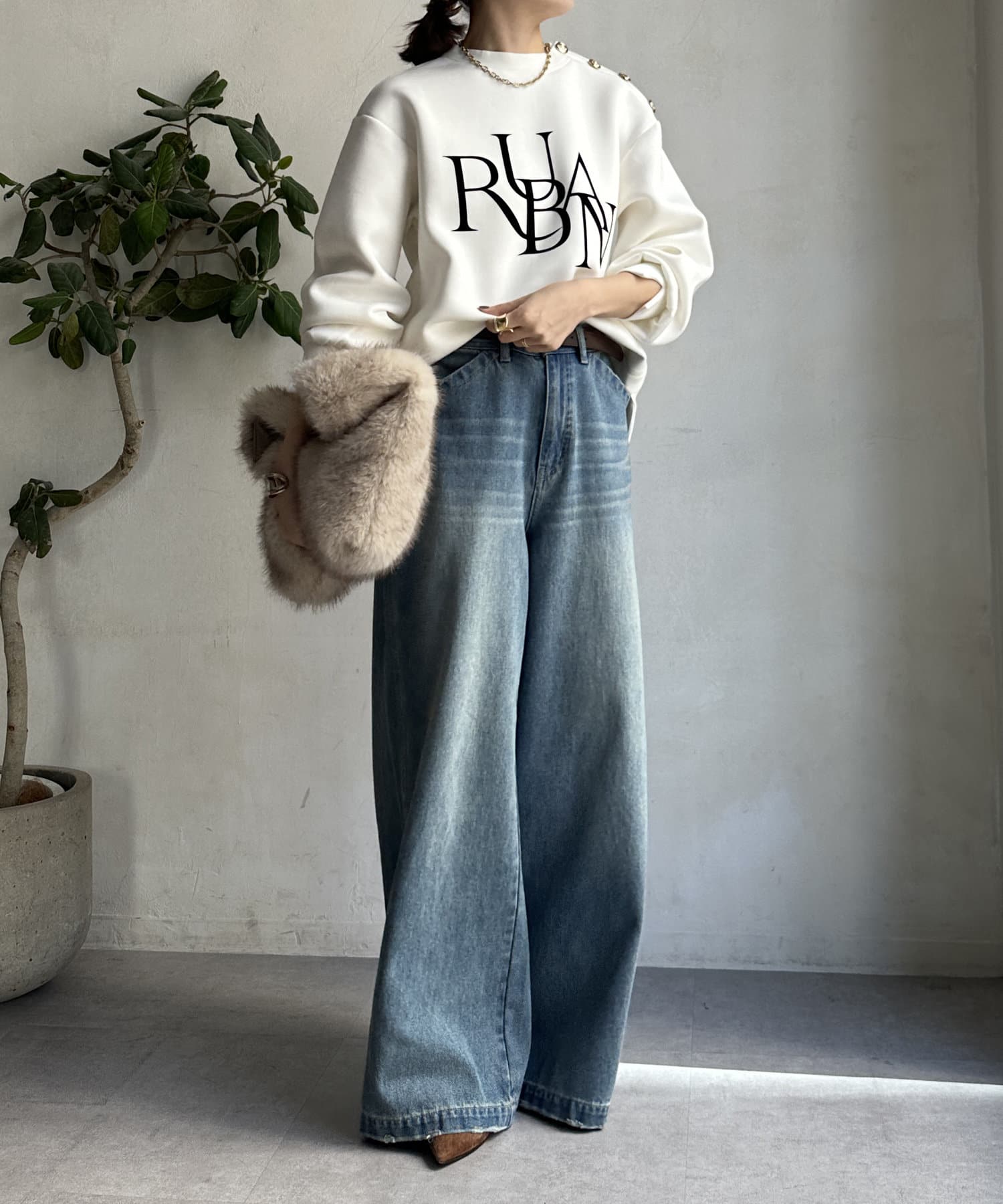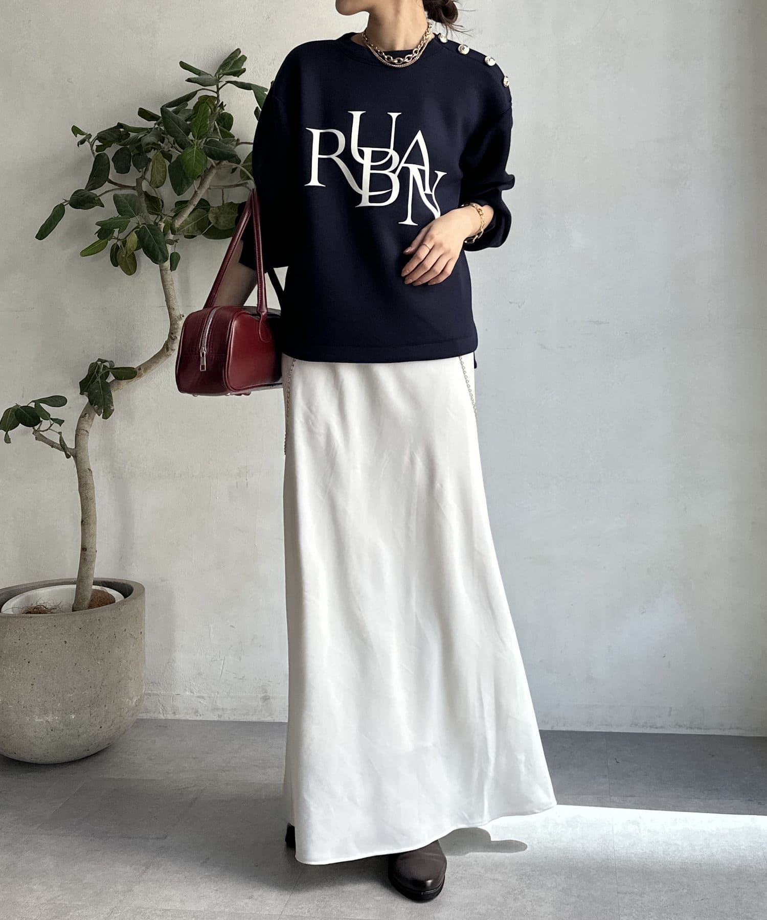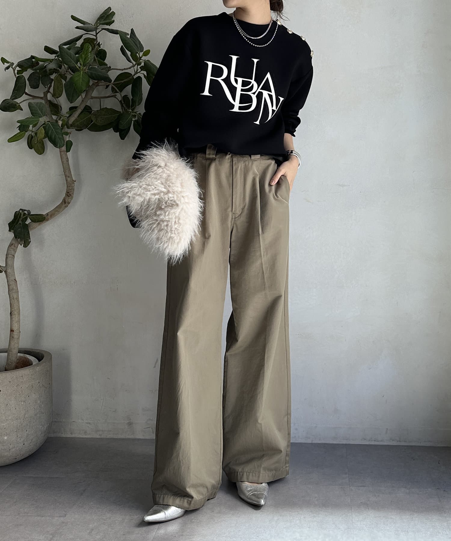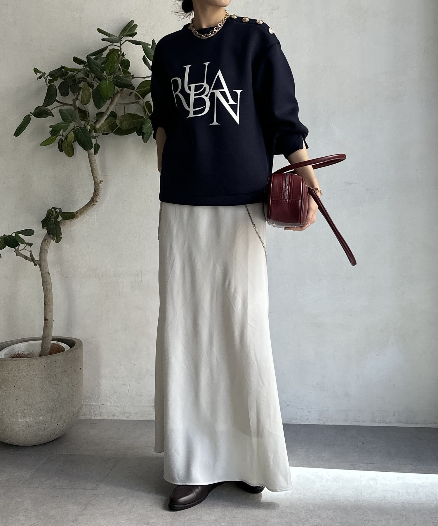 ショルダーのゴールドボタンがアクセントのロゴトップス!