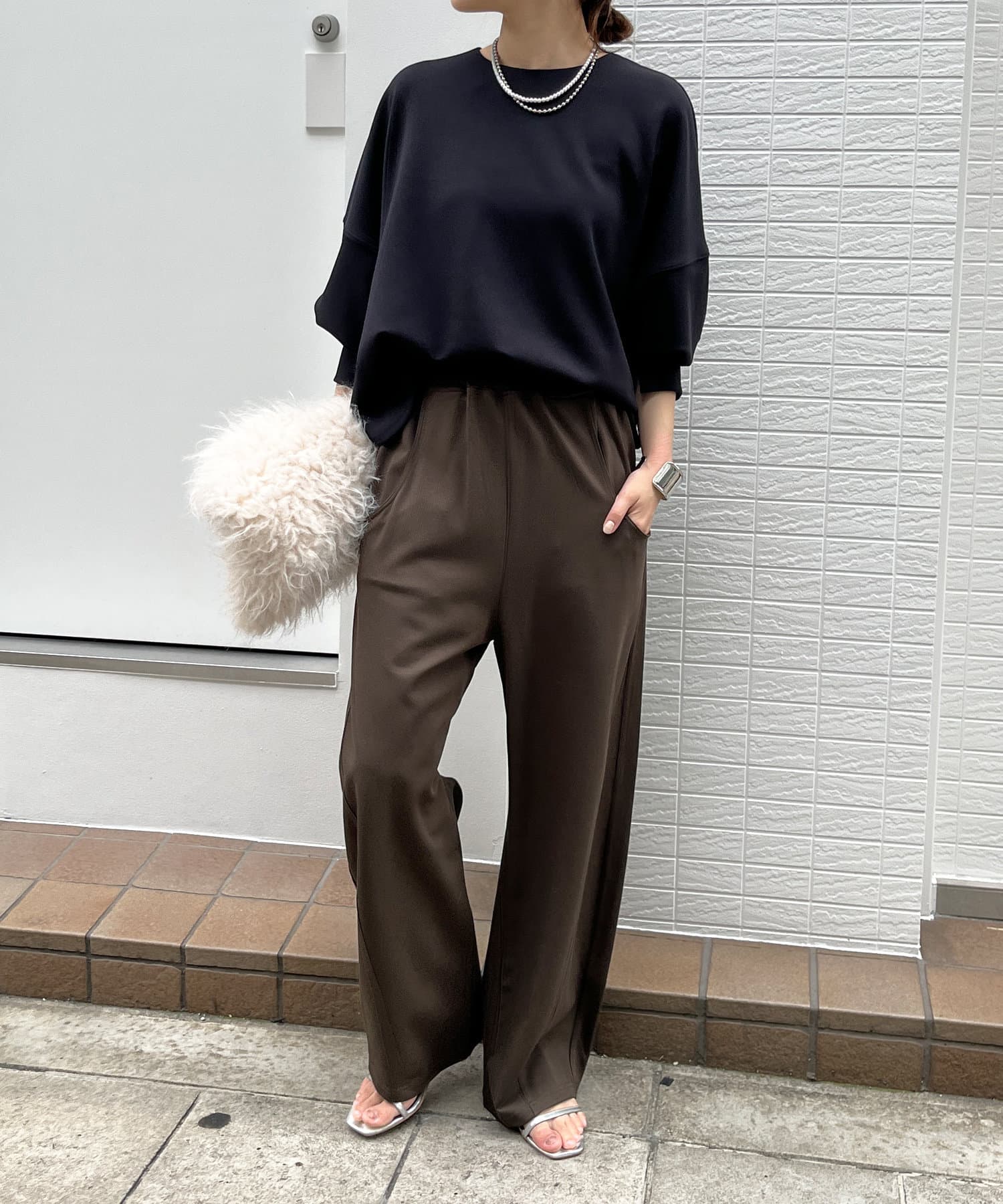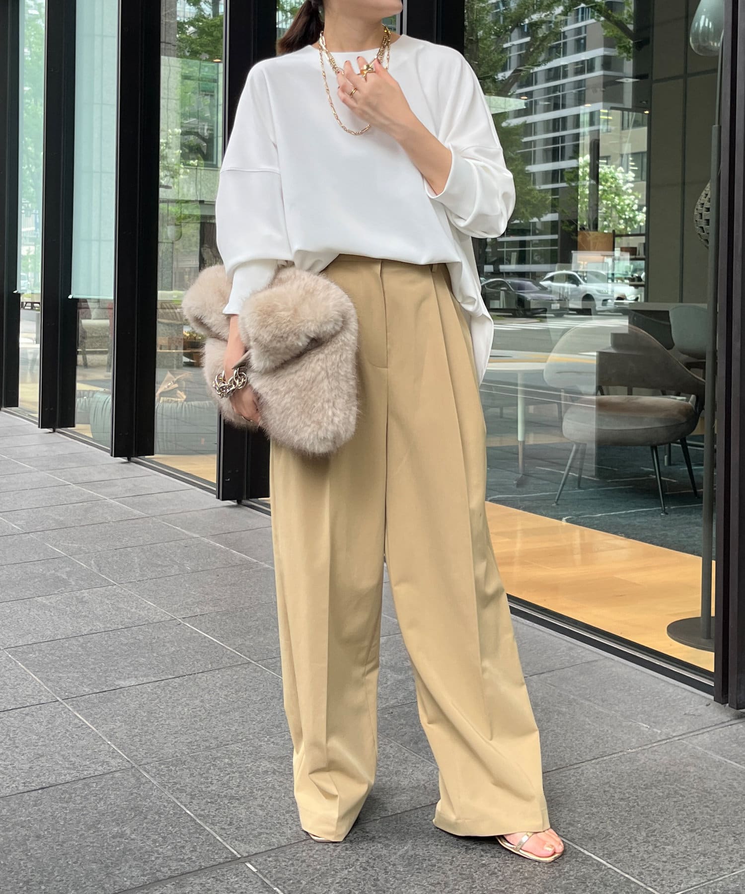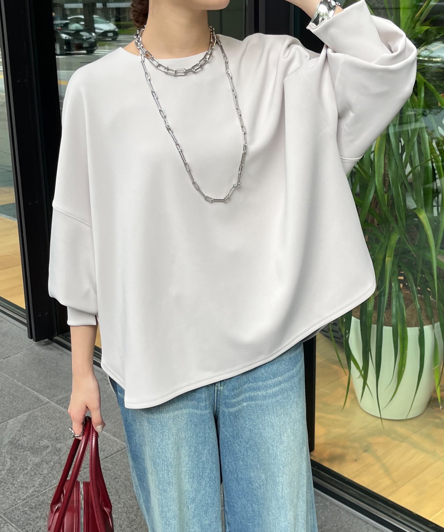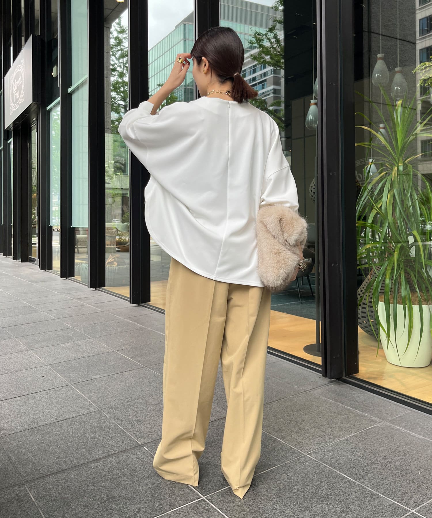 フラットな表面感で、通常のカットソーよりもきれいめな印象に決まるのがポイントです。