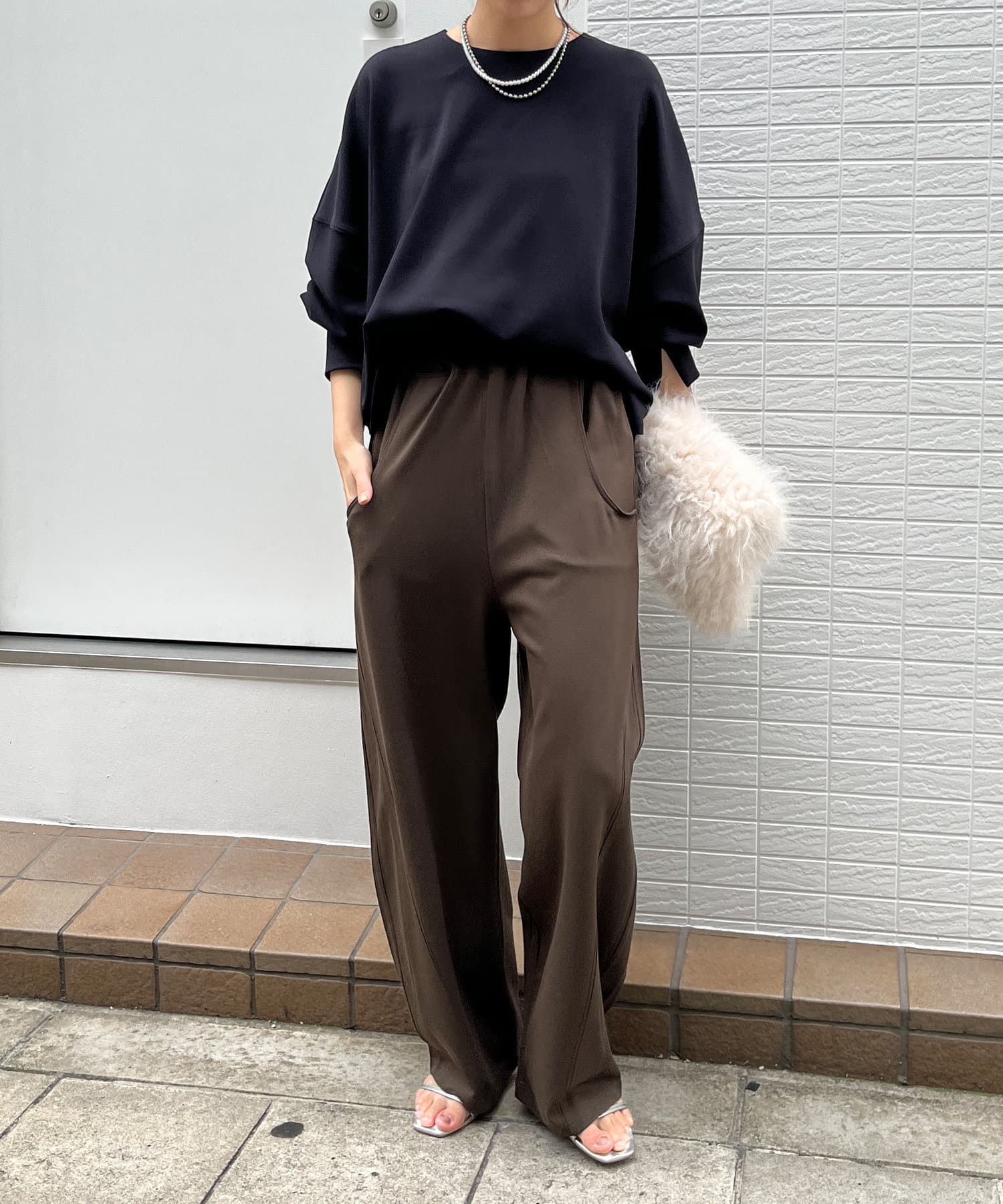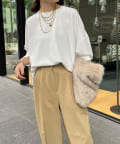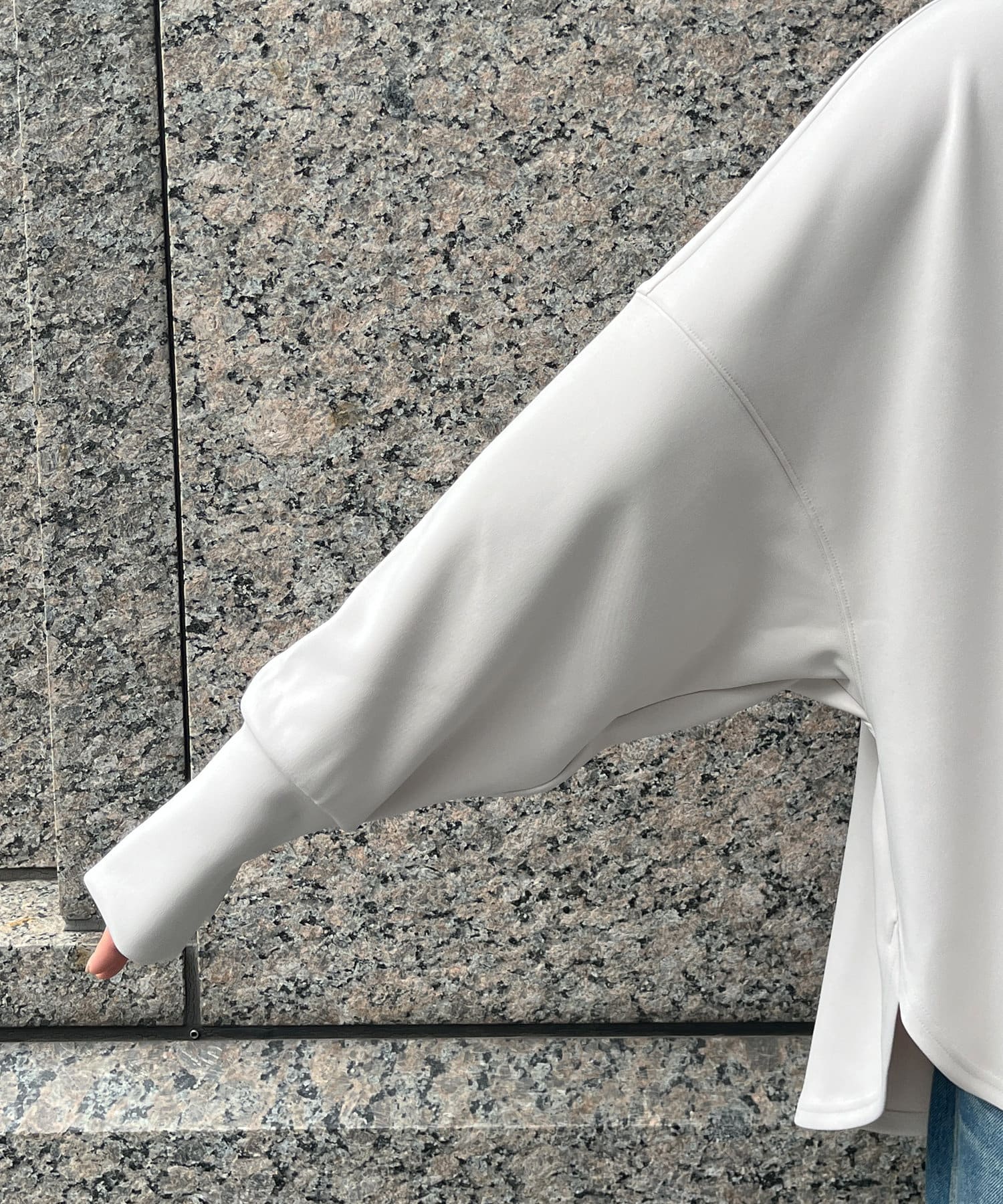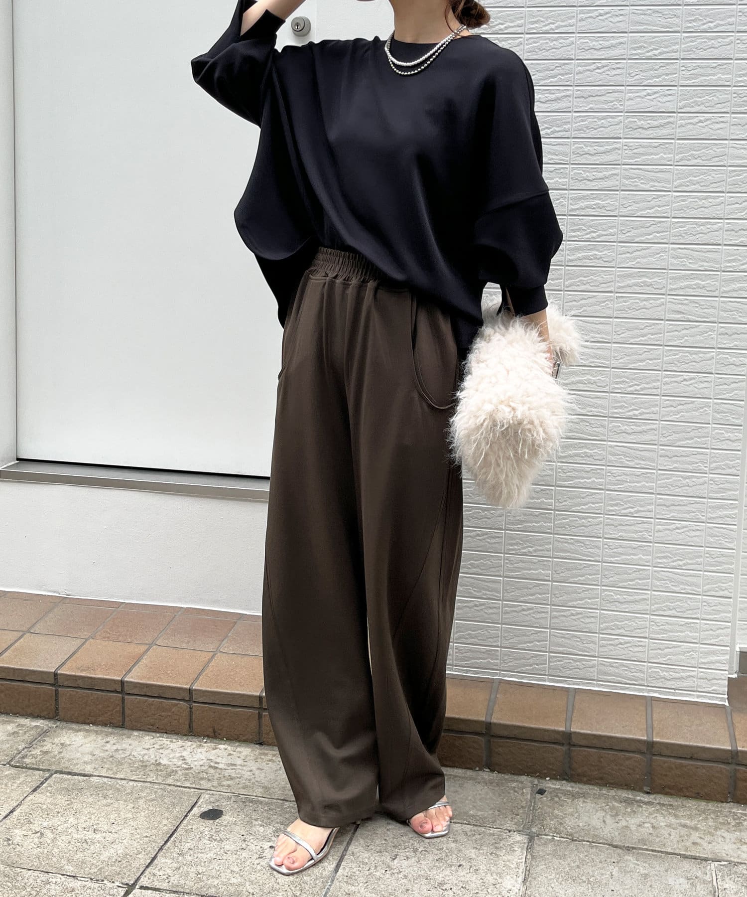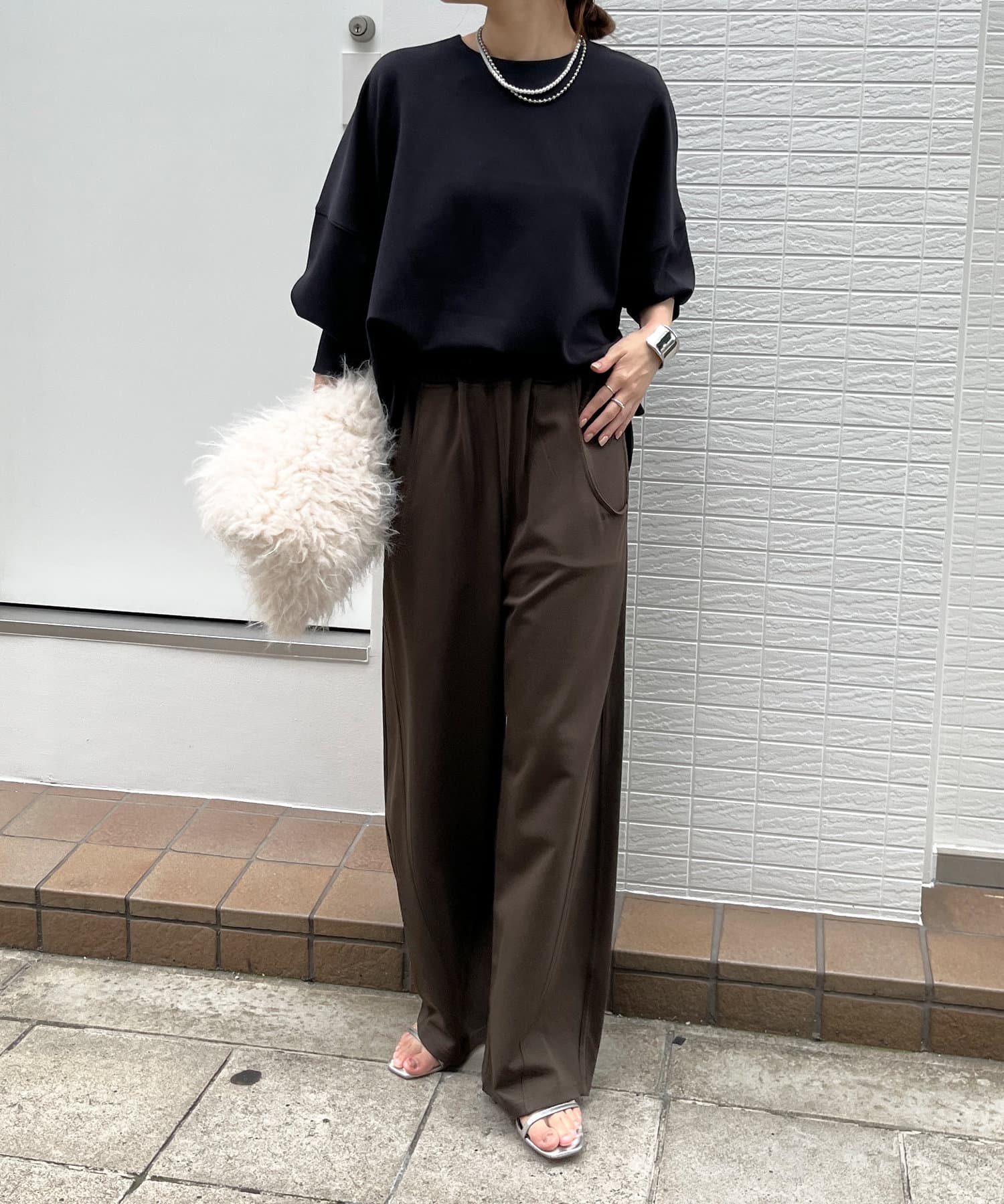 フラットな表面感で、通常のカットソーよりもきれいめな印象に決まるのがポイントです。