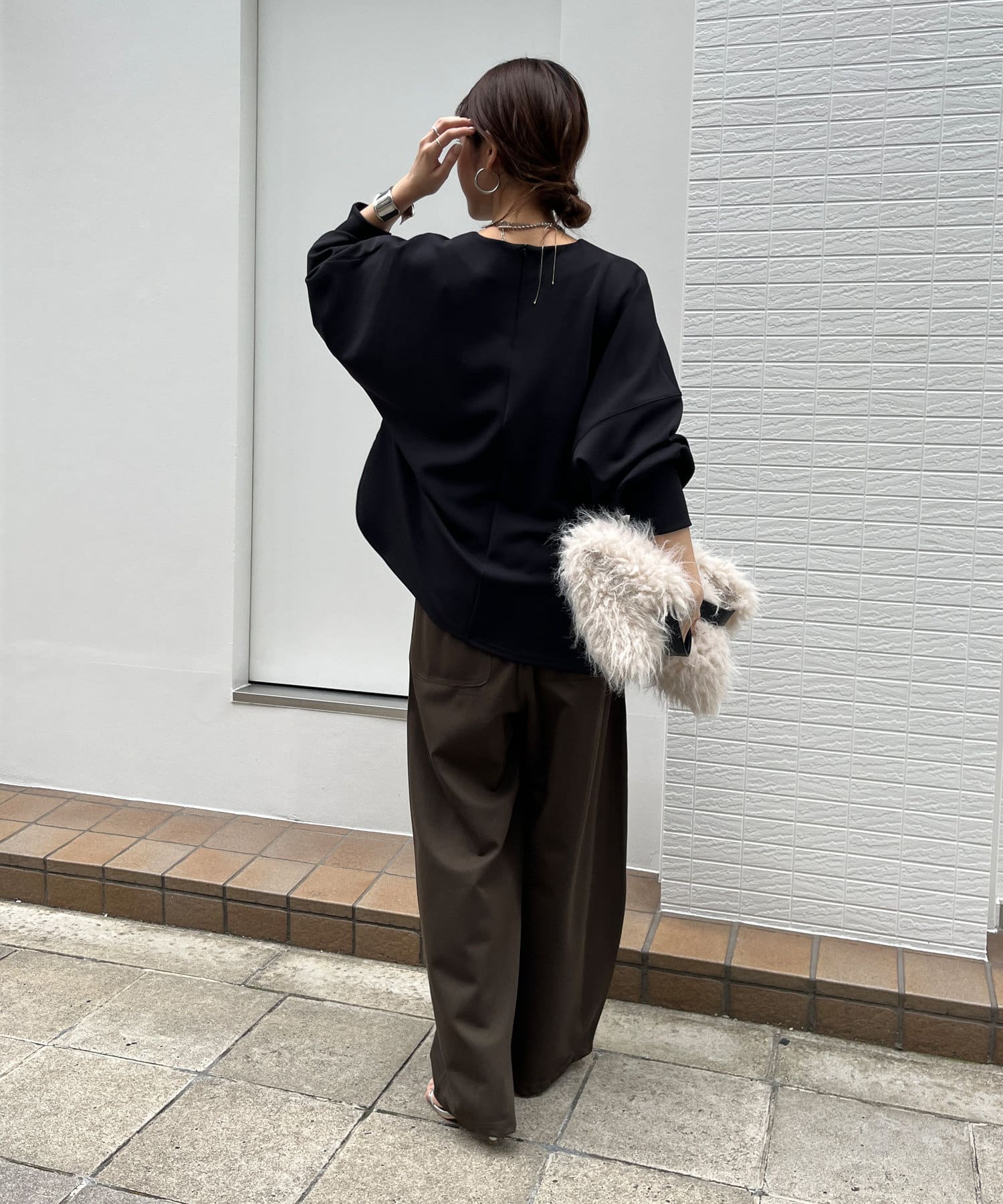 身幅はゆったりと余裕感のあるサイジングに、少し長めの丈感でヒップや腰回りをカバー。前後差のある丈感のため、おしゃれさもプラスしてくれます。