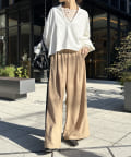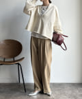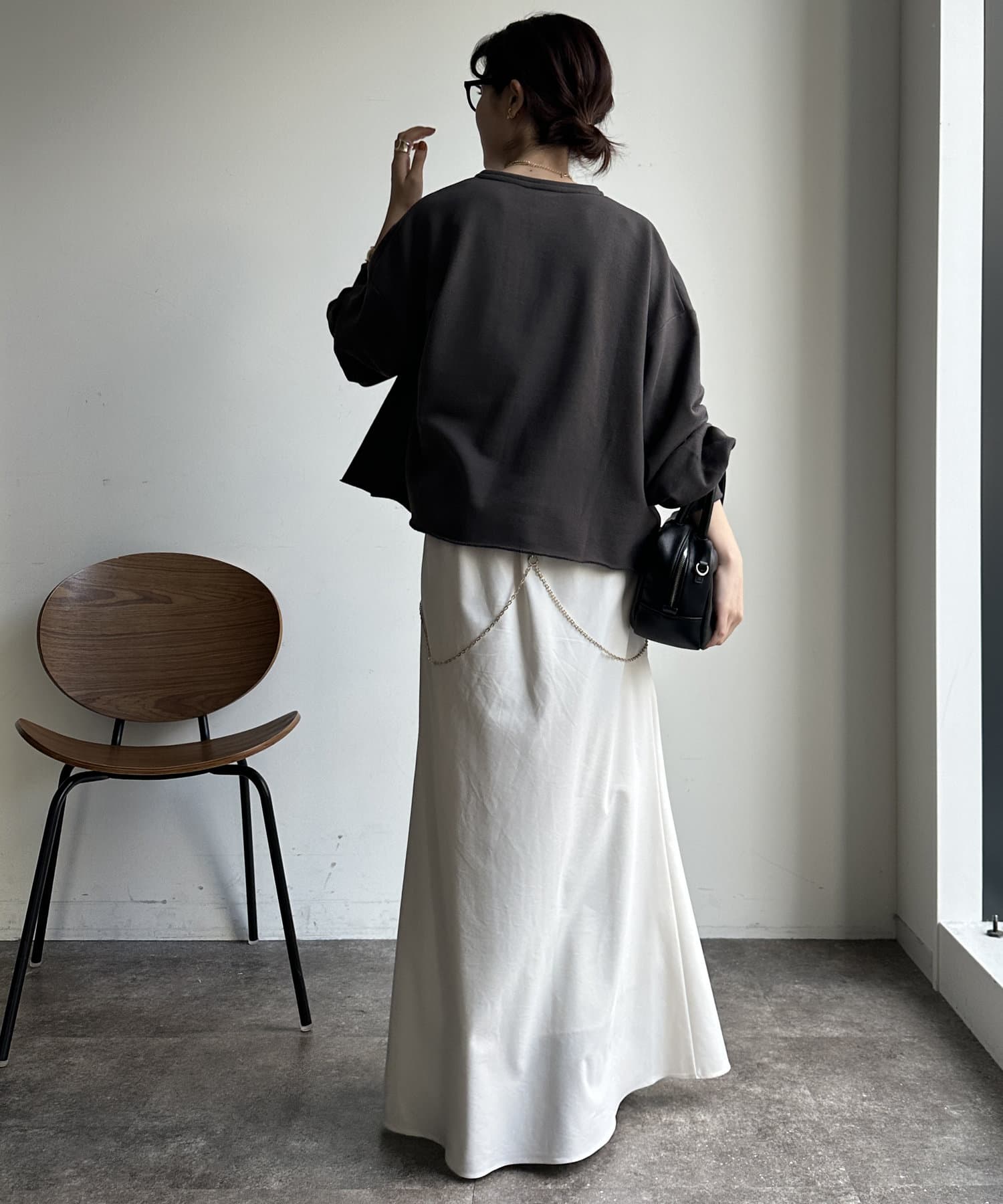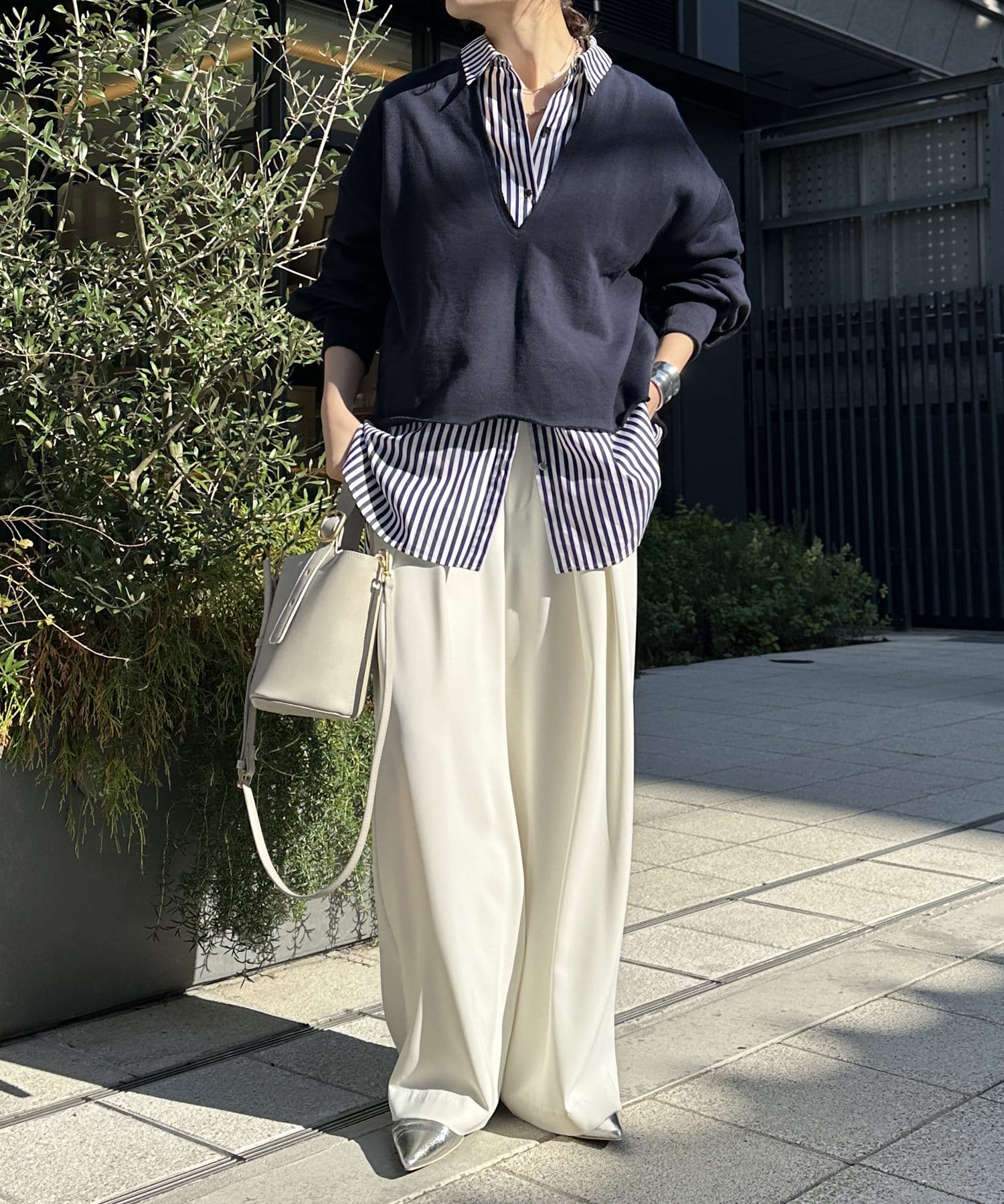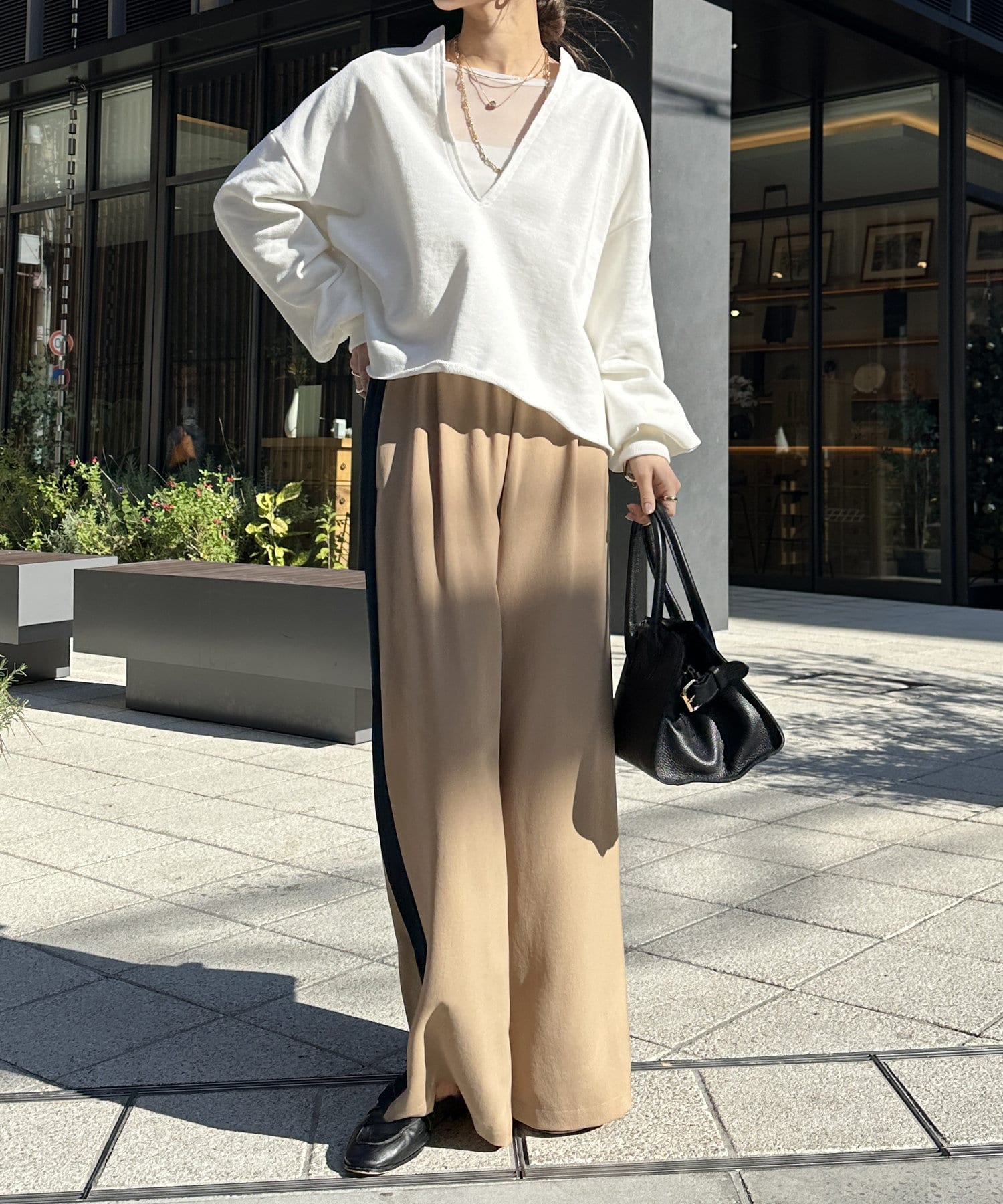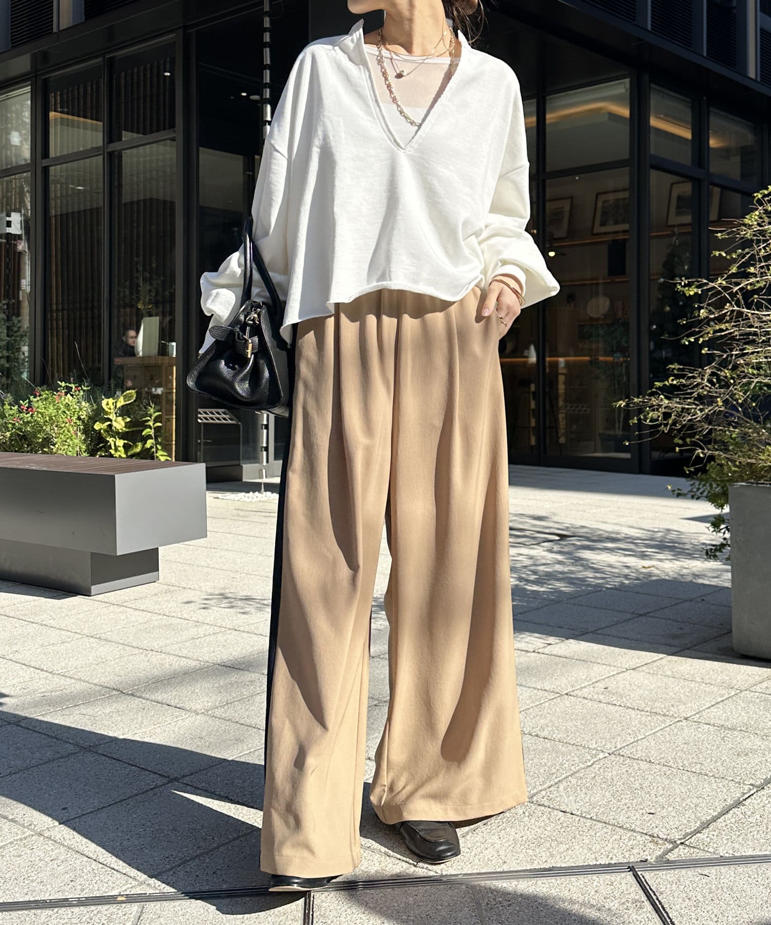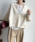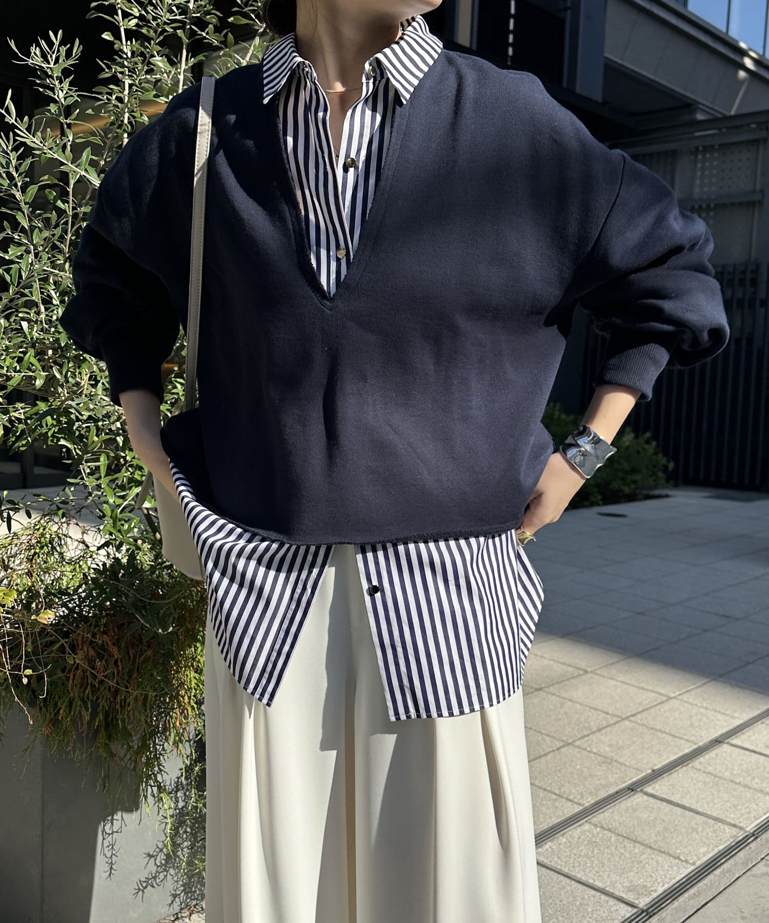 ネックラインのざっくりとしたカットがポイントで、顔回りをすっきりと、そしておしゃれな印象に仕上げます。