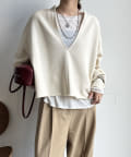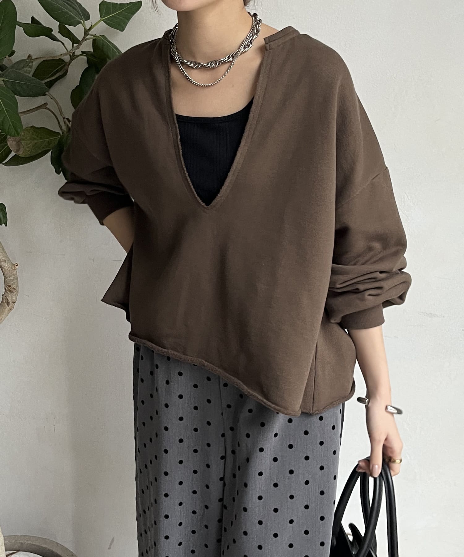 ざっくりと入ったネックのカットがおしゃれ見え!