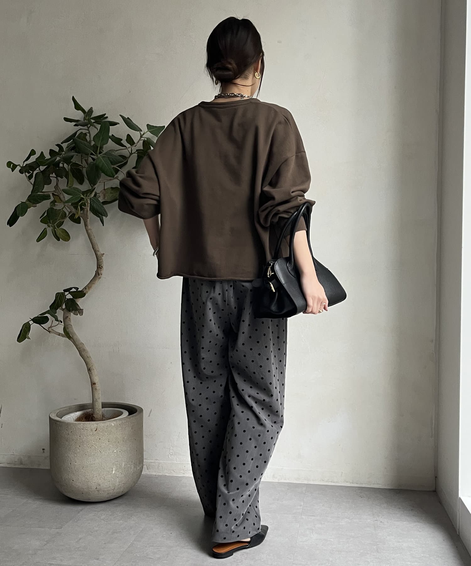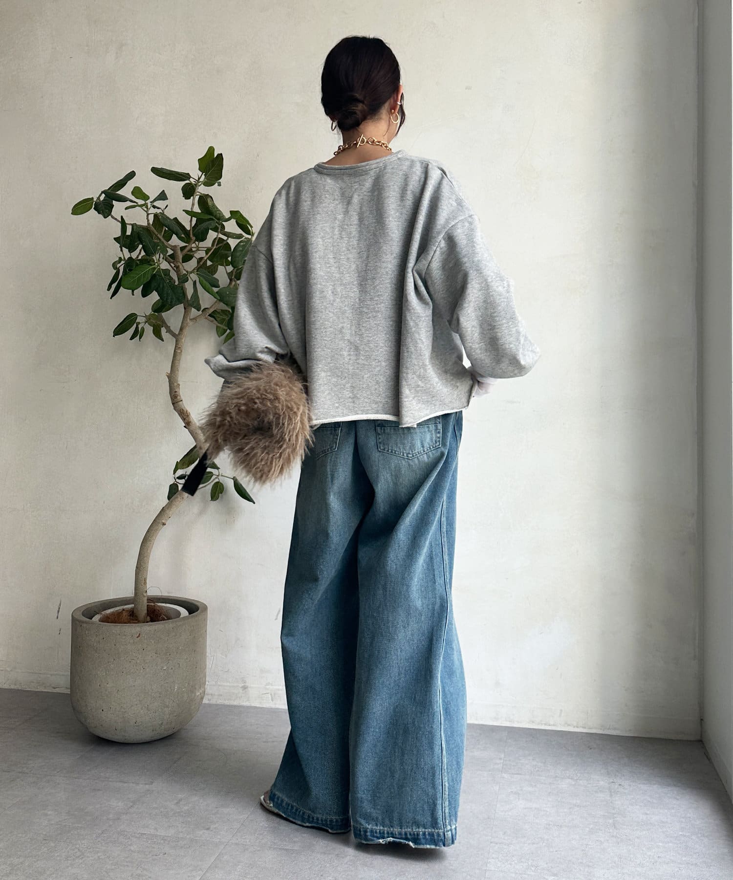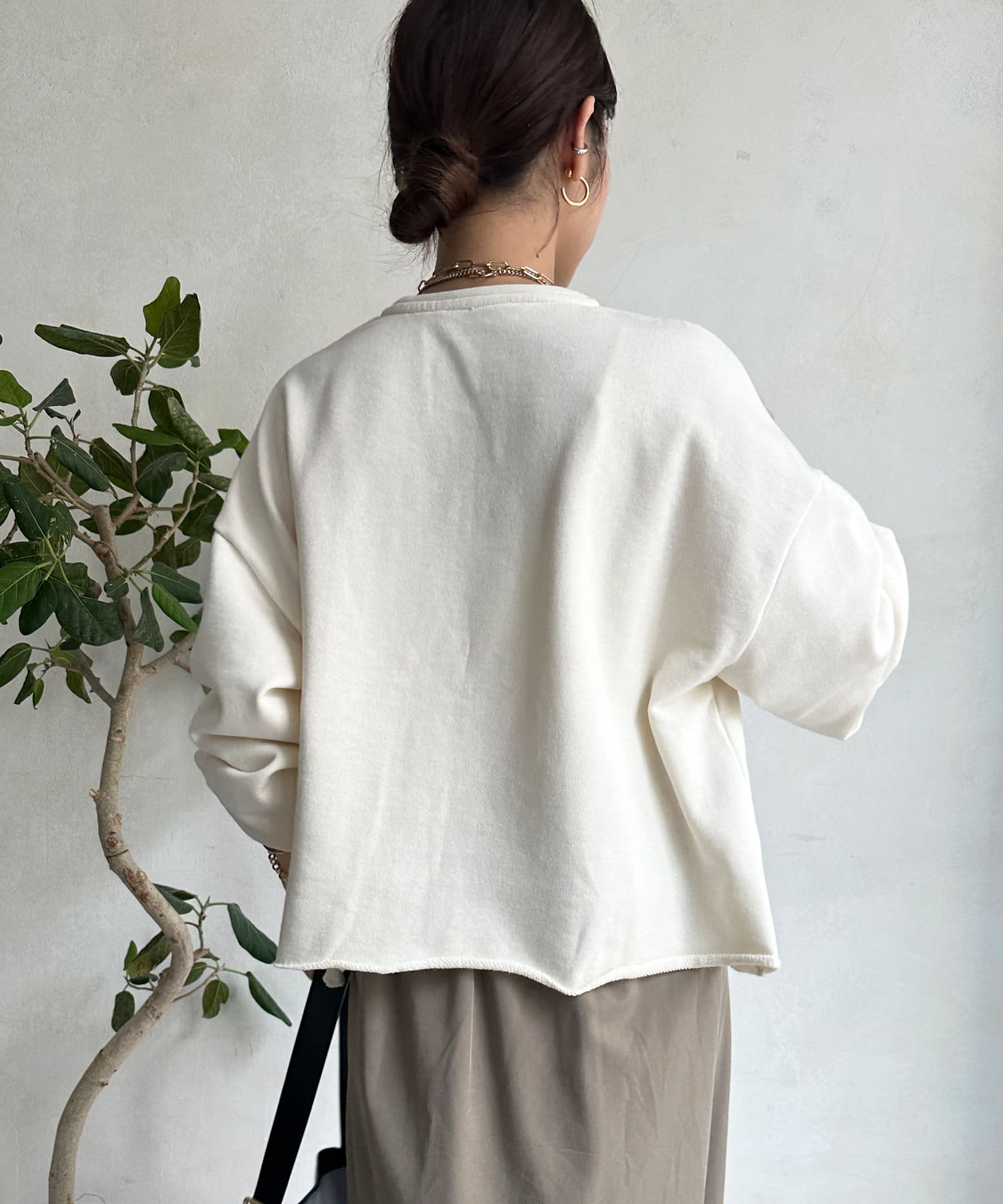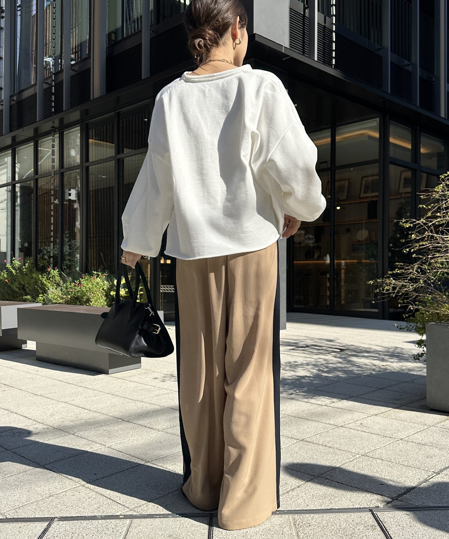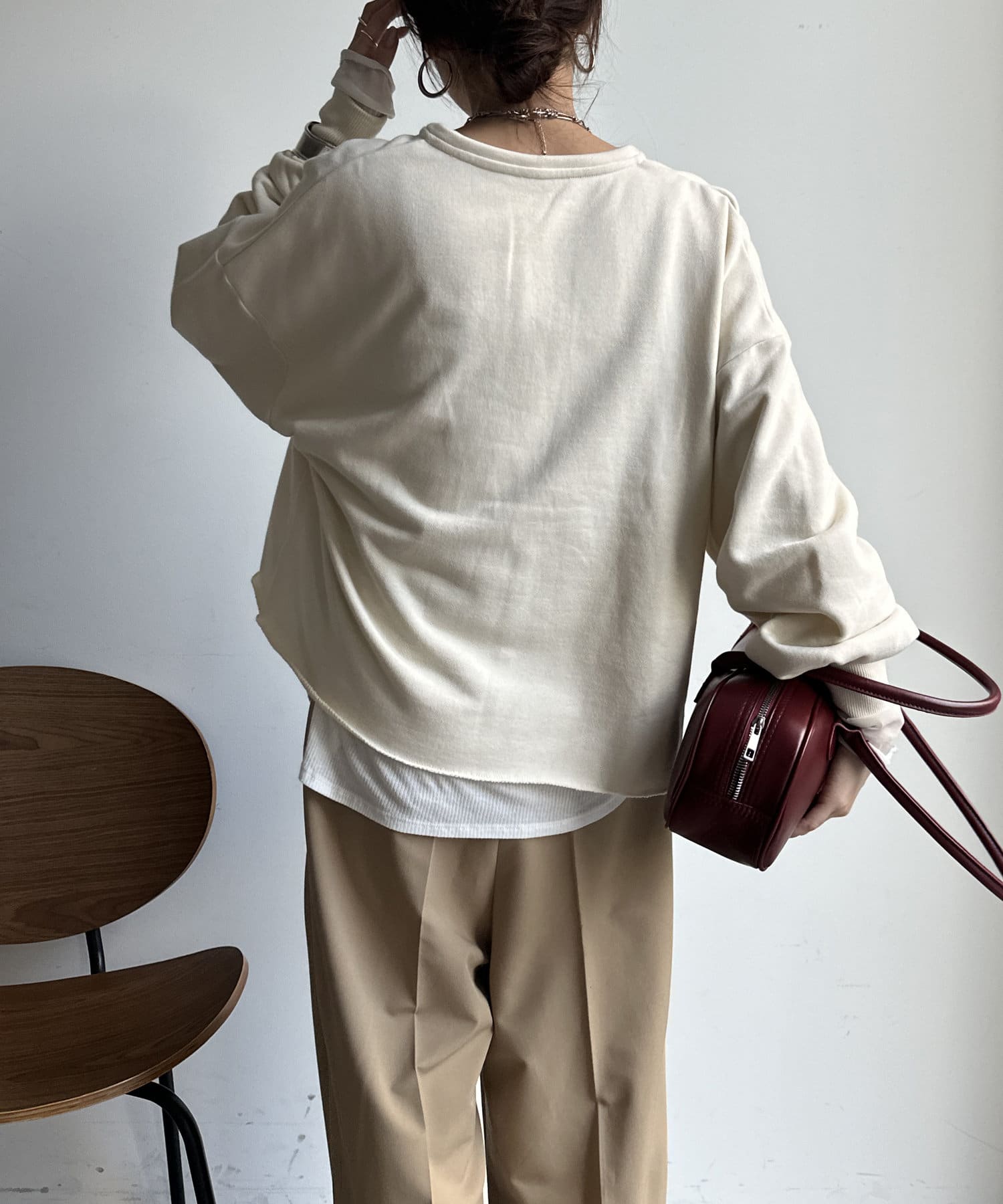 ラフな印象の裏毛スウェットにデザインを加えておしゃれに仕上げた1着。
