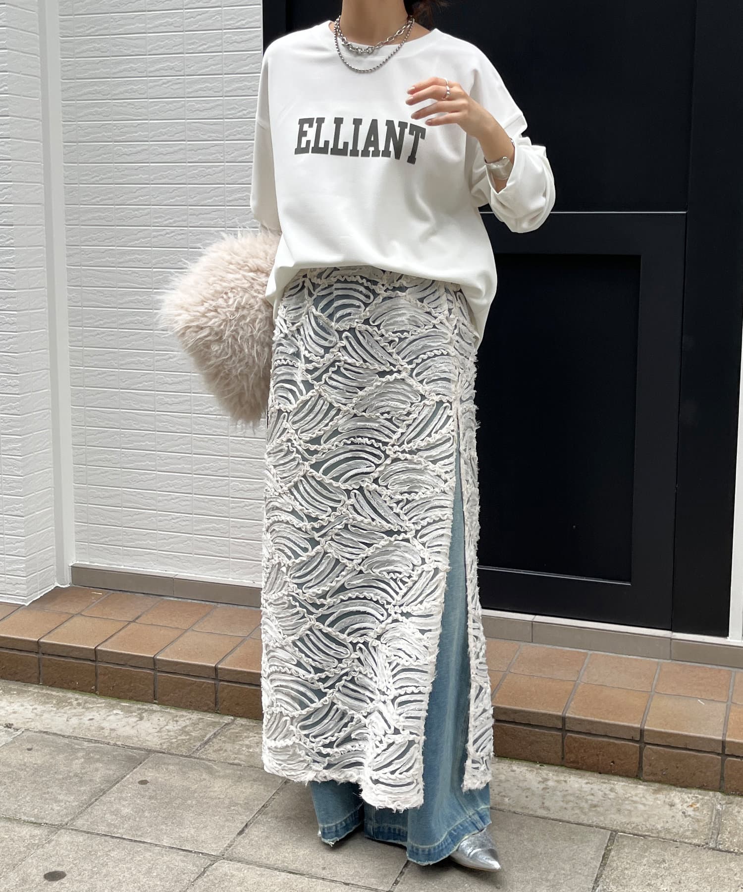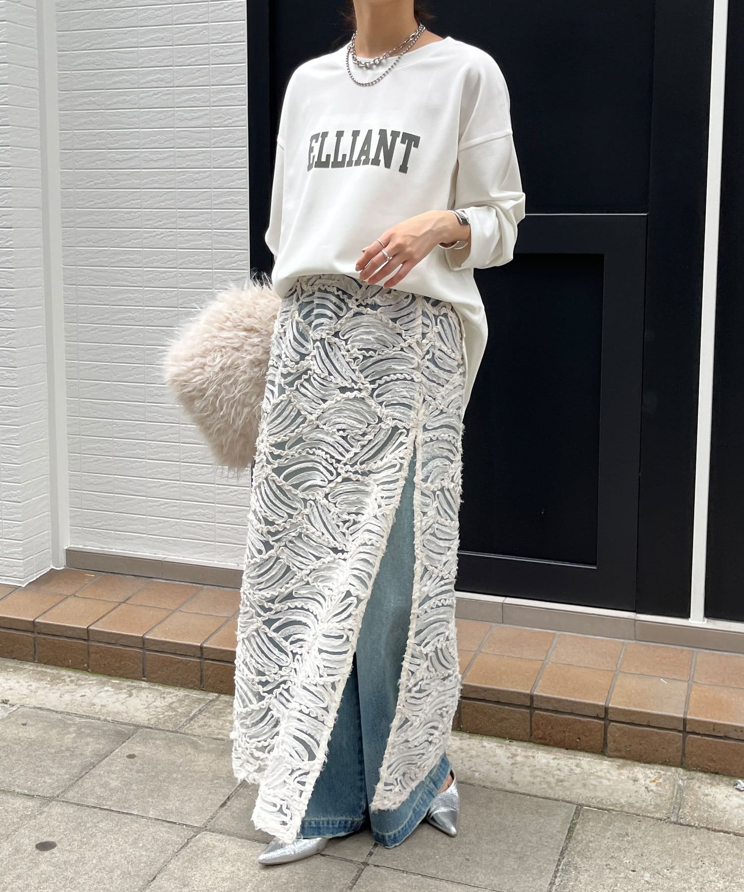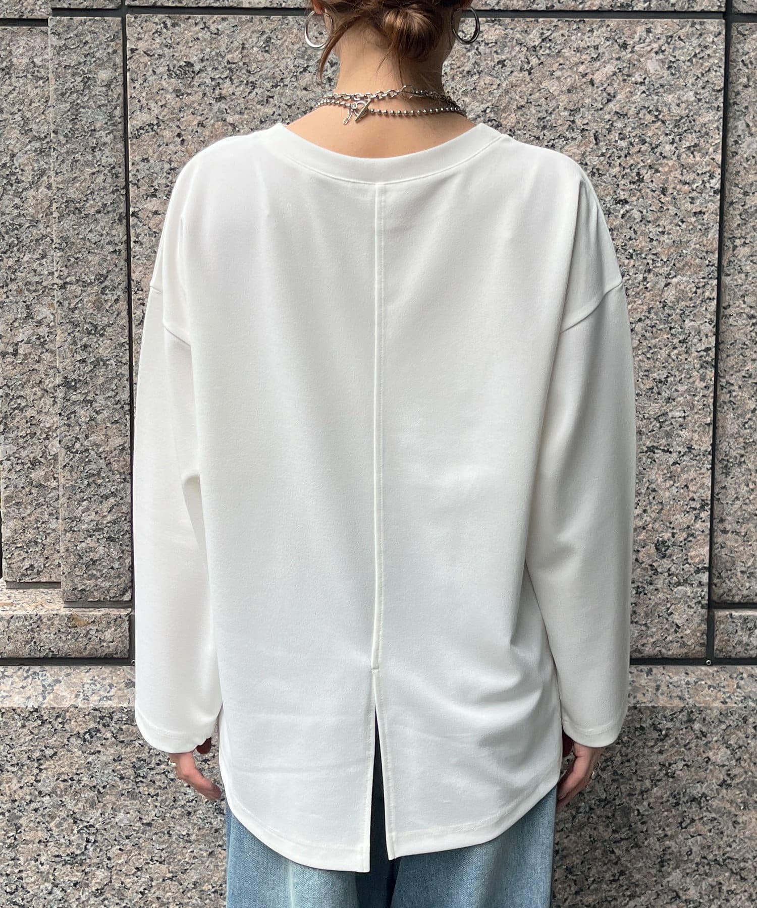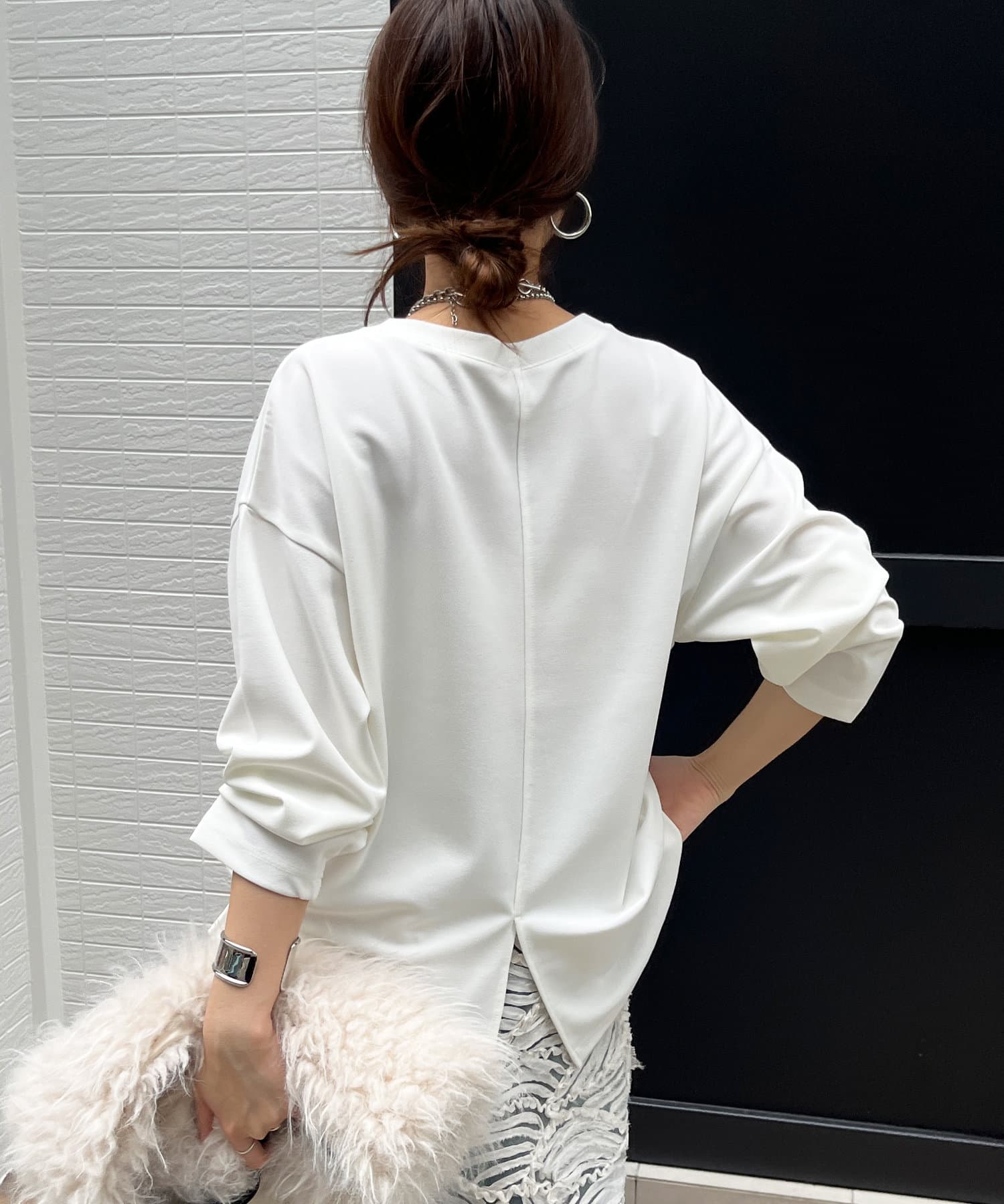 バックにはスリットを加え、後ろ姿に抜け感をプラス。