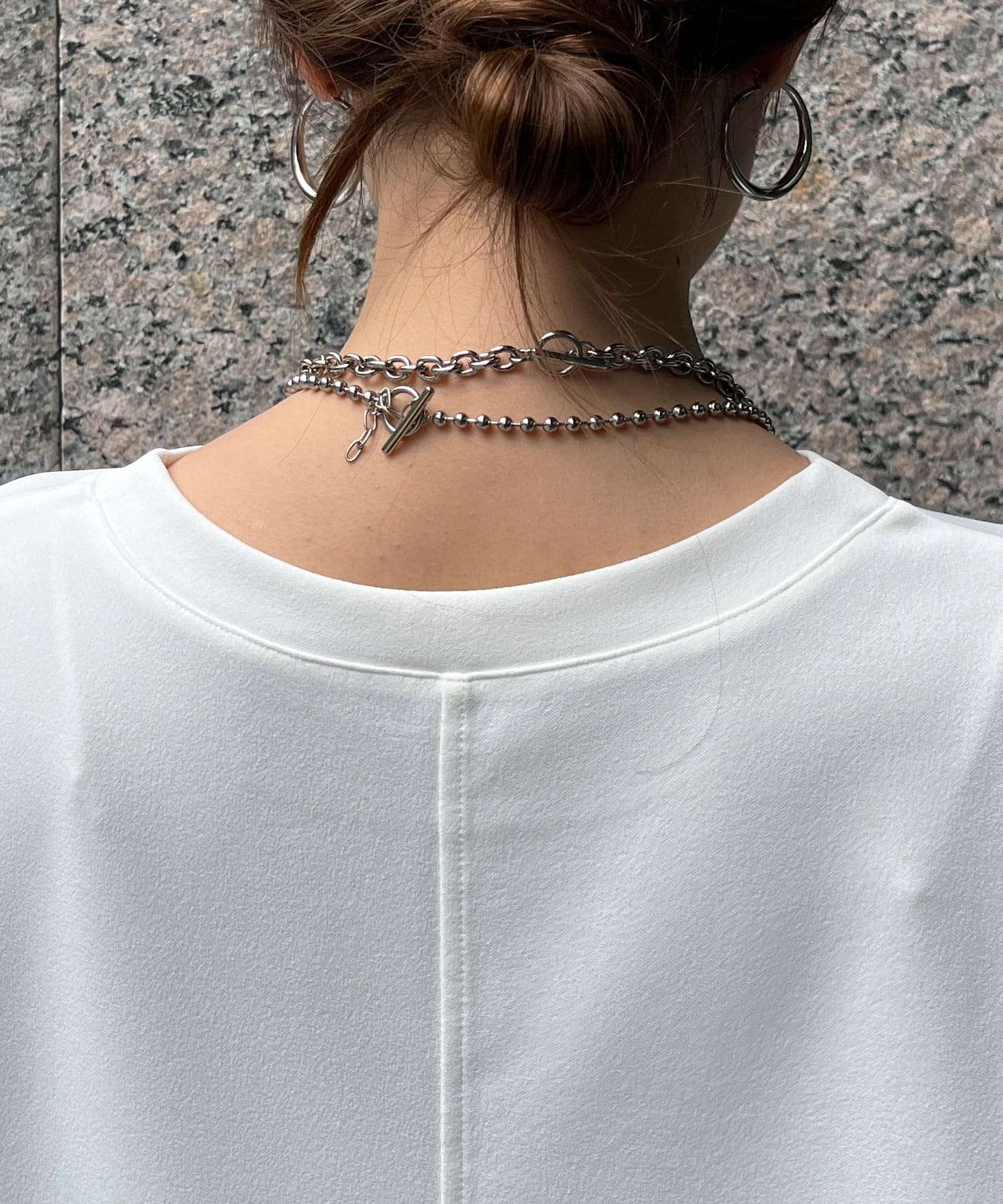 カジュアルさもありながら、ジョーゼット素材のきれいめな印象もプラスし、大人なスタイルに仕上がります。