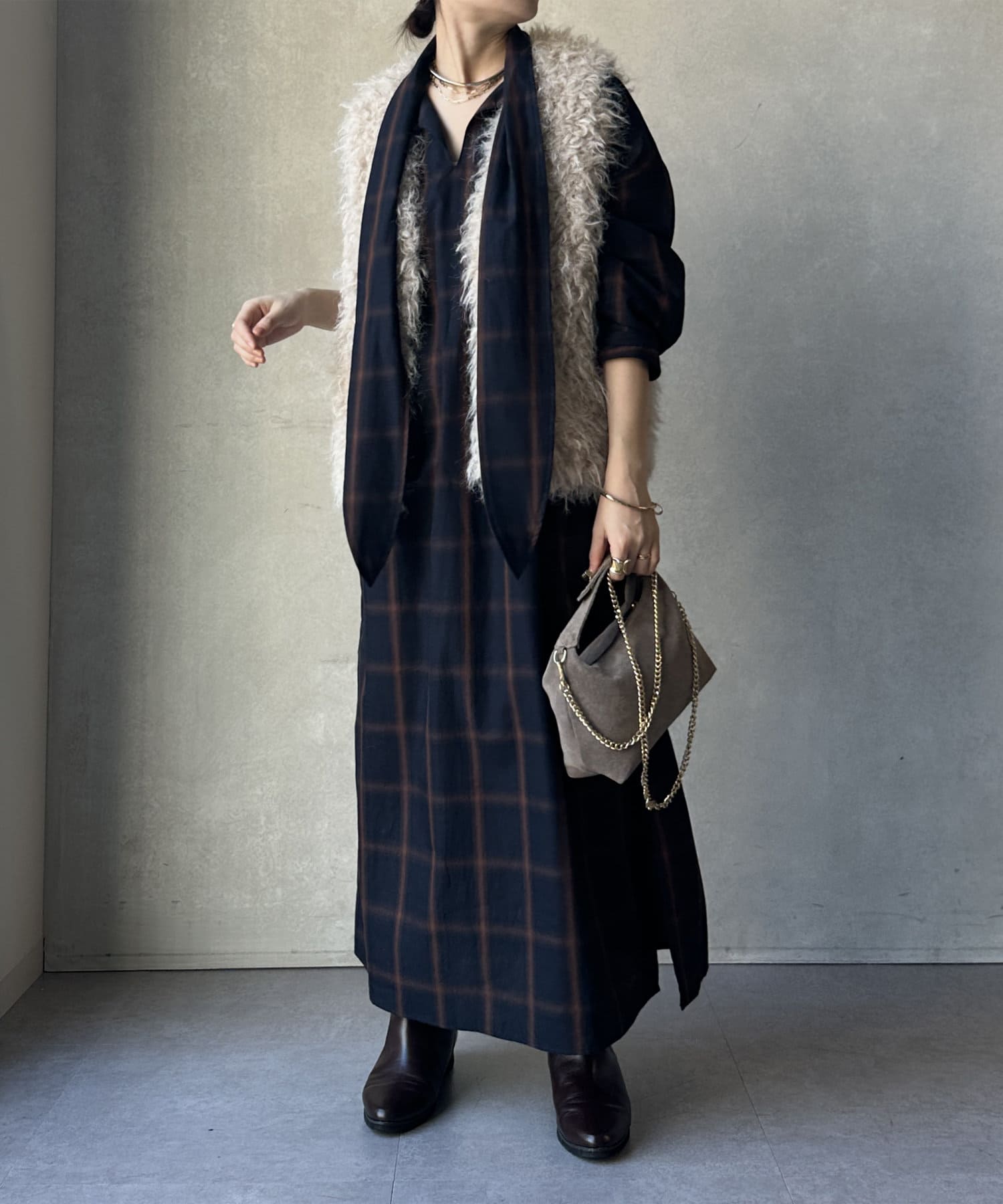 初秋はカットソーやワンピースなどの羽織りに、冬になるとニットやジャケットなどとのレイヤードなど。ロングシーズン着こなしを変えて楽しめる1着ですよ。