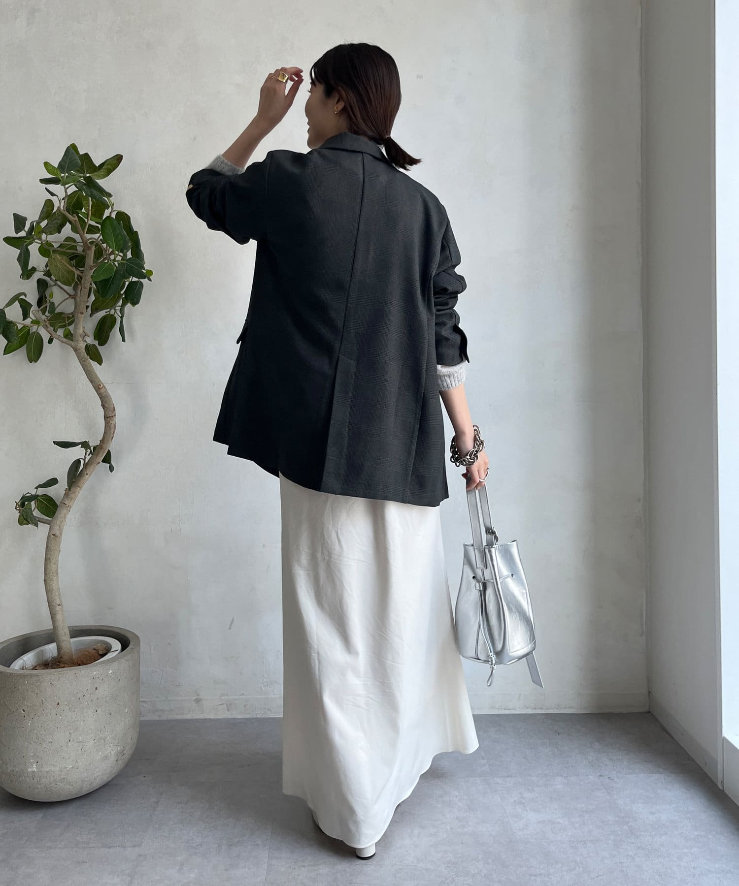 カチッと硬くなりすぎず、とはいえ緩くもなり過ぎない程よい抜け感を与えます。