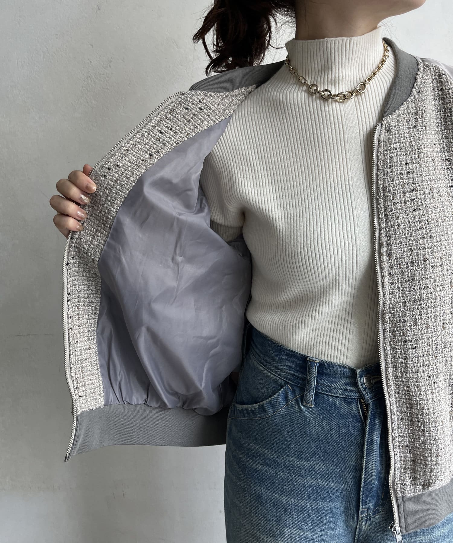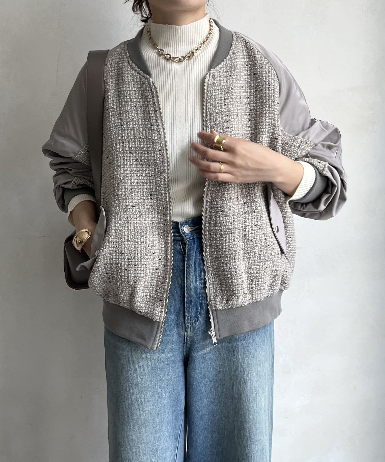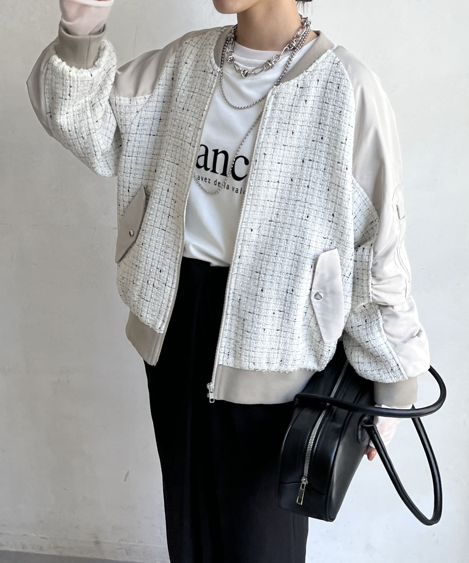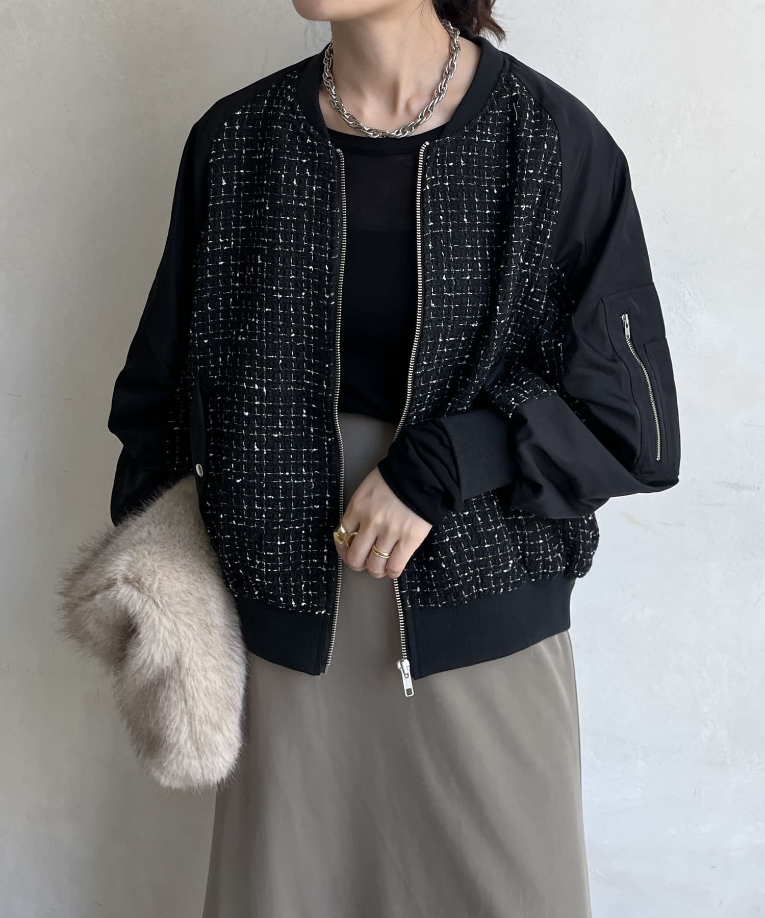 ツイード生地が女性らしさを引き立たせてくれるMA1!