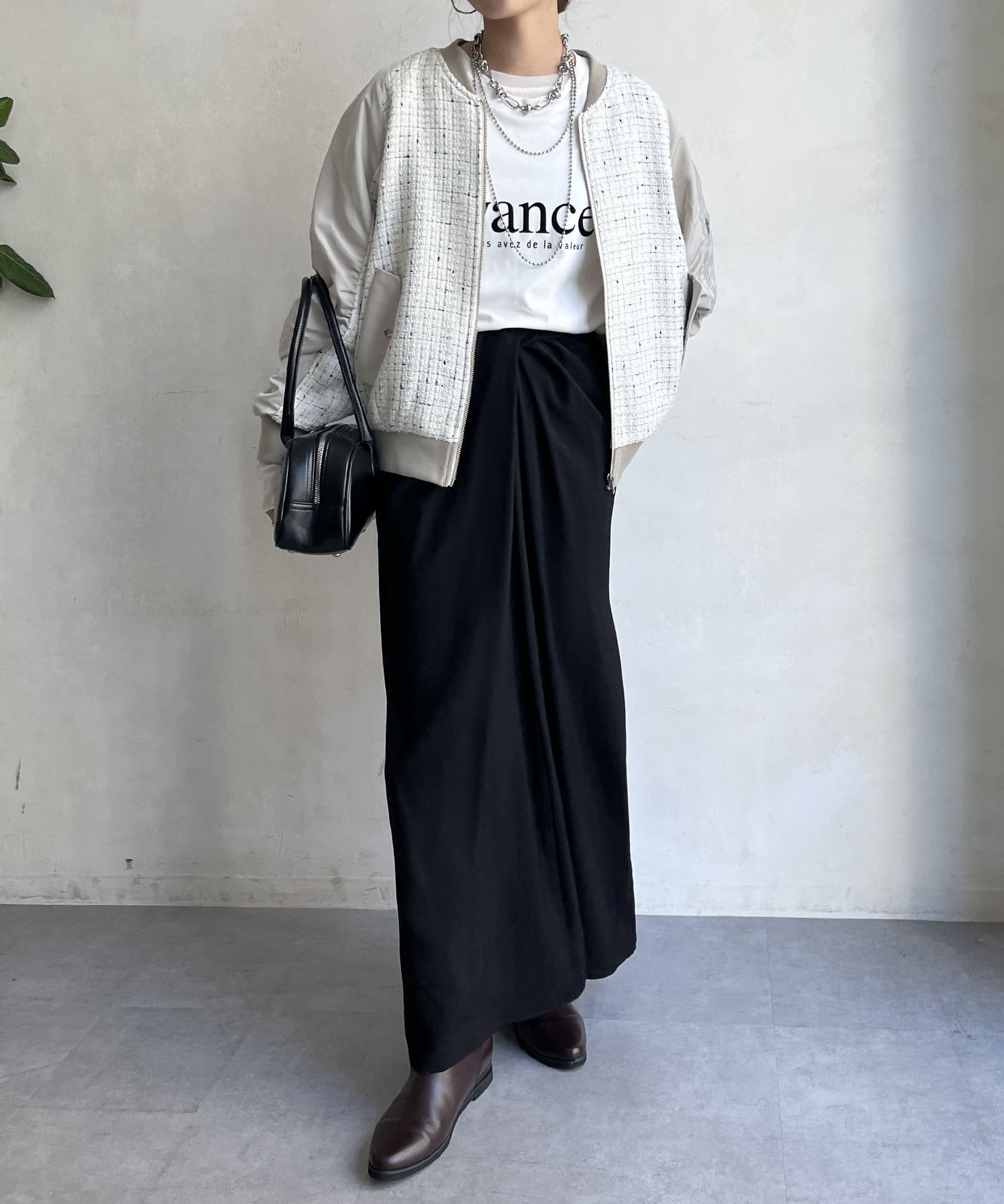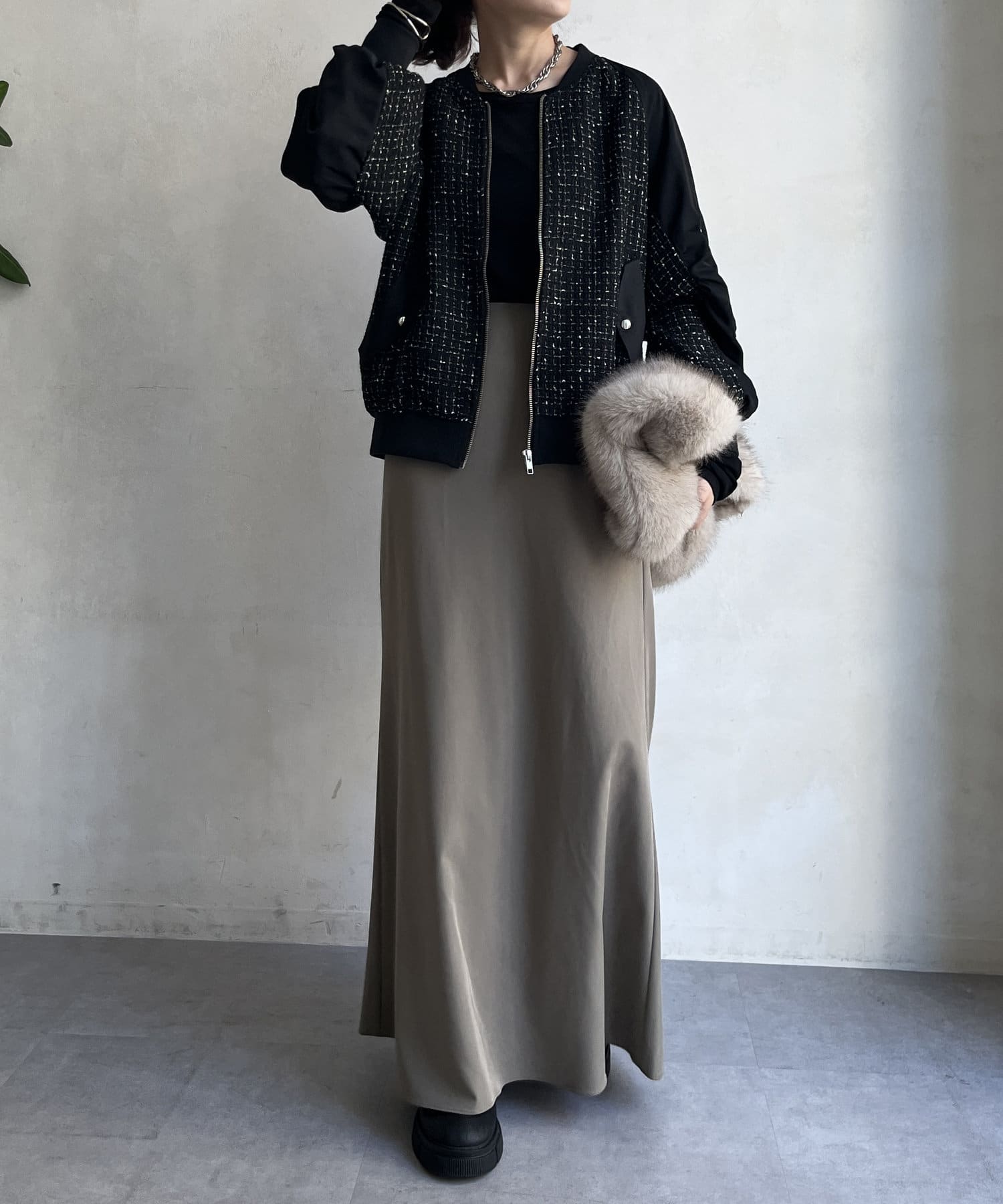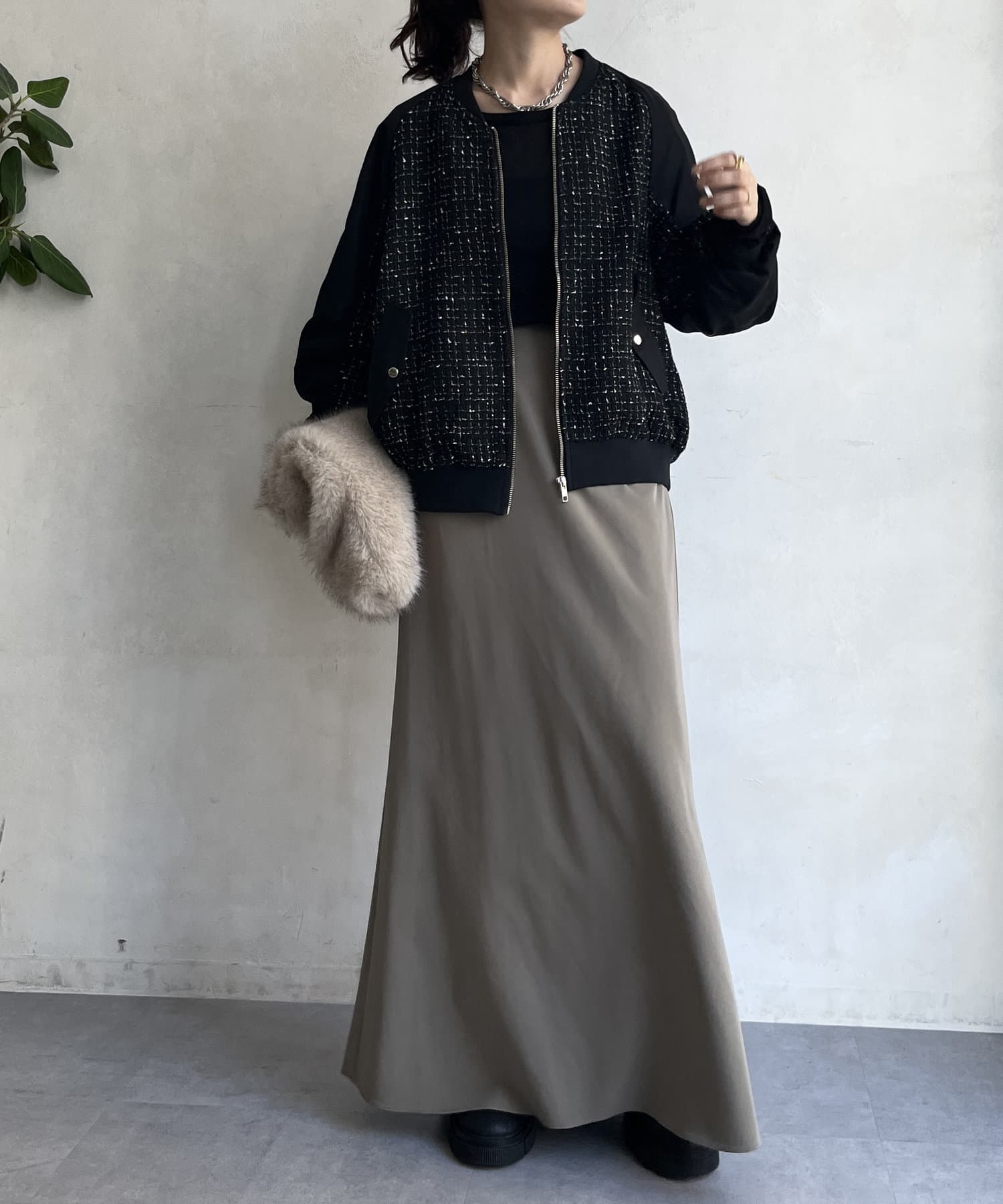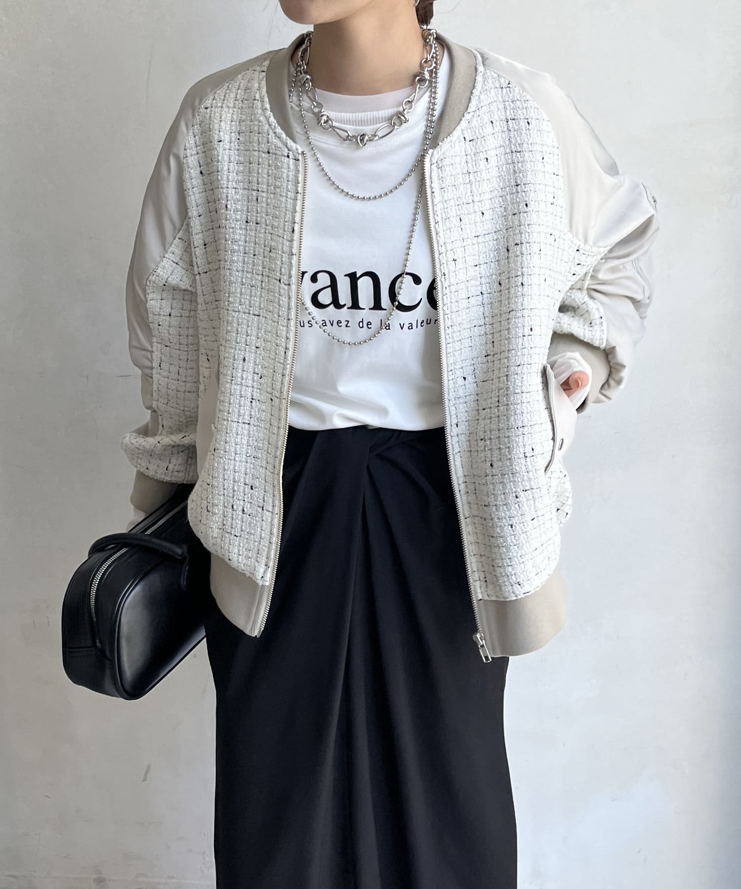 ツイード生地が女性らしさを引き立たせてくれるMA1!