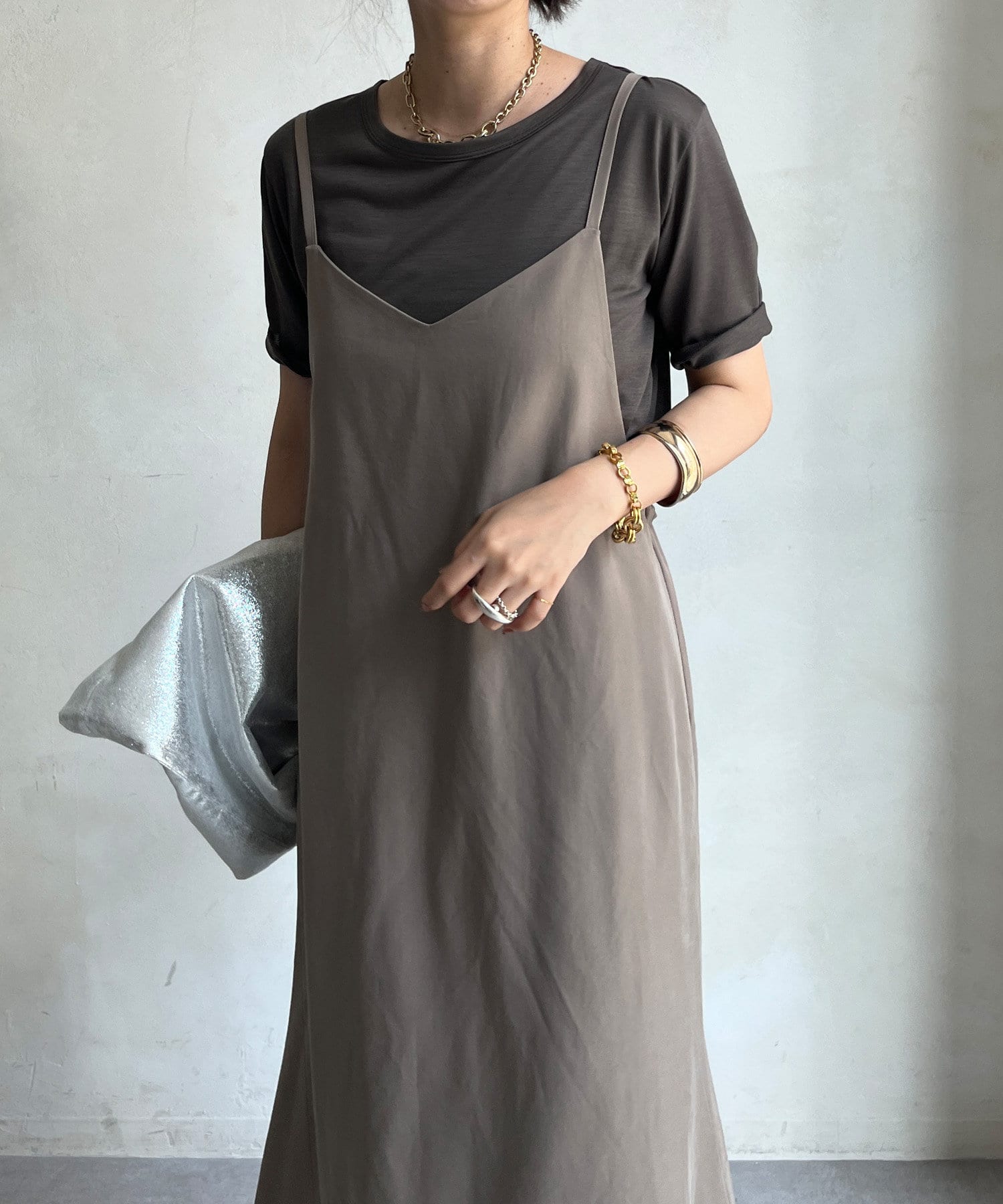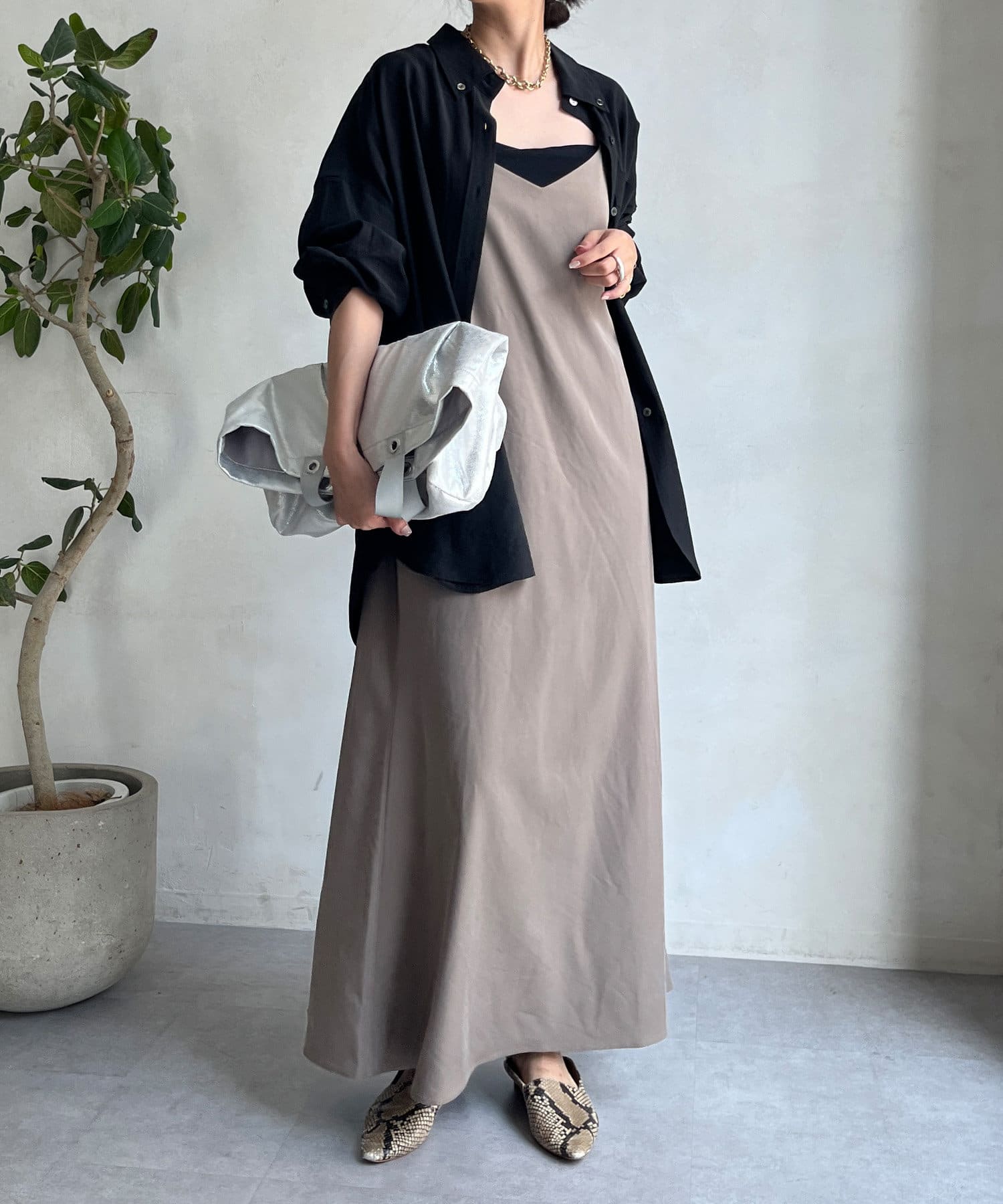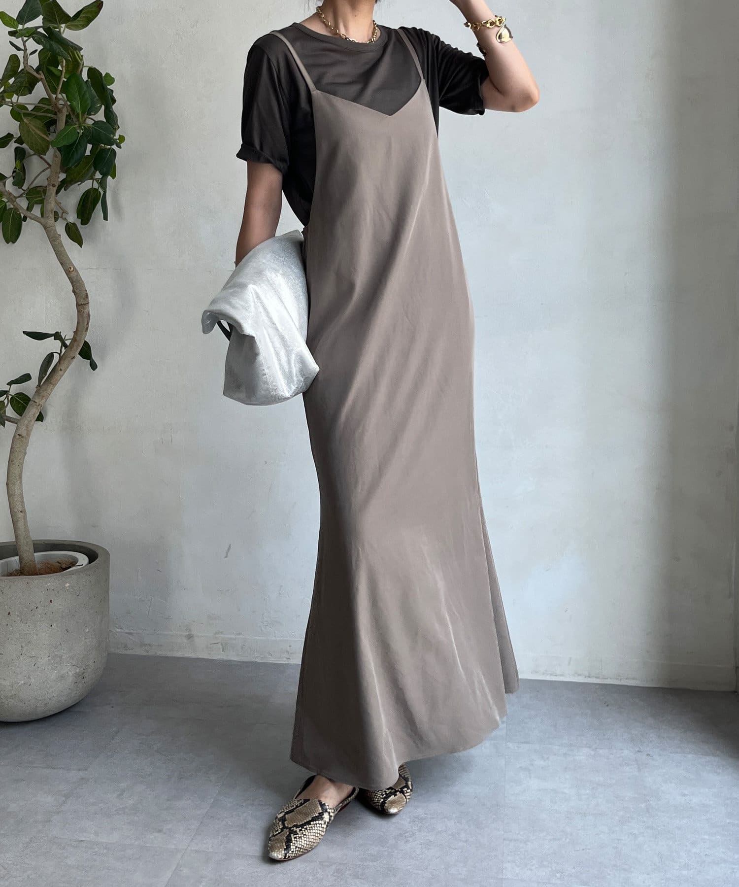 上品素材のキャミワンピース!
