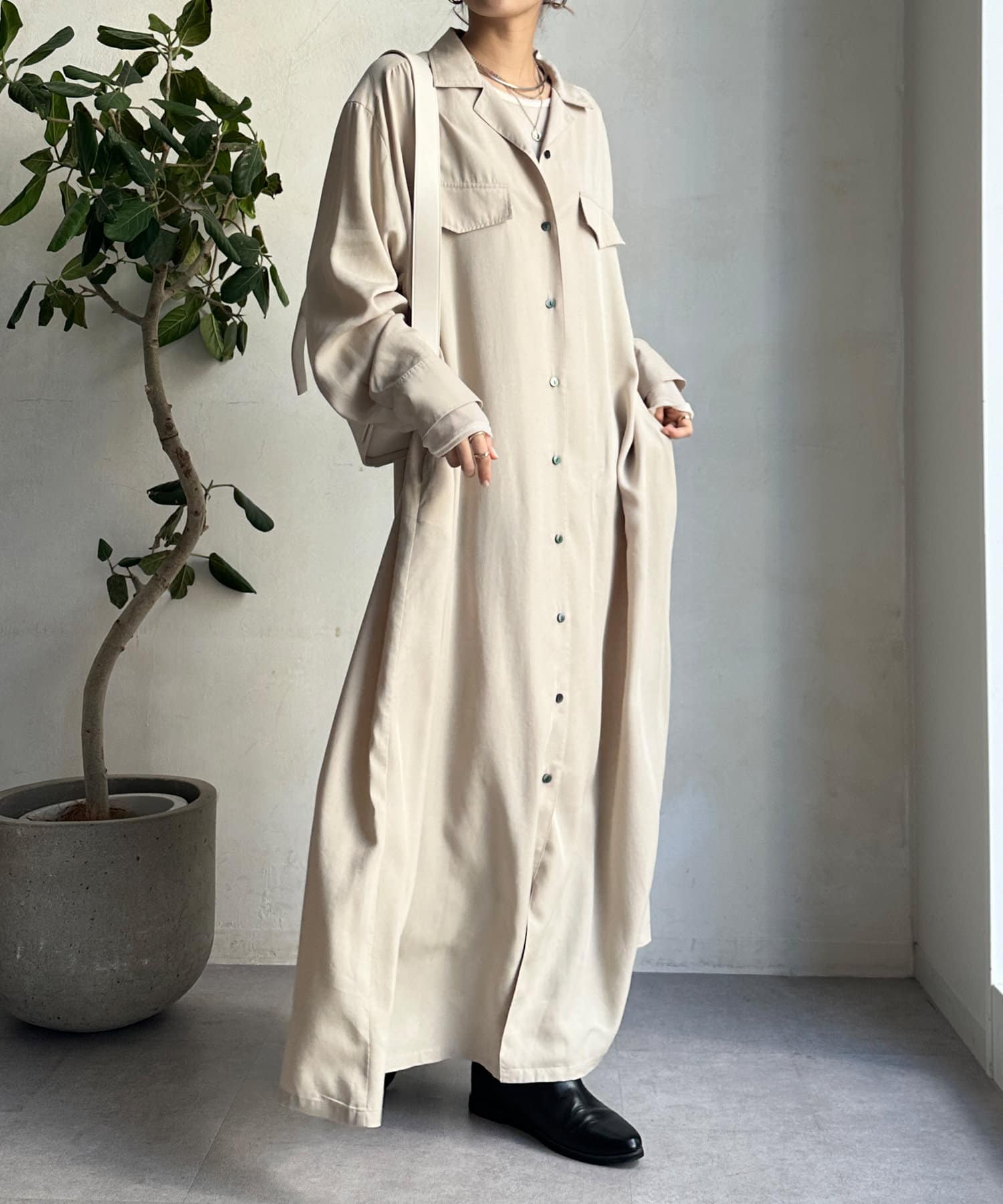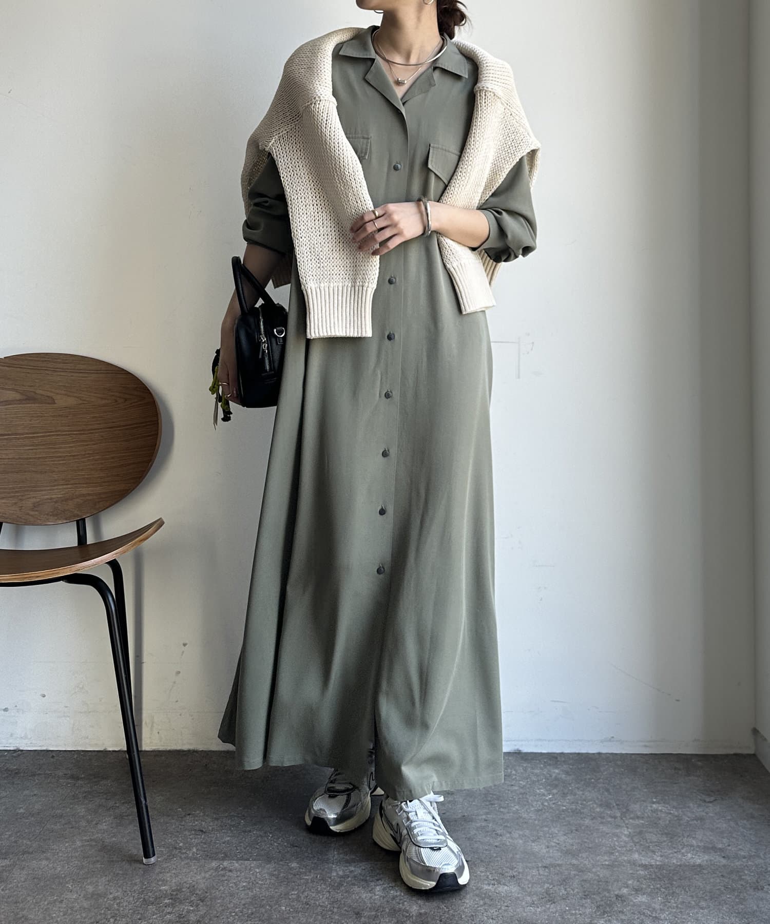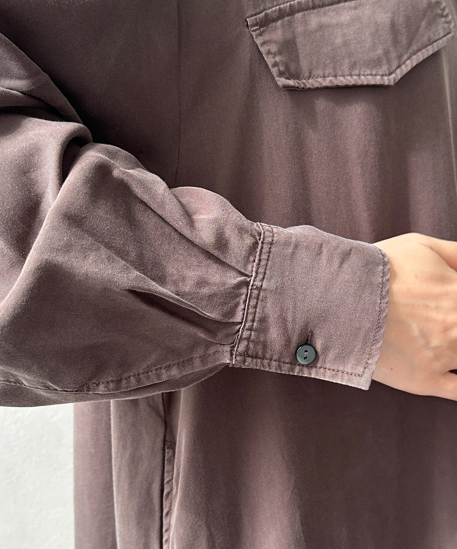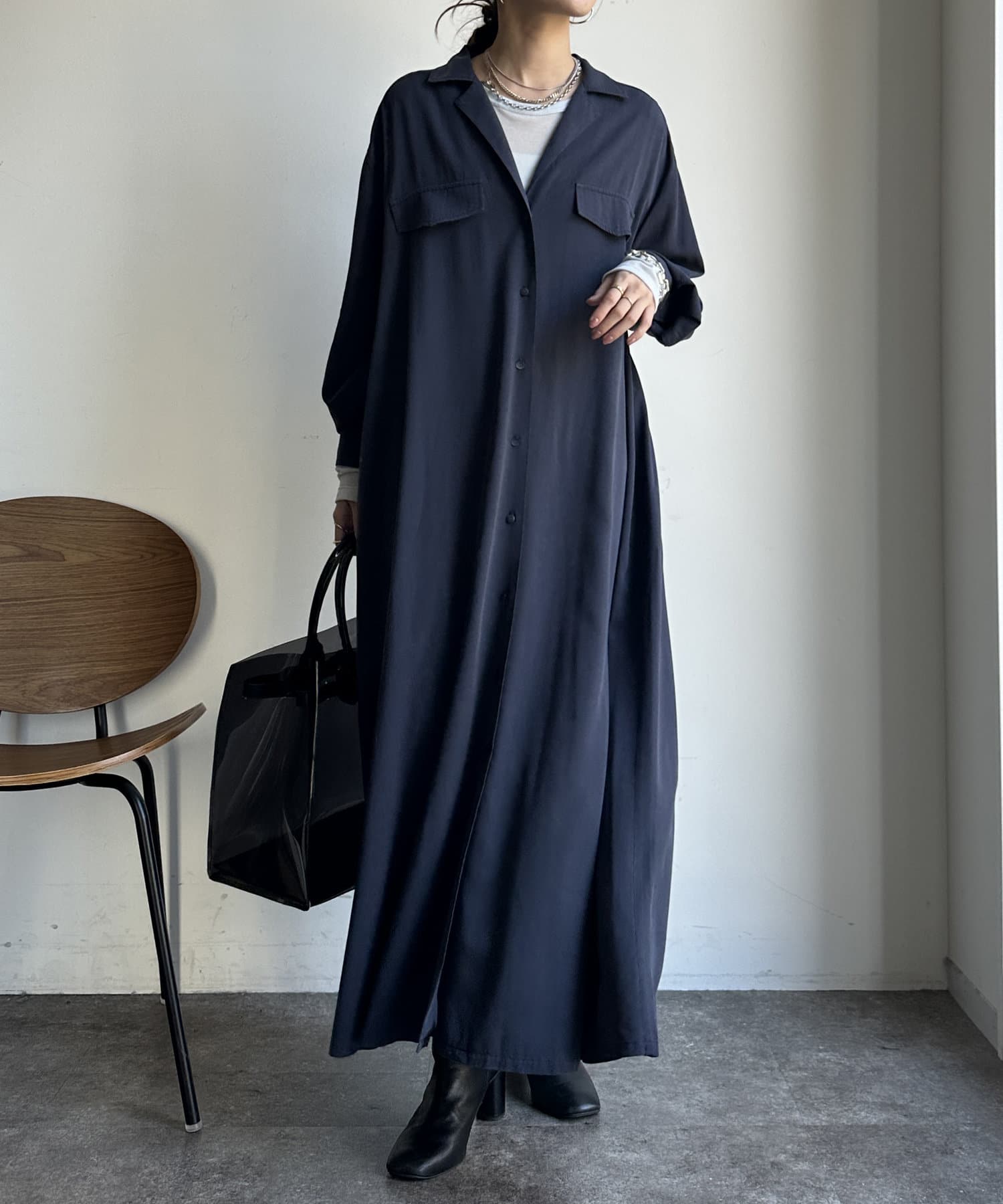 セルロースの落ち感ある素材で仕上げたロングシャツワンピース。