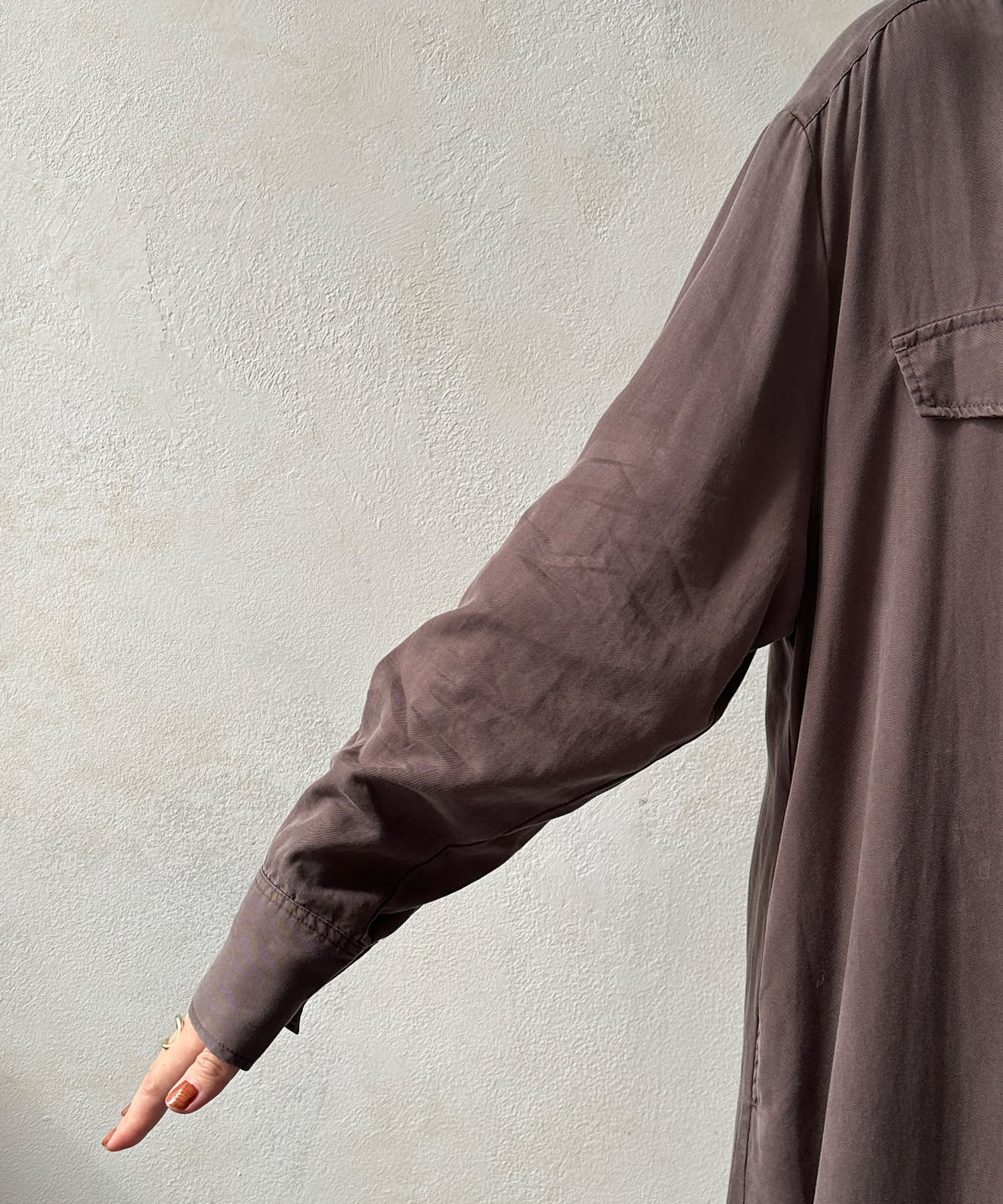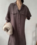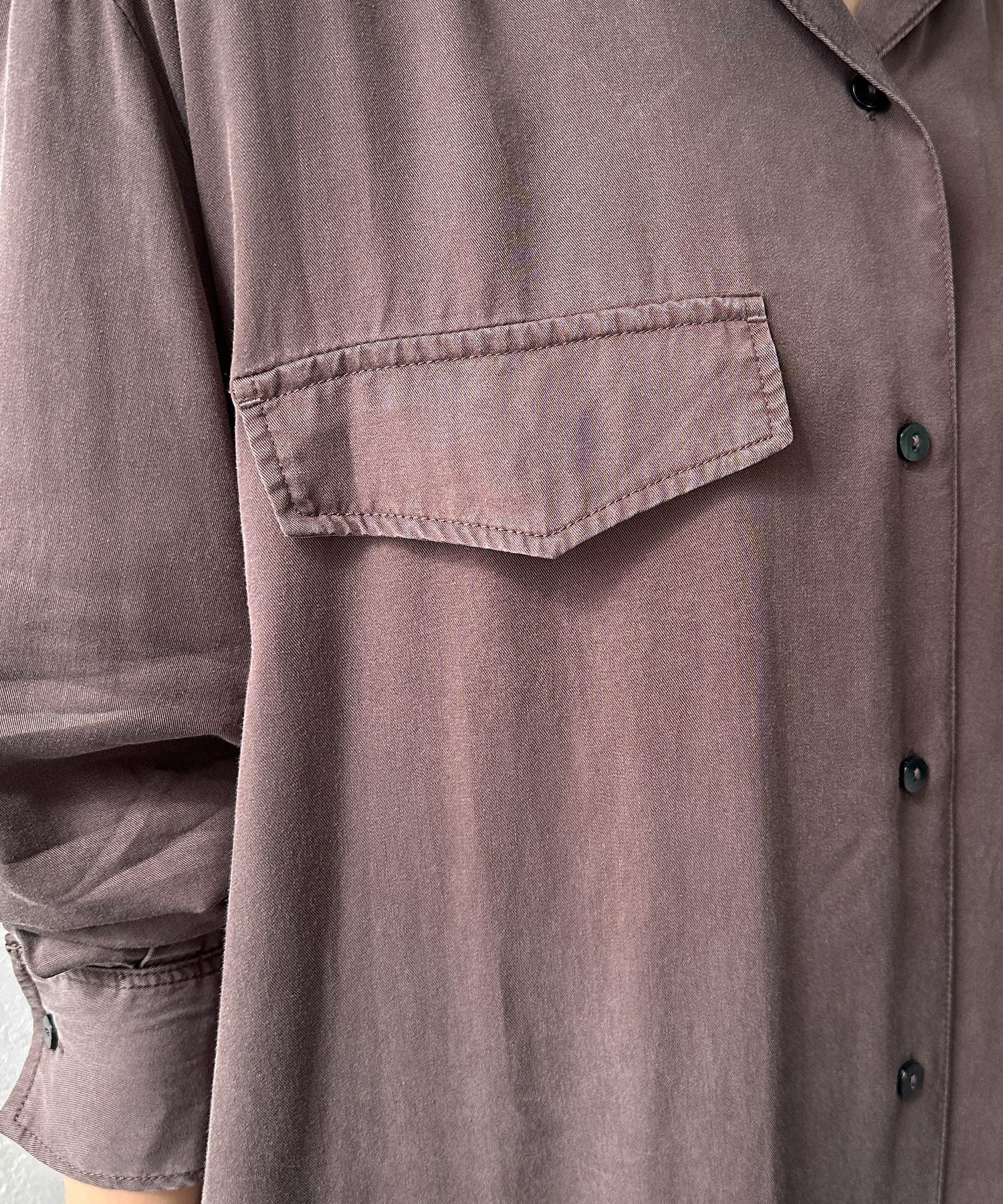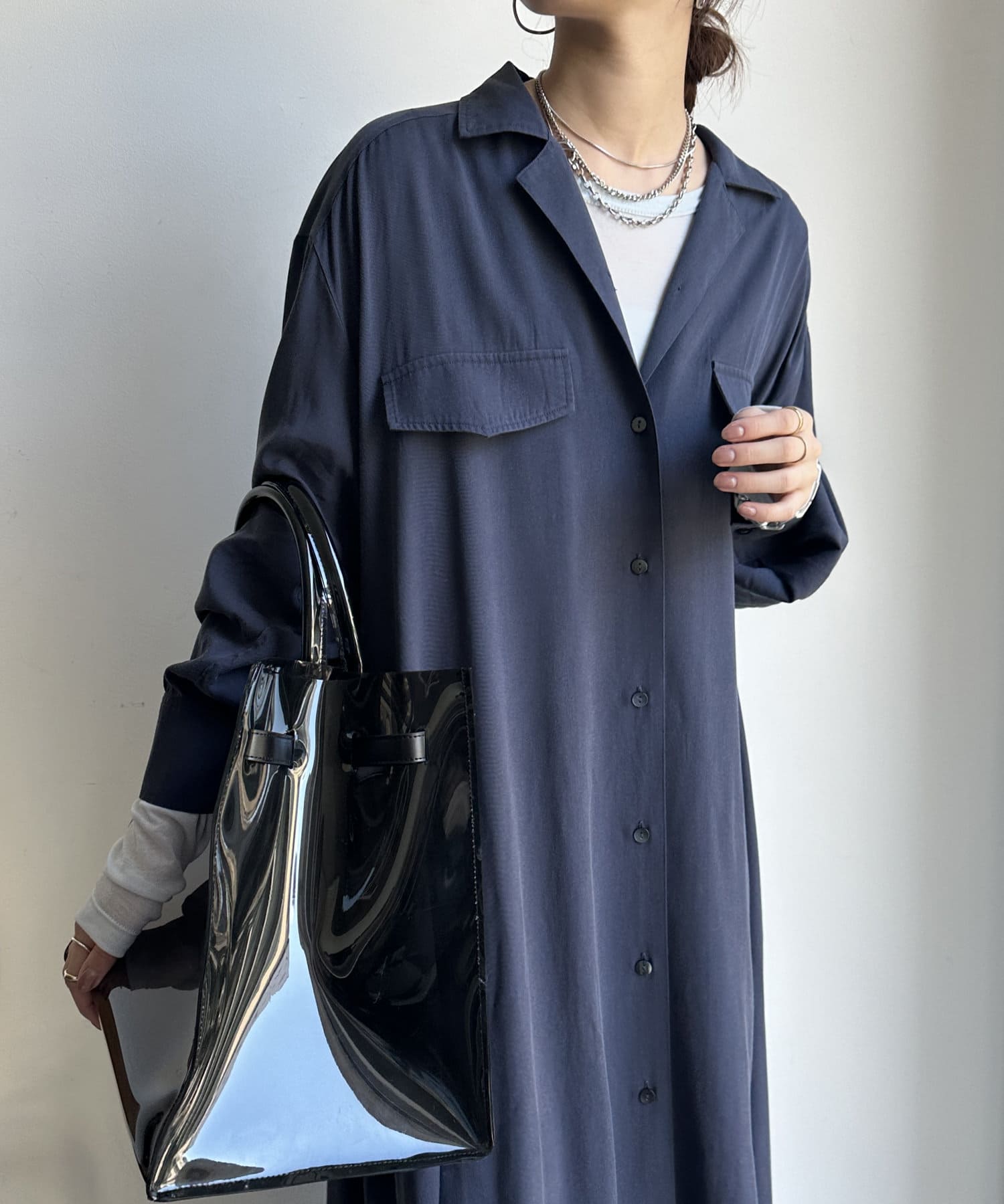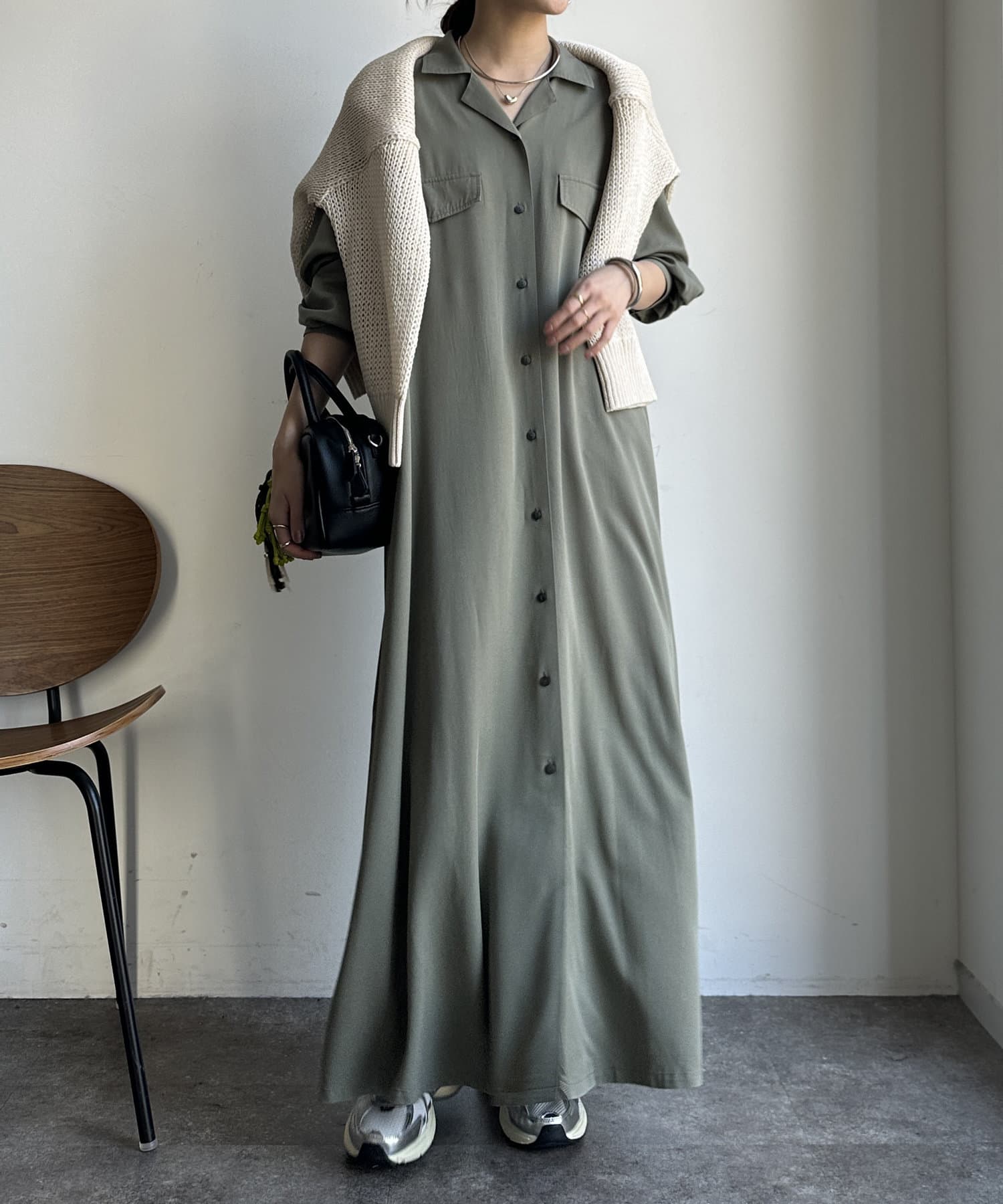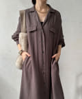 セルロースの落ち感ある素材で仕上げたロングシャツワンピース。