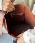 丸底でマチをたっぷりと取ったバケツ型デザイン。
