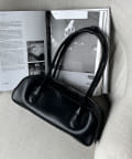 上質感のあるレザーの風合いと独特のフォルムがモダンなデザインがスタイリングを上品に。