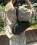 上質感のあるレザーの風合いと独特のフォルムがモダンなデザインがスタイリングを上品に。