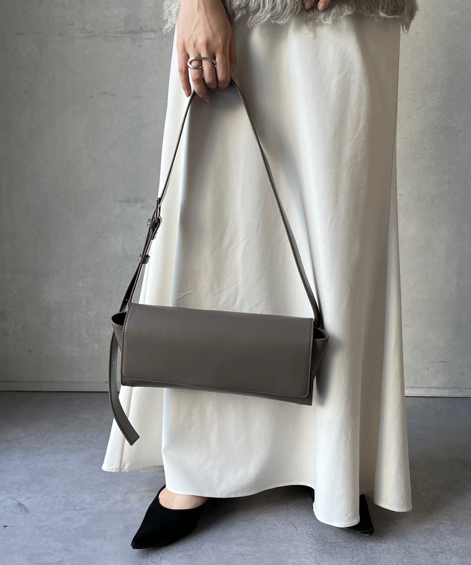 肩紐の長さが調節できるので、肩掛けや斜め掛けなどシーンに合わせて持ち方を変えていただけます!