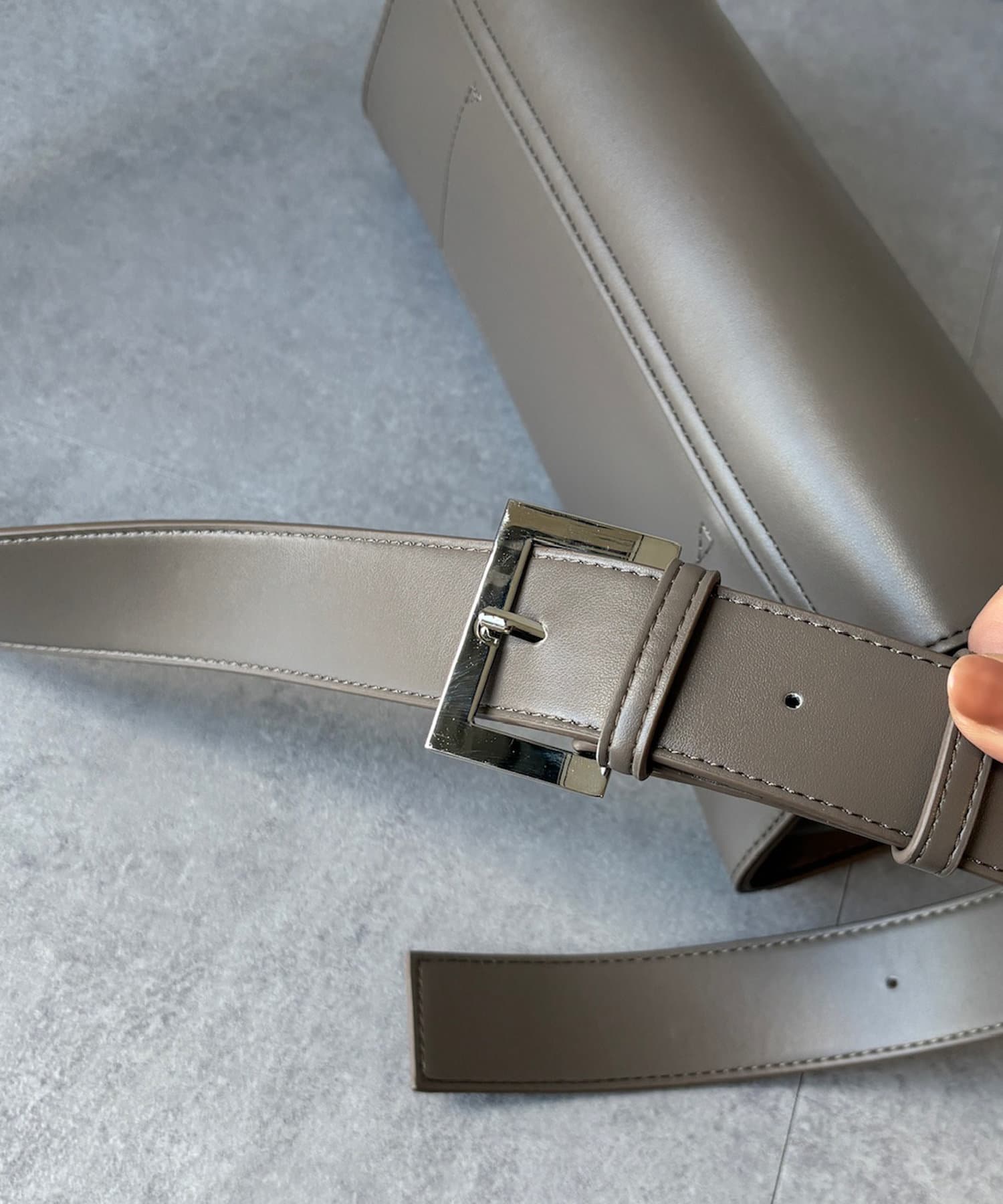 太めのベルトがポイントで、シルバーのバックルがアクセントに!