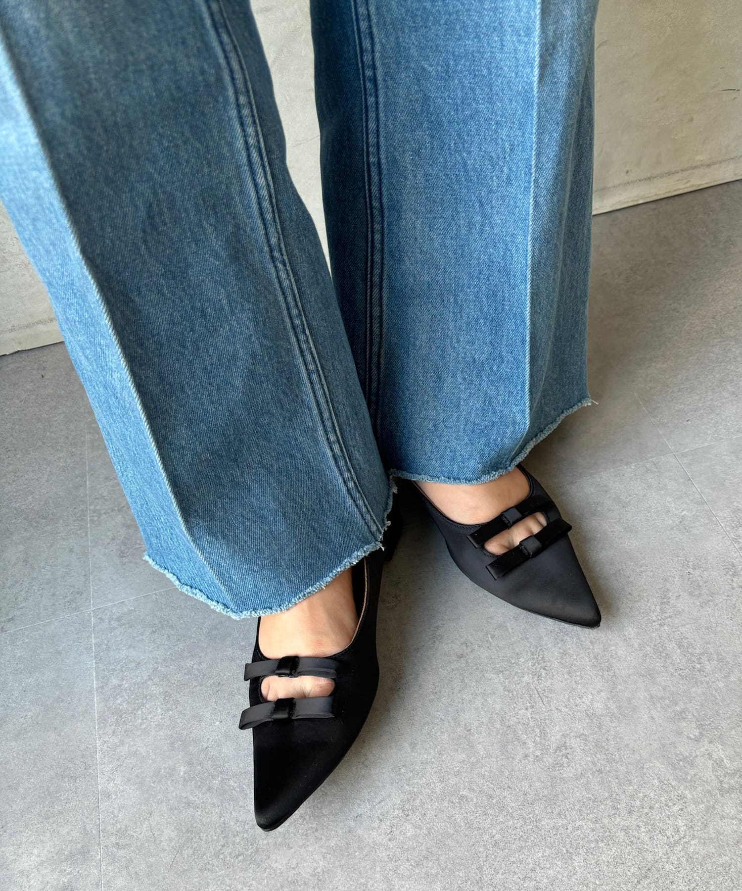 ダブルリボンが印象的なフラットパンプス!