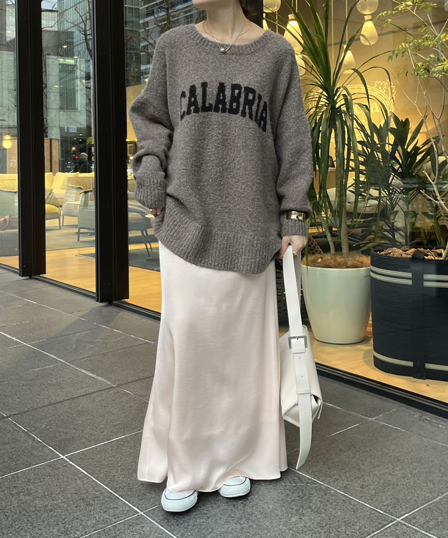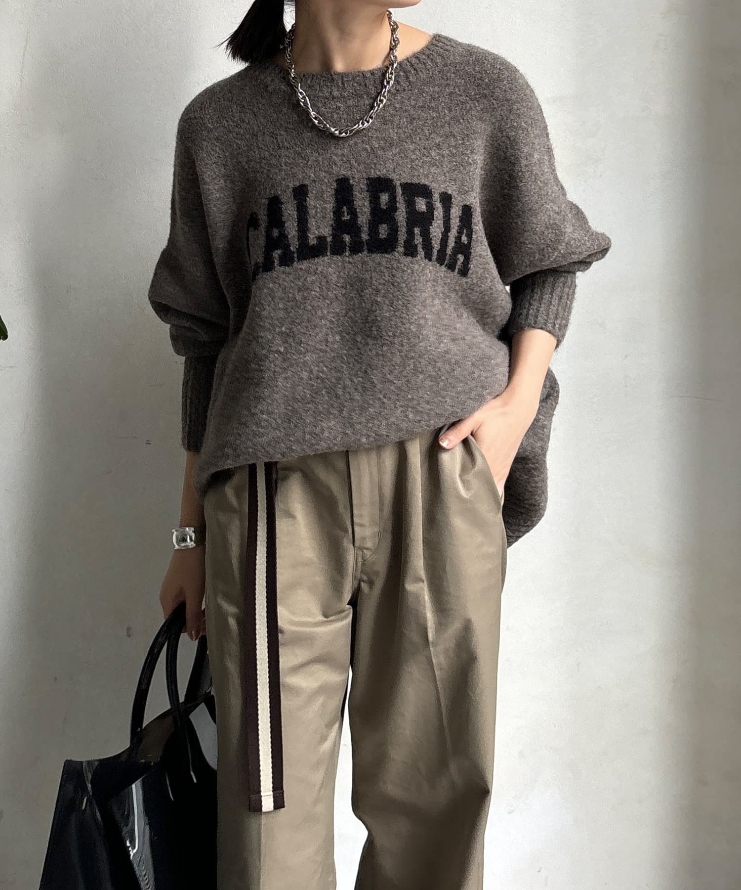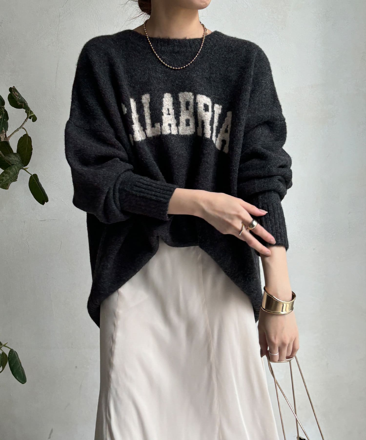 インターシャ編みでコーディネートしやすいシンプルなニットは、スウェットほどカジュアルにはなりすぎず、大人らしく着られるのがポイントです。