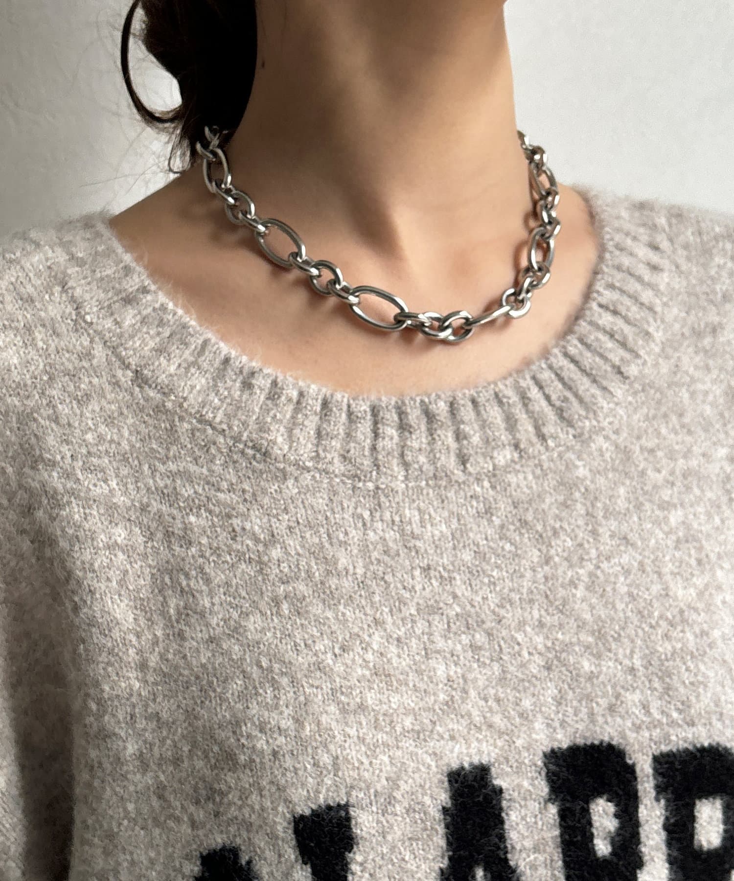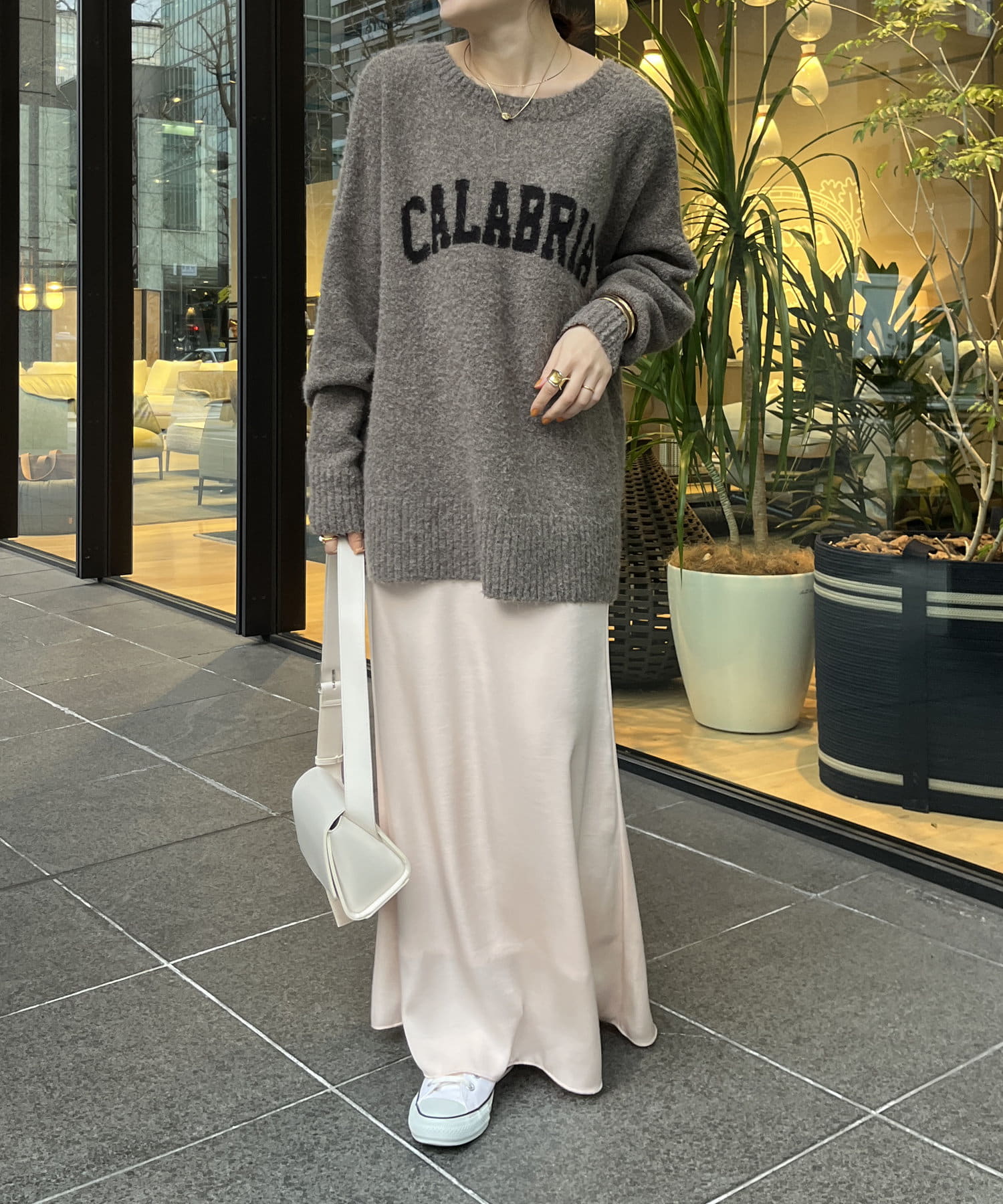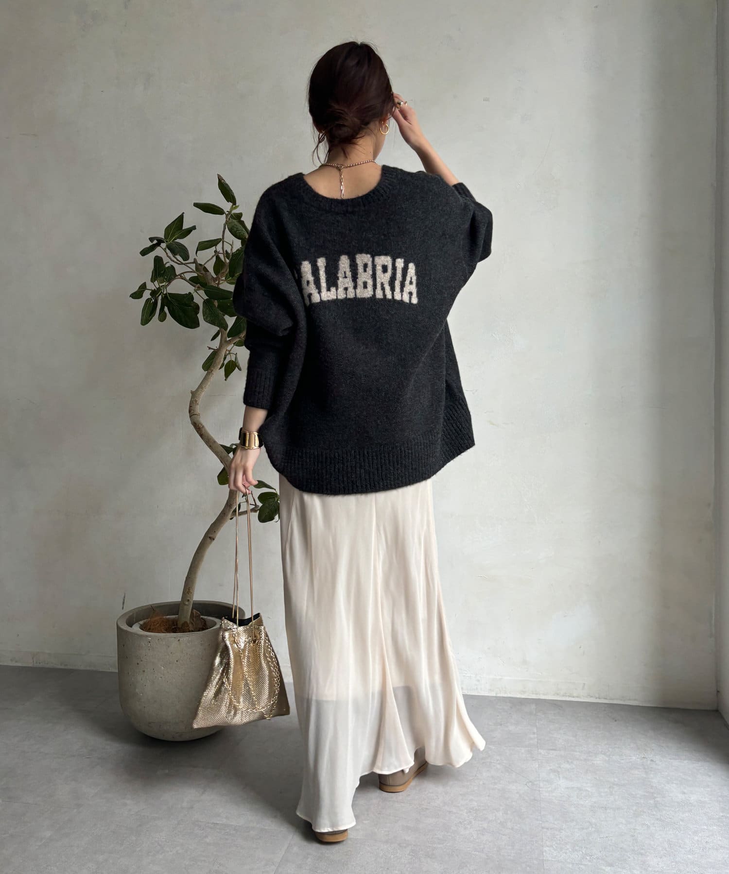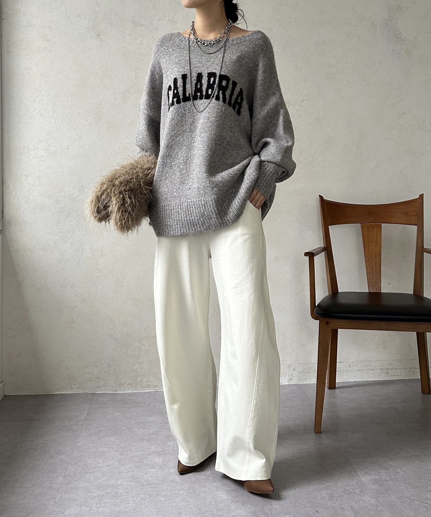 インターシャ編みでコーディネートしやすいシンプルなニットは、スウェットほどカジュアルにはなりすぎず、大人らしく着られるのがポイントです。