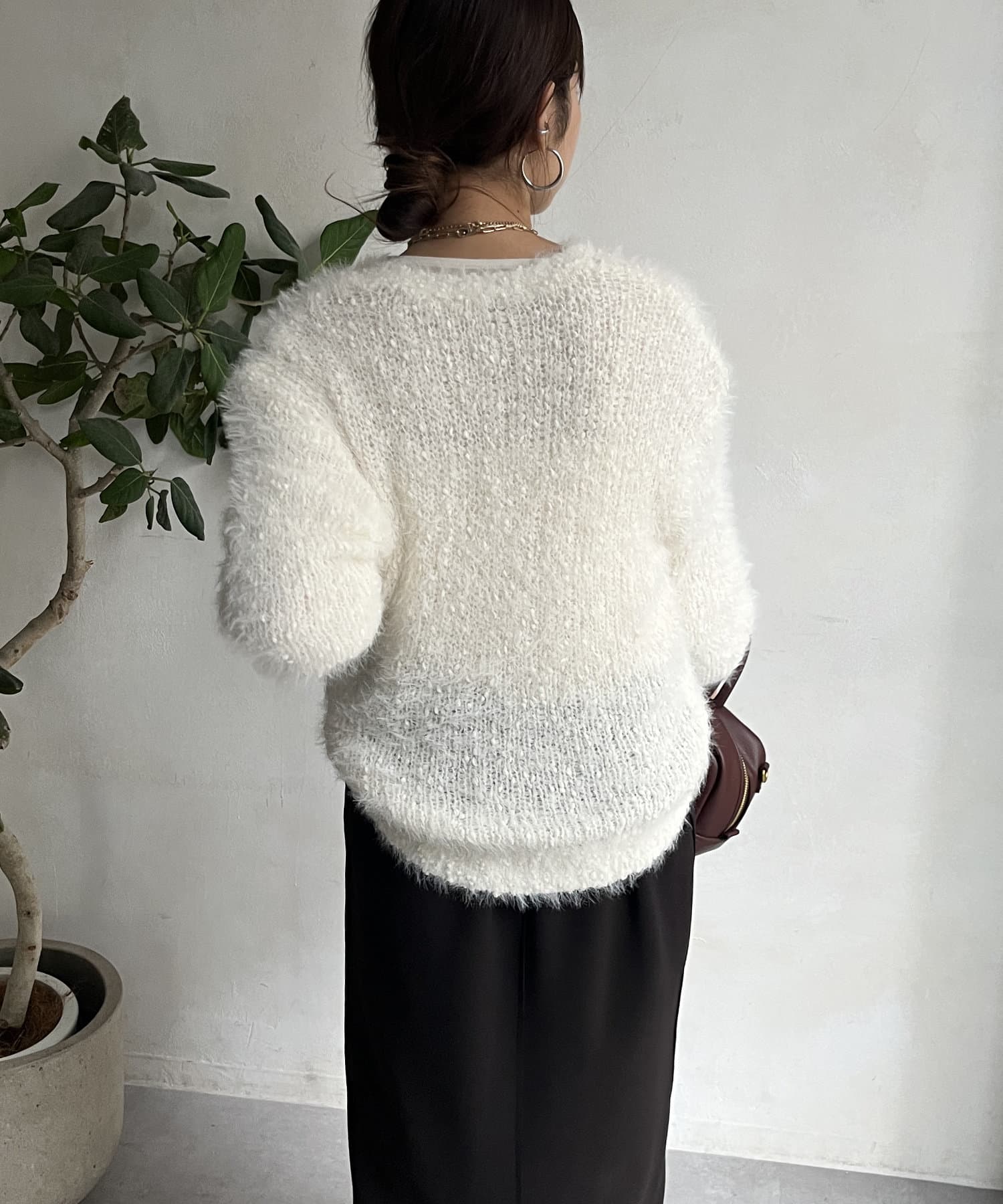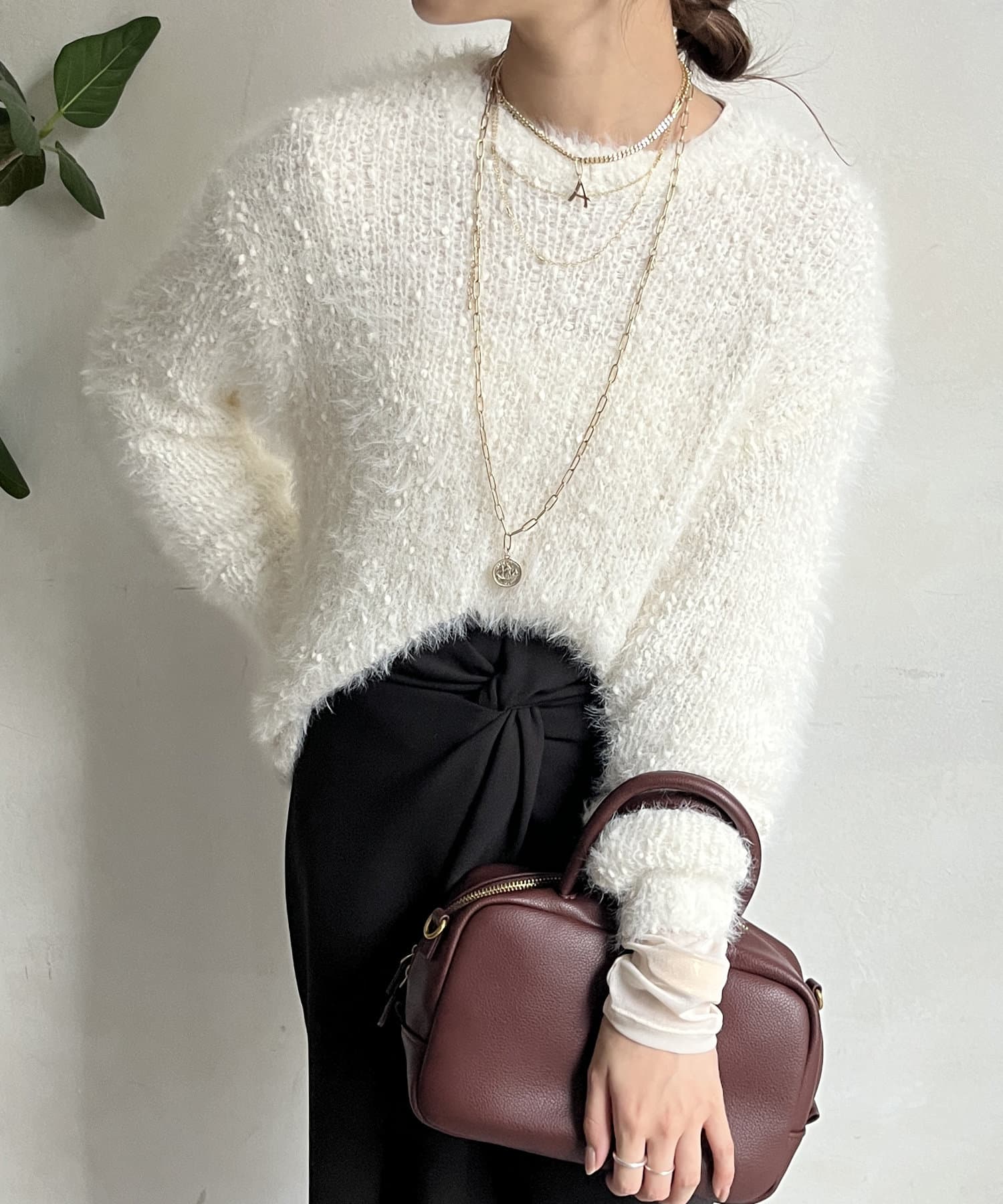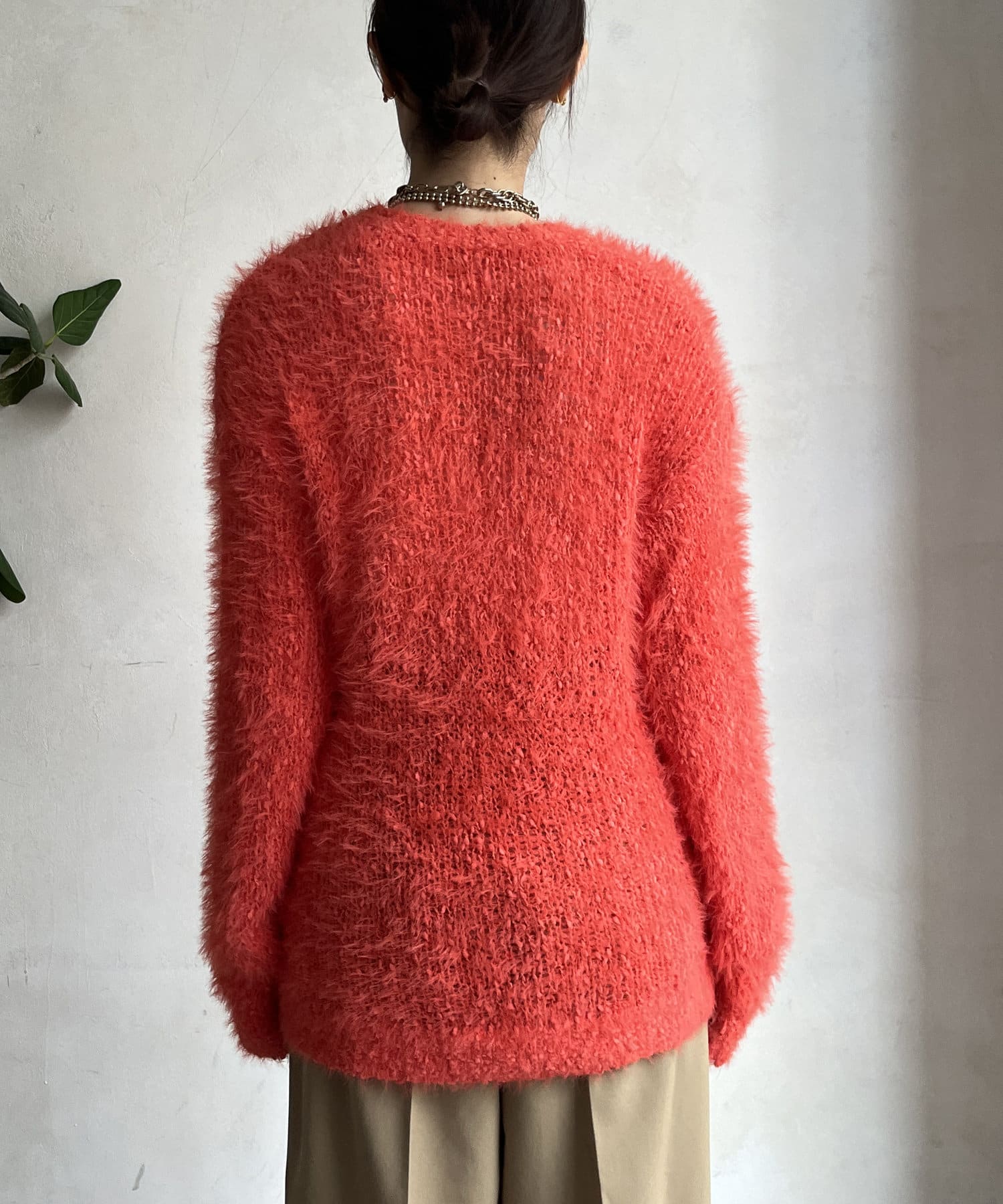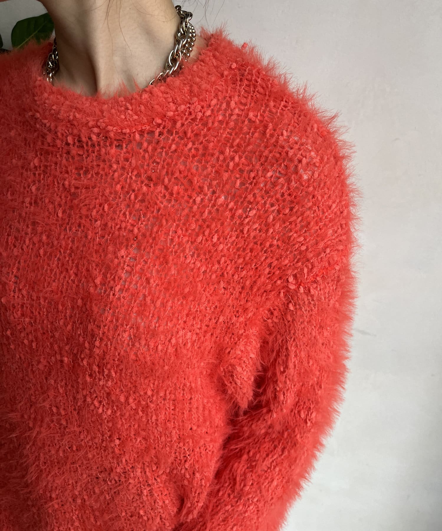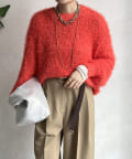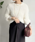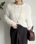 ポコポコしたニットとフェザーヤーンをミックスしたローゲージニット。