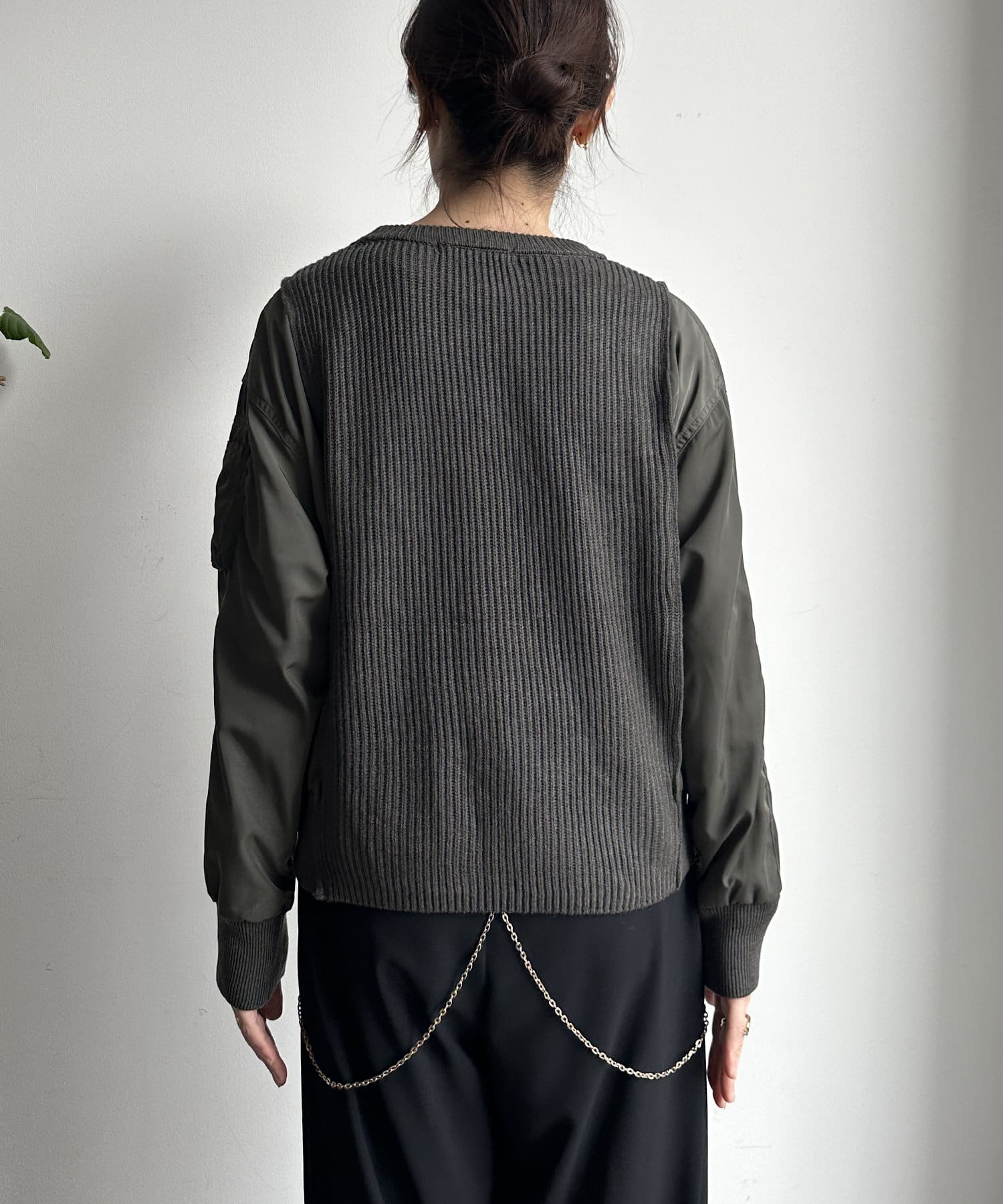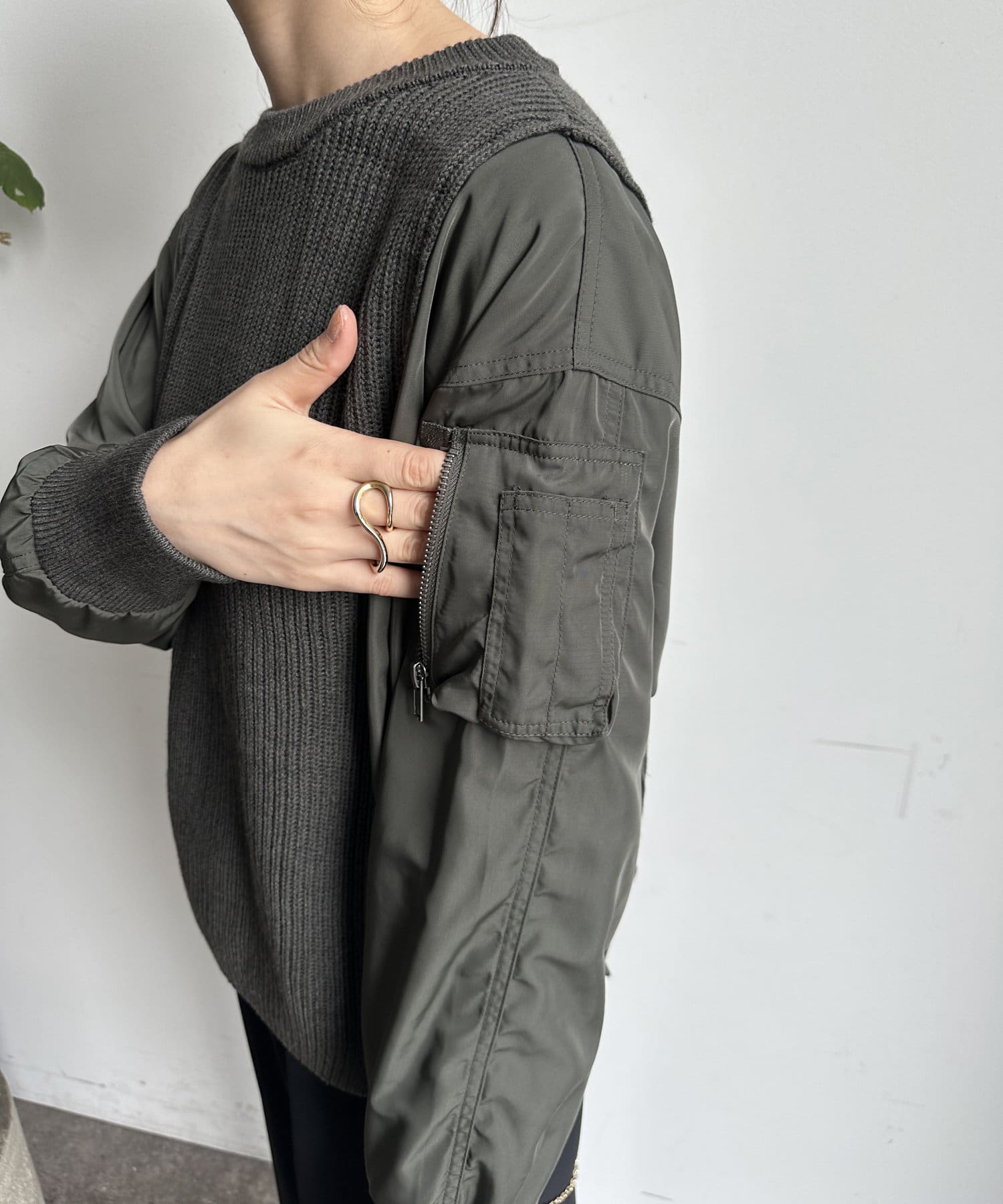 MA1ライクなプルオーバーで左腕にジッパーがついているデザインも